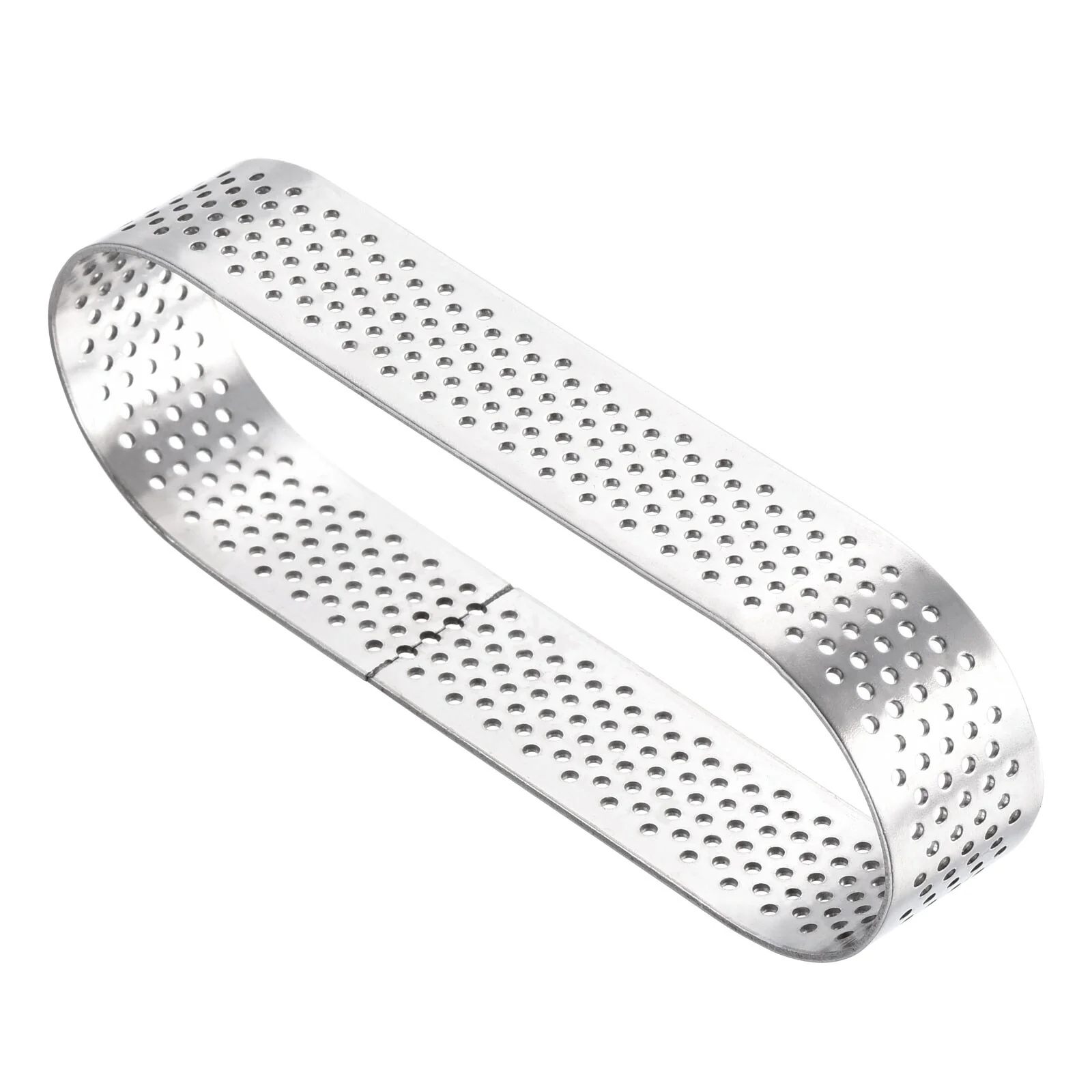 The oval cake ring has a venting hole design and the venting holes are evenly distributed and ventilated without leaking.