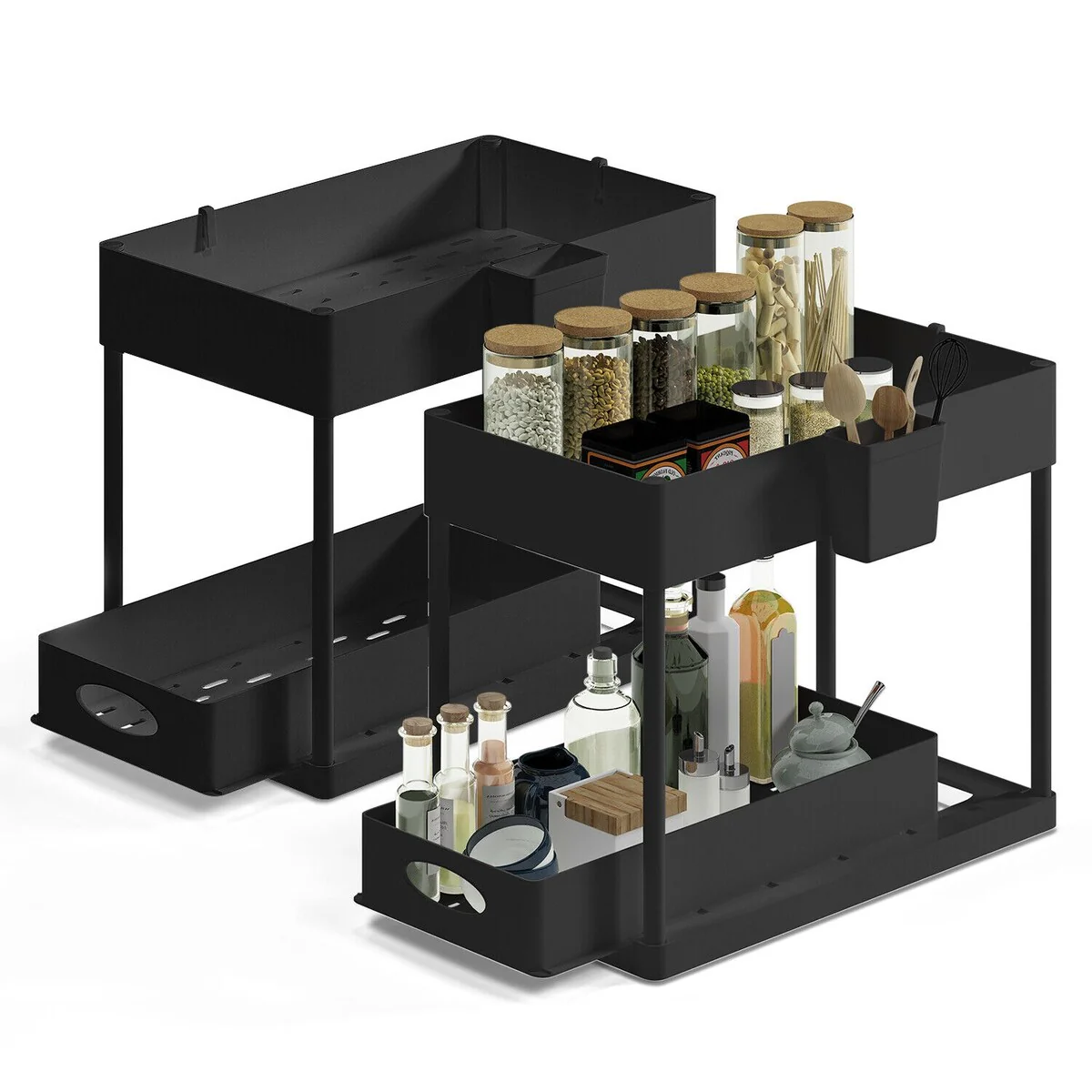 The Under Sink Organizer with 2 Tier Sliding Drawers is your solution to a clutter-free and well-organized under-sink area. This space-saving marvel features two sliding drawers that effortlessly pull out, providing easy access to cleaning supplies, toiletries, or kitchen essentials. Its versatile design accommodates various cabinet sizes and shapes, making it a versatile addition to any room. The durable construction ensures stability, while the tiered layout maximizes storage space, helping you make the most of your under-sink area. Say goodbye to the mess and frustration and hello to efficient and accessible storage with this handy organizer. Use this under-sink rack as a cleaning supplies organizer, under-counter organizer, bathroom countertop organizer, or bathroom shelf organizer.