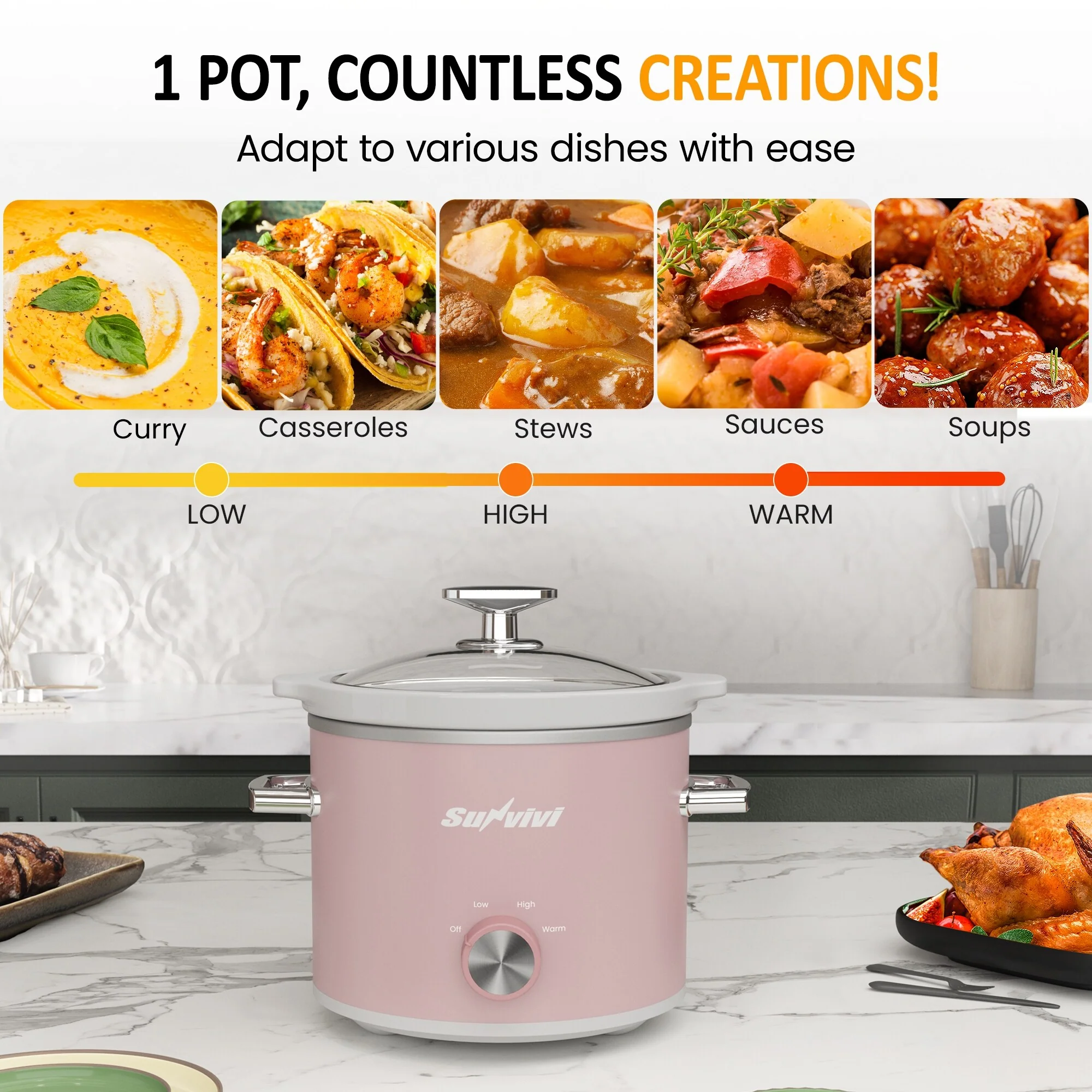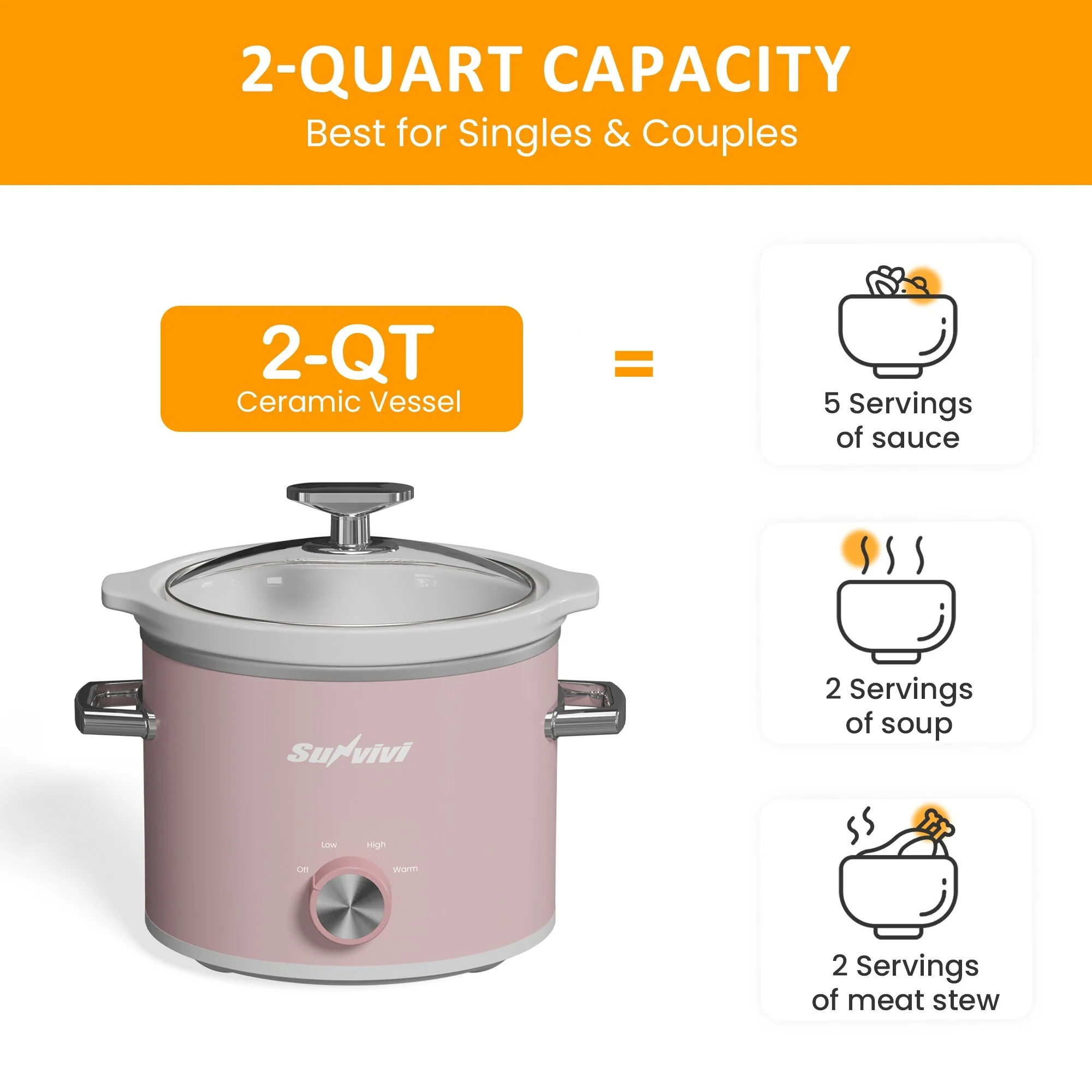 Serving 2 to 4 people: This 2QT slow cooker is designed for smaller households, perfect for cozy meals.