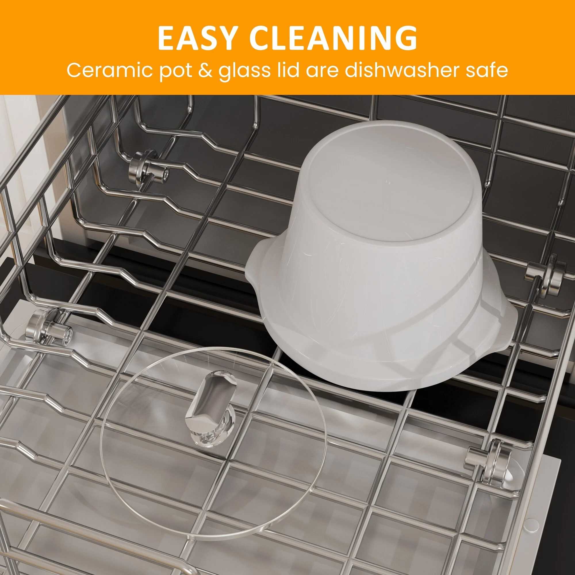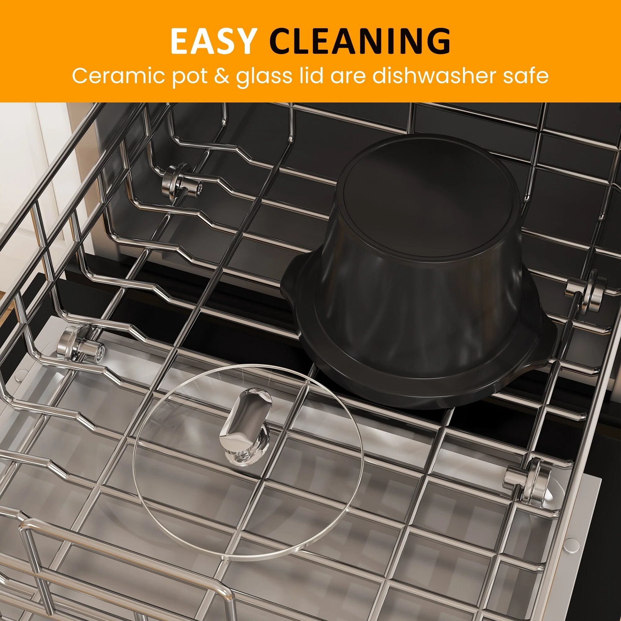Easy Cleanup: The removable ceramic pot and dishwasher-safe glass lid make cleaning a breeze, so you can enjoy your meal without the hassle.