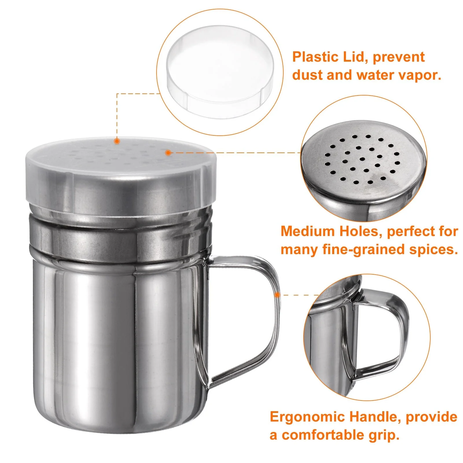 - Suitable for restaurants, home kitchens, barbecues and many other indoor or outdoor occasions for dispensing salt, sugar, powdered sugar, cinnamon and other fine-grained spices.