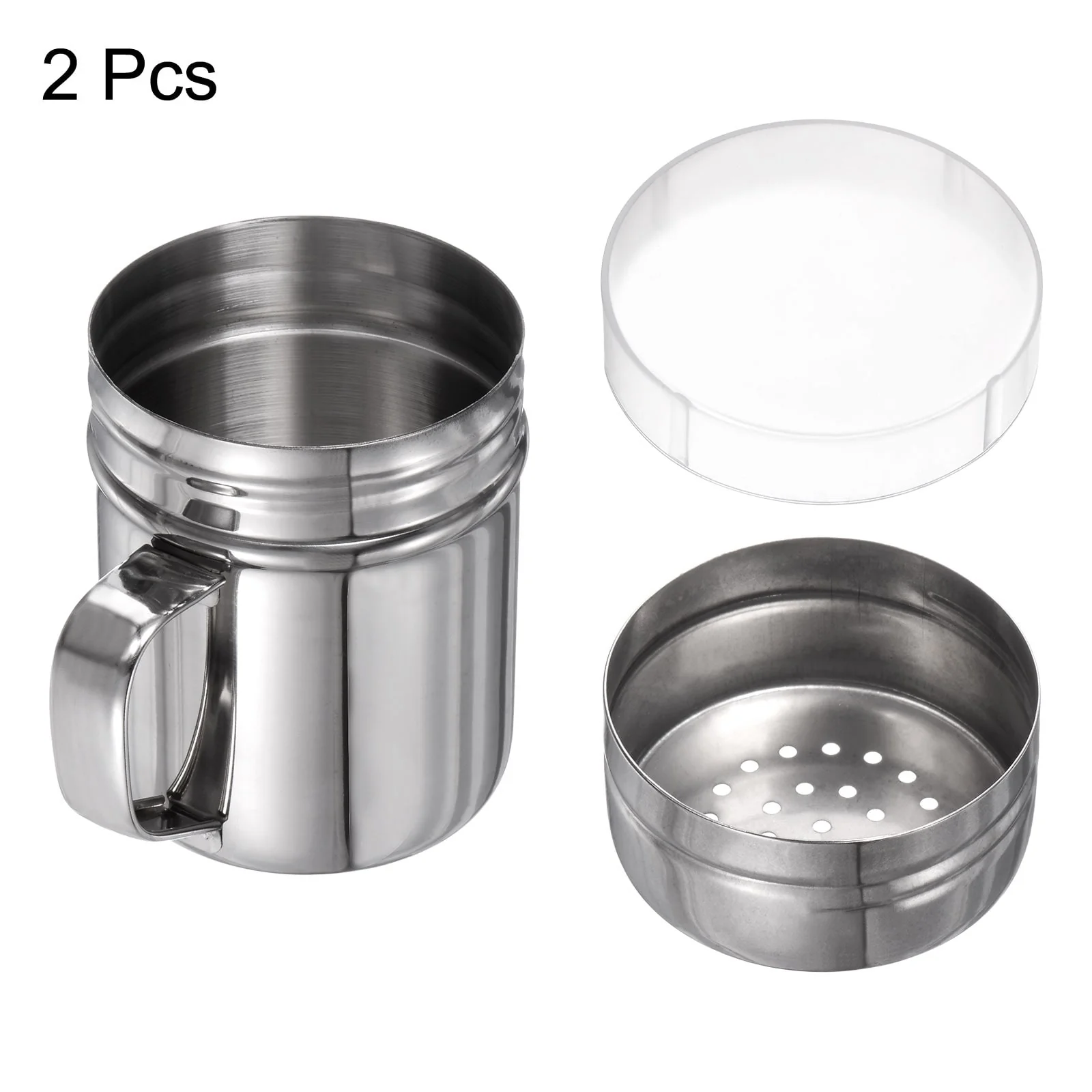 2x Salt Dredge Shakers Stainless Steel Spice Shakers W Handle and Lid – Silver