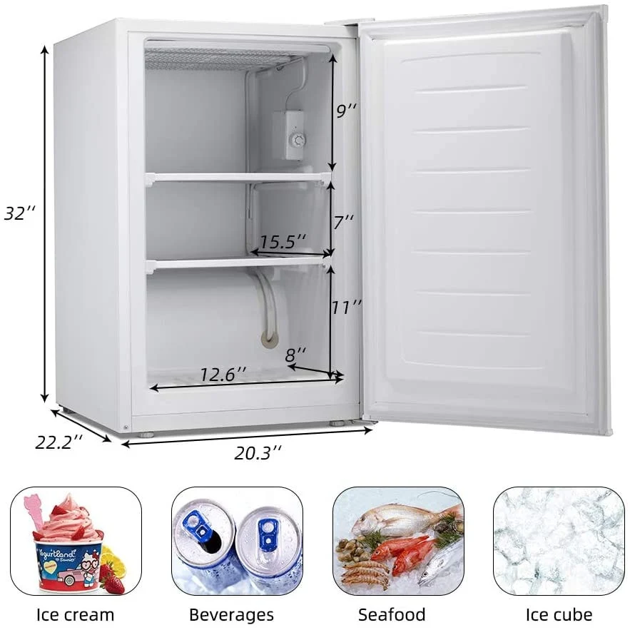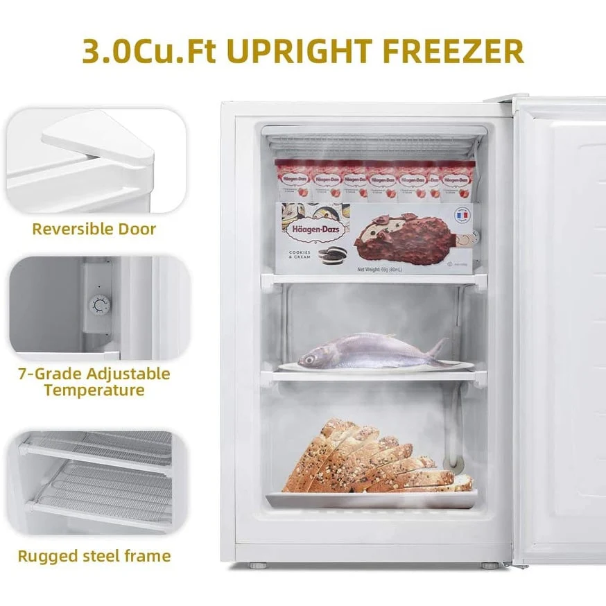 - Kismile 3.0 Cubic Feet Upright Freezer provides you with the extra storage for your frozen food needs, Ideal for your extra freezer storage needs. Simple look, simple design, small body so you can use it anywhere. The compact Freezer is perfect for dorm rooms,office break rooms, RVs, bars. Large capacity, don’t worry about not being able to hold the food ; Strong freezing power, enjoy fresh food anytime and anywhere.