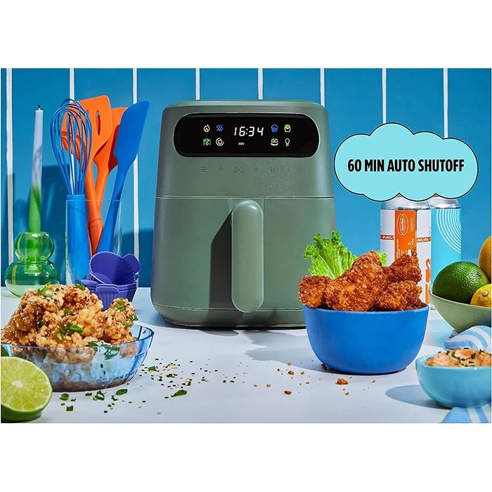 FOR SMALL GATHERINGS: Our stainless steel air fryer is equipped with a 60-min auto shutoff timer and audible tone to make your cooking experience pleasant and laid back. Â Â Â Â Â Â With an 3-quart capacity, the unit can cook up to 2.5 lbs and feed 2-4 people