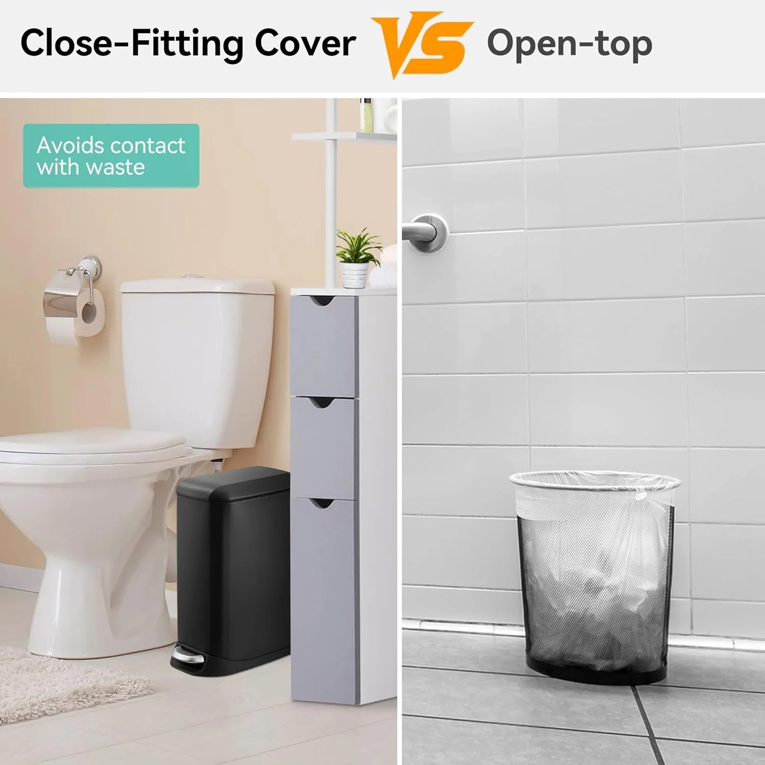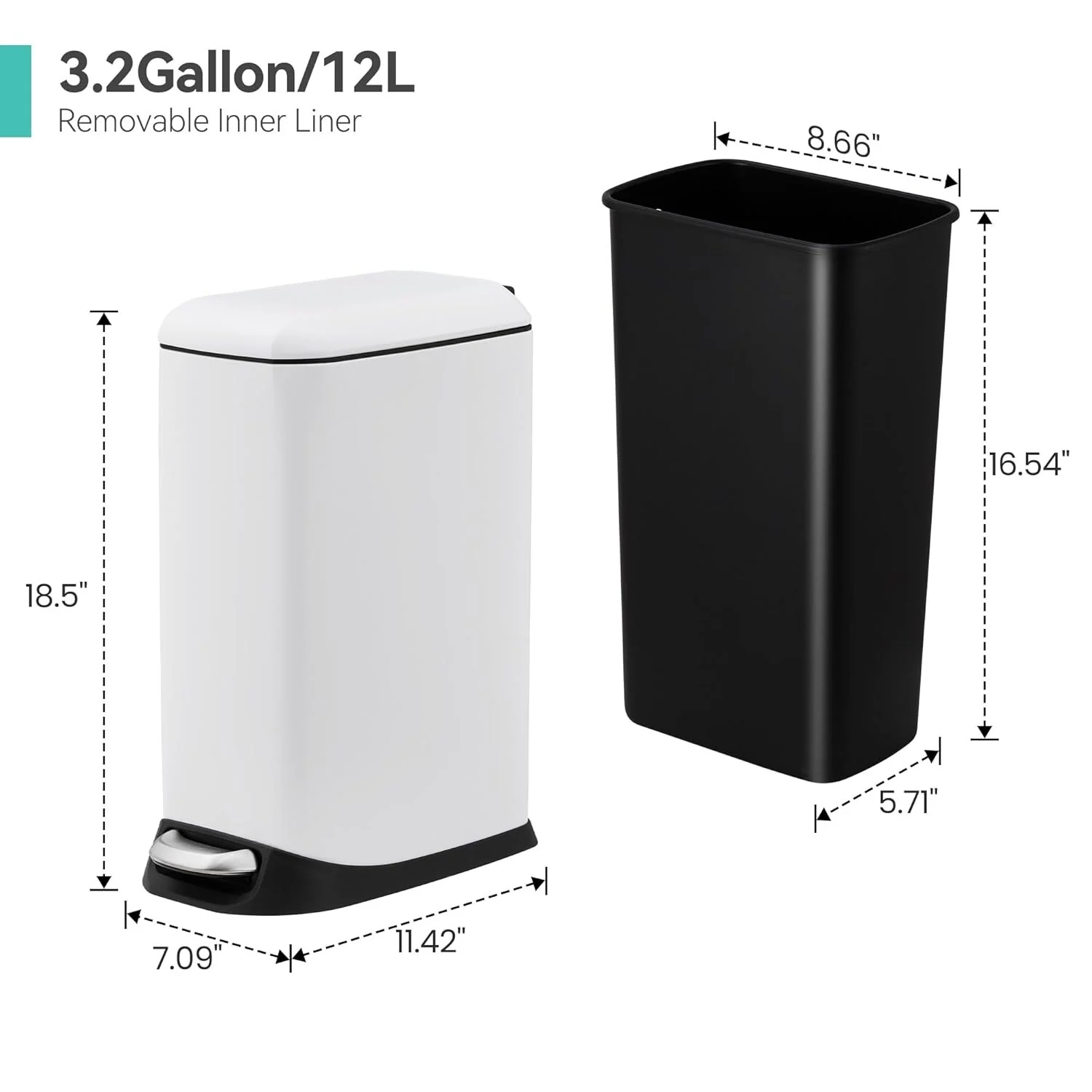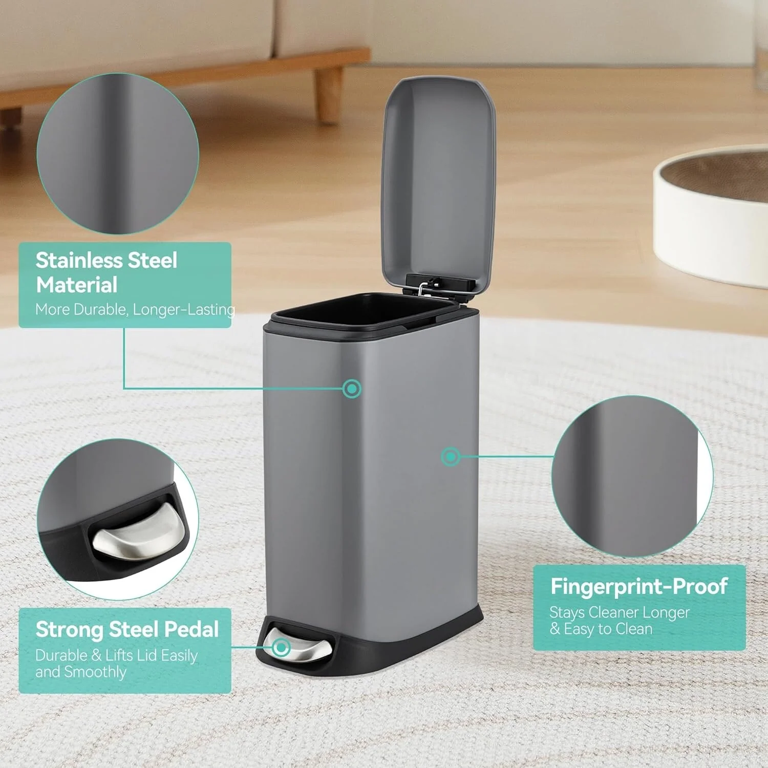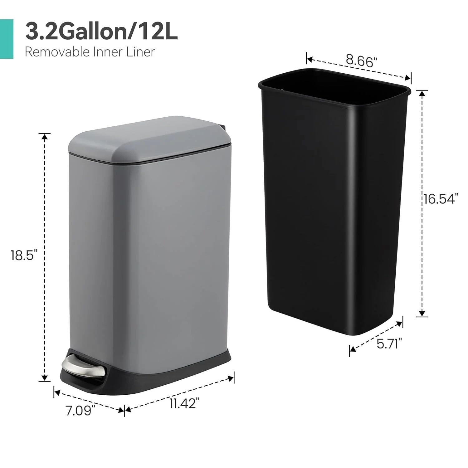 - [Space-Smart Capacity]This 12L/3.2-gallon bin is designed for compact spaces like studio kitchens, bathroom vanities, or office nooks. Its slim rectangular shape fits snugly under sinks, beside toilets, or in narrow gaps between appliances, maximizing unused corners without blocking foot traffic. Holds enough for 1-2 days of household waste—ideal for small families or solo users. The neutral gray finish discreetly blends into backgrounds, avoiding visual clutter.