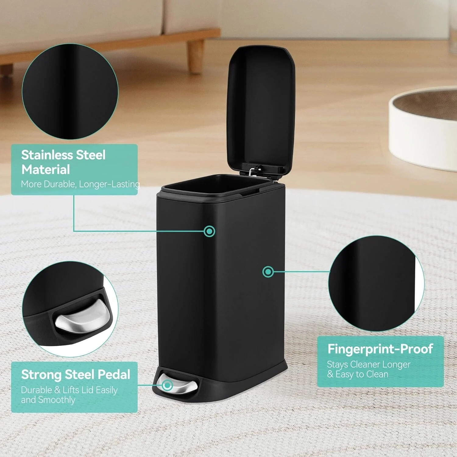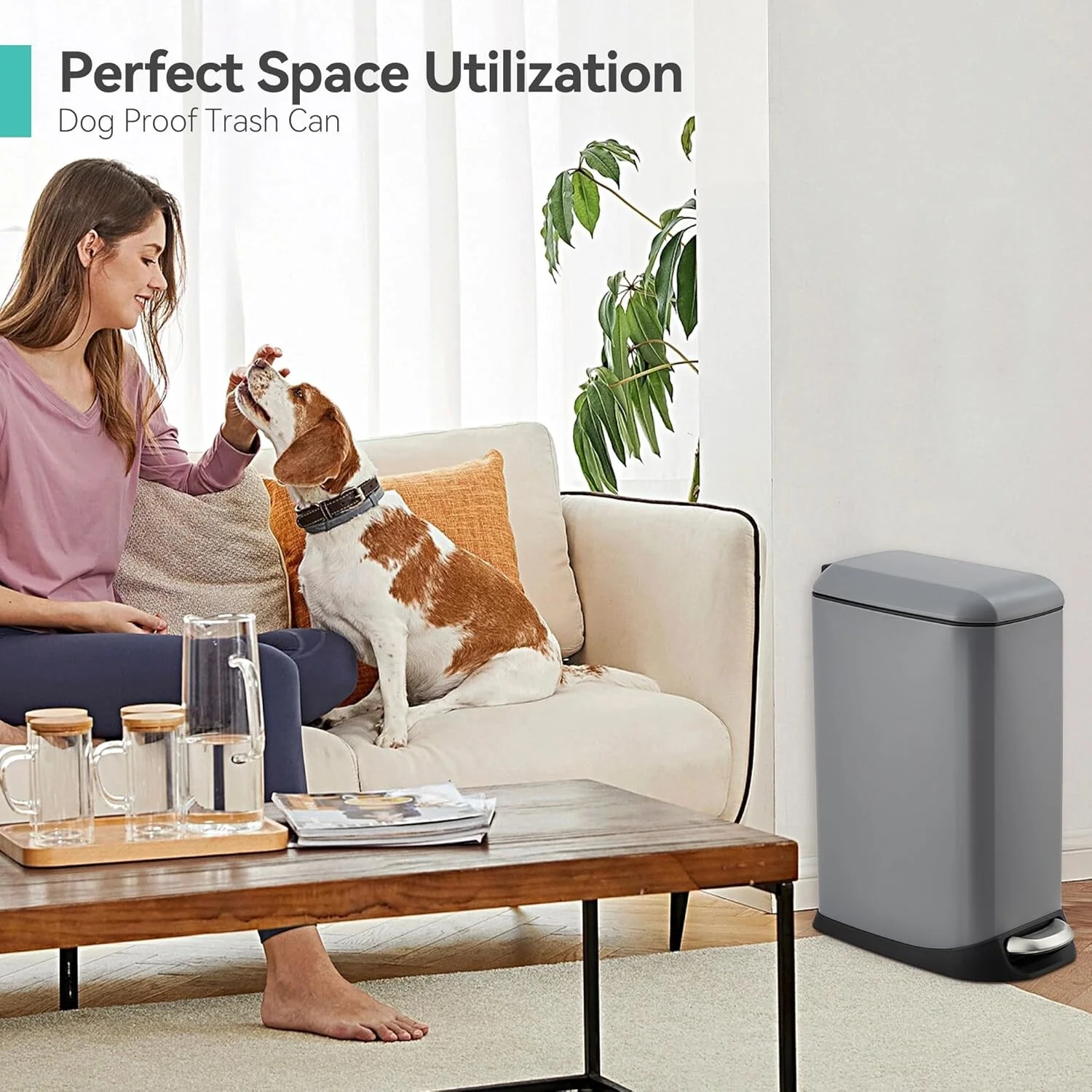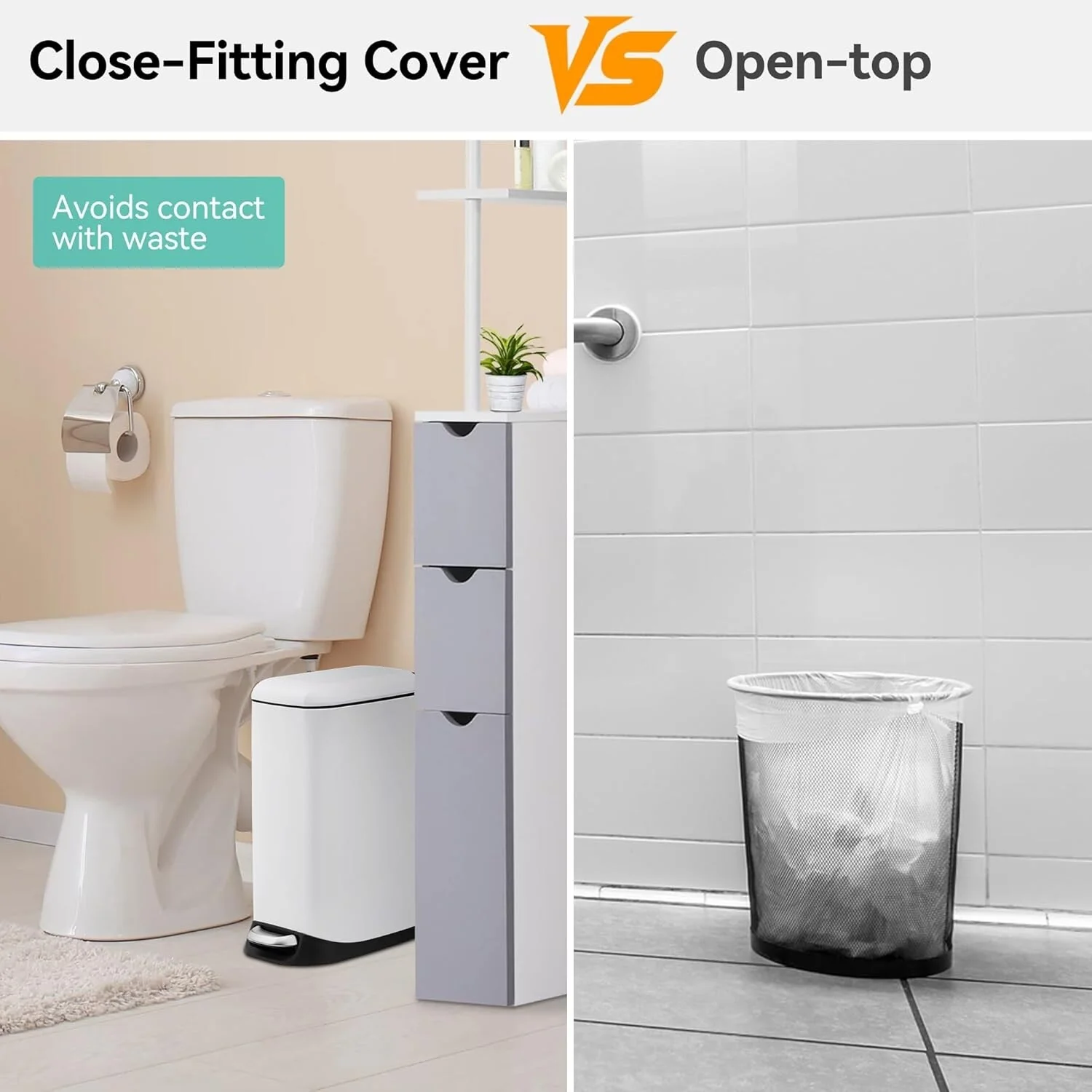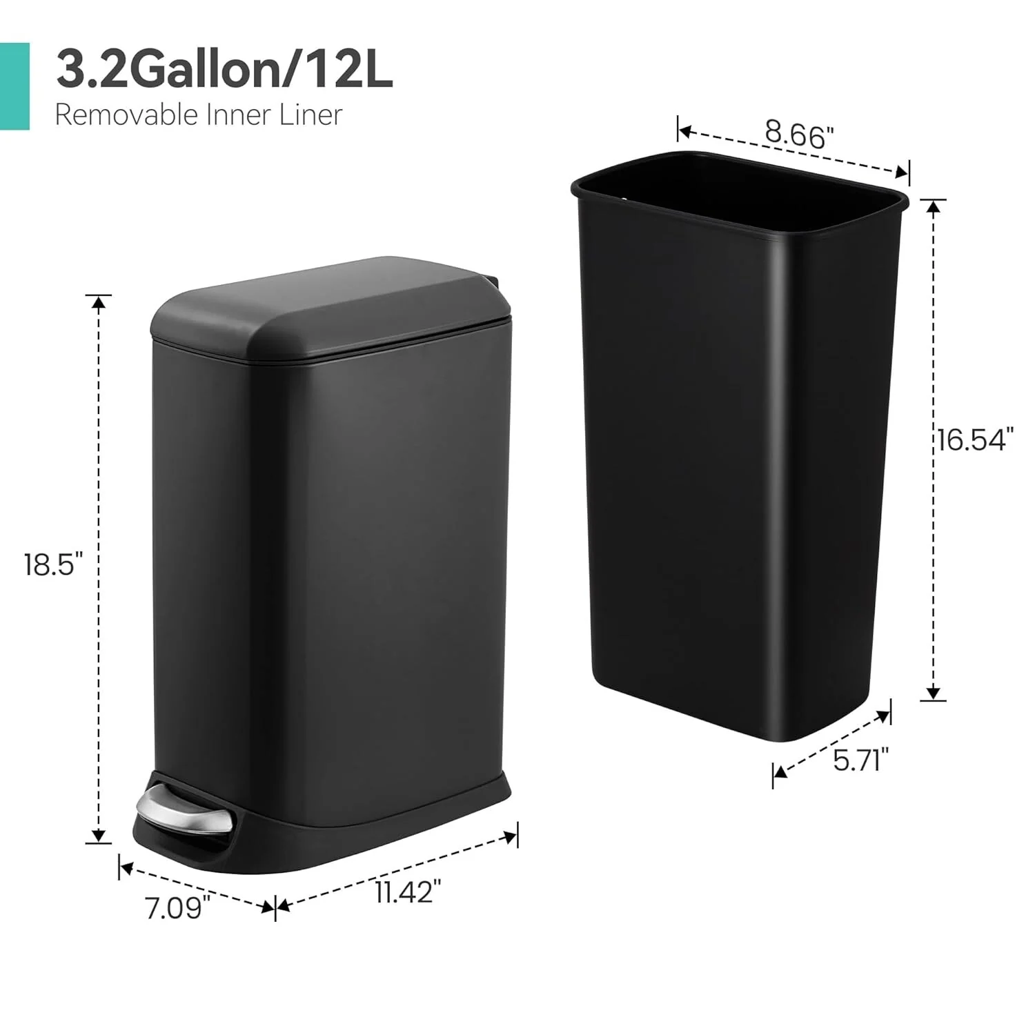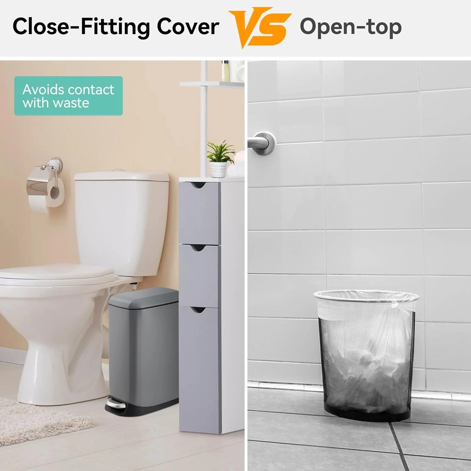 - [Space-Smart Capacity]This 12L/3.2-gallon bin is designed for compact spaces like studio kitchens, bathroom vanities, or office nooks. Its slim rectangular shape fits snugly under sinks, beside toilets, or in narrow gaps between appliances, maximizing unused corners without blocking foot traffic. Holds enough for 1-2 days of household waste—ideal for small families or solo users. The neutral gray finish discreetly blends into backgrounds, avoiding visual clutter.