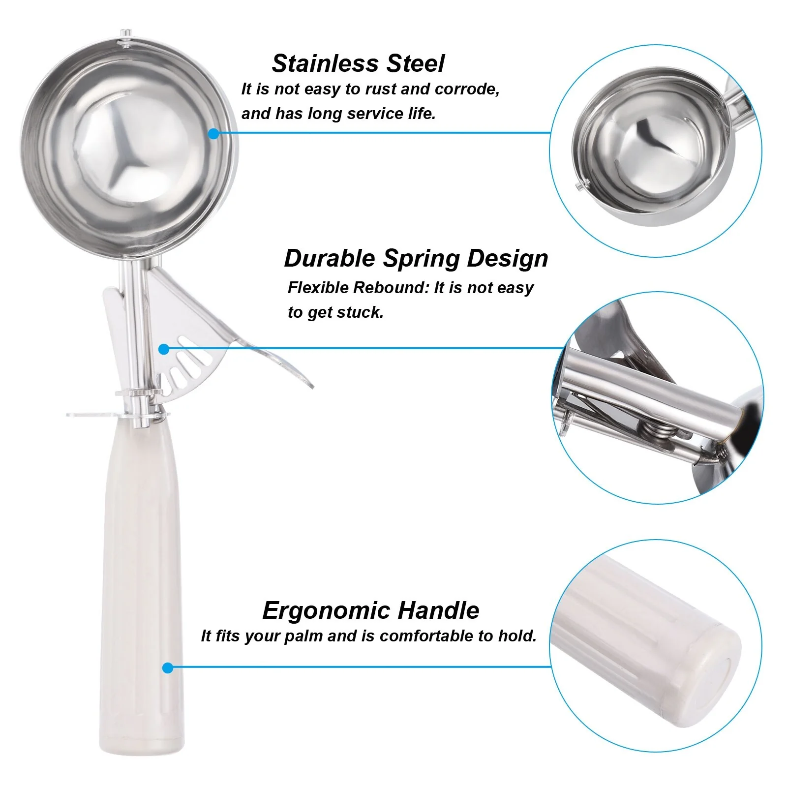 Spring Trigger Design: The ice cream scoop has a unique release trigger that makes it easy to release ice cream from the scoop with just the push of a button.