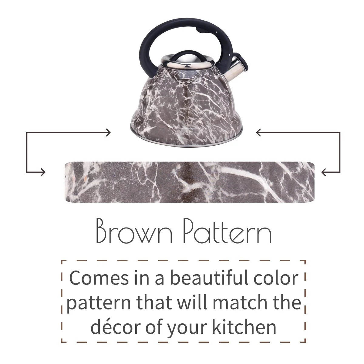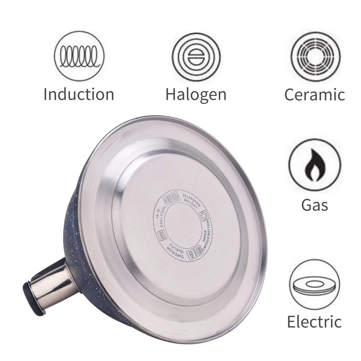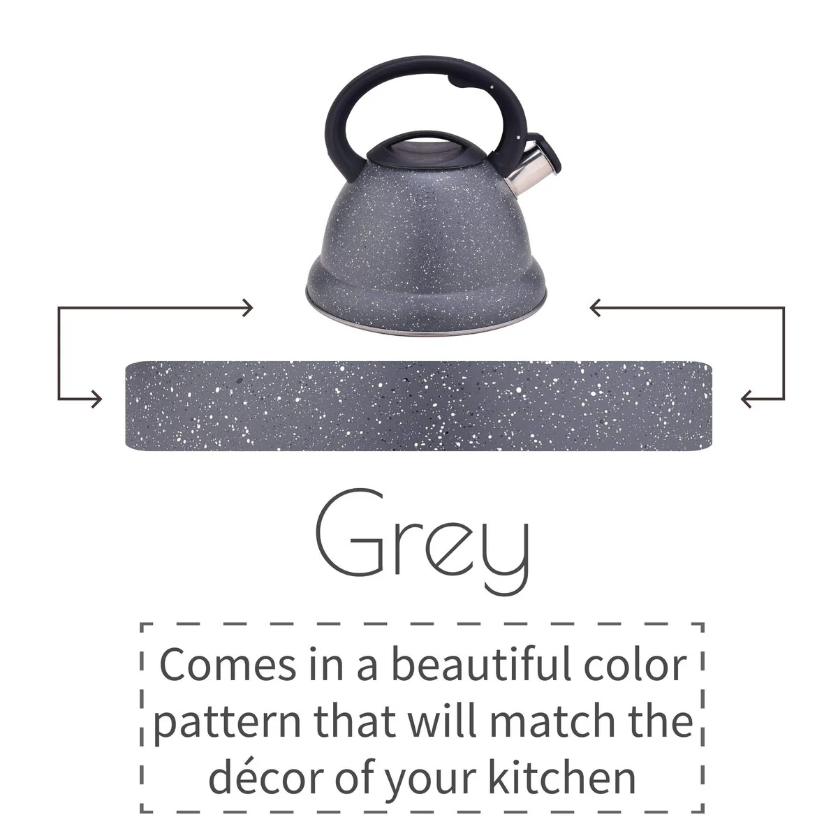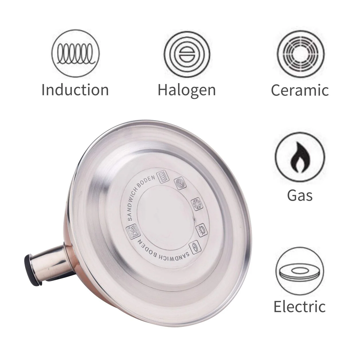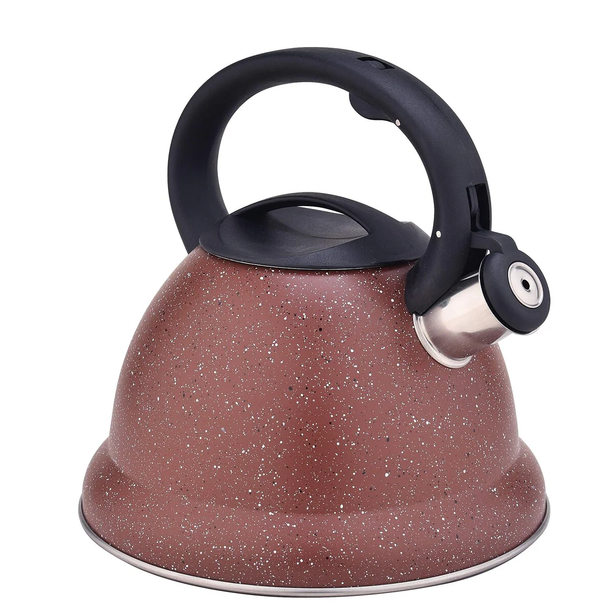 Loudly whistle: When the water is boiling, the whistling kettle will   automatically emit a whistle, so you can hear a unique and loud whistle. When   you are focusing on other issues (such as housework, watching TV, or games), the   whistle on the kettle will attract your attention. Time-saving, simple, and   stress-free.