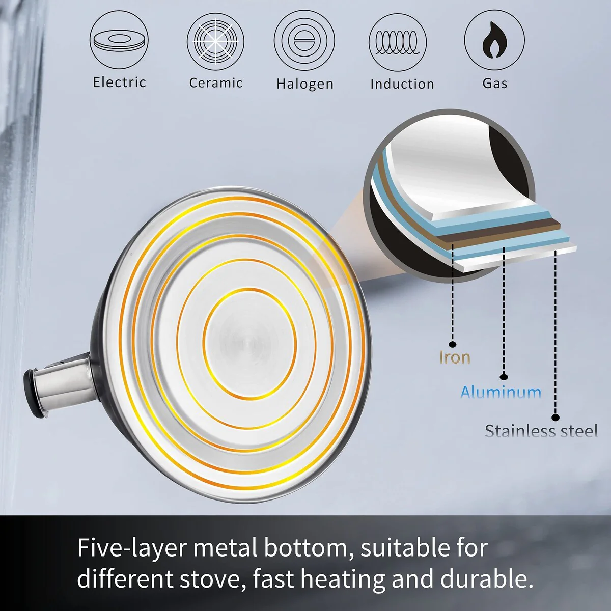 Safety: Your safety is our main consideration. Therefore, the lid and   handle of our stovetop   kettle are made of heat-resistant materials with a comfortable feel, and   there is no need to touch any metal parts during use. A simple touch button   can easily open and close the lid, ensuring that you can stay away from heat   and steam while in use, ensuring your safety.