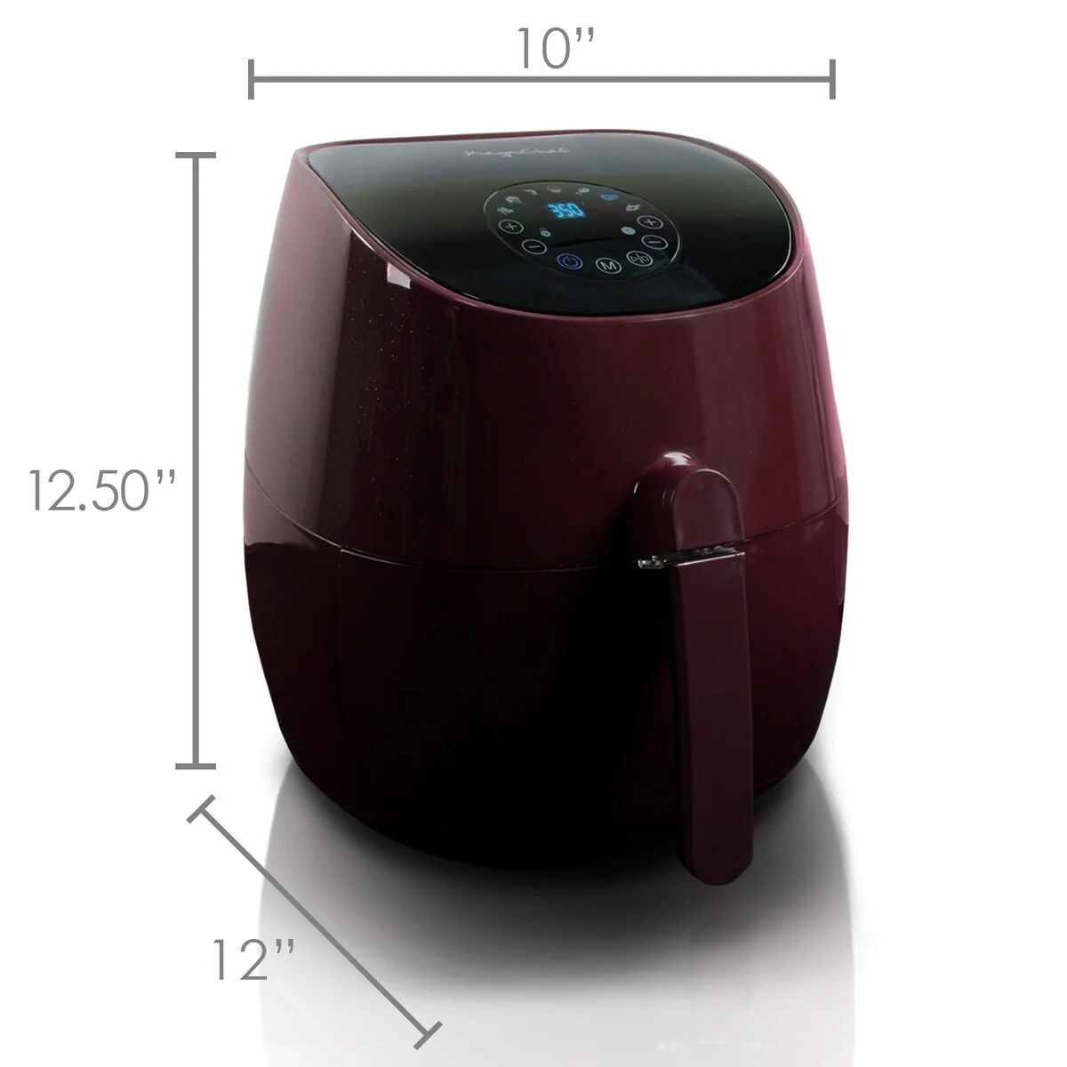 Enjoy tasty and healthy foods in style with this 3.5 Quart AirFryer And Multicooker With 7 Pre-programmed Settings. The clean, rounded edges of this unit make it a stunning addition to your home and kitchen. Weather you plan to entertain or are preparing a warm meal for your closest family and friends, this unit won’t be the item you choose to remove from your counter-tops! The innovative hot-air circulation technology allows an even cooking of your food from all angles, which means you get crispier crunchier foods even with minimal cooking oils or completely oil free! This device will do much much more than fry, and with the growing popularity of these amazing items, you won’t soon run out of recipe ideas. Voltage: 120V-60Hz / Power: 1350 WattsMax Temperature 400FCapacity: 3.5 quart7 Pre-programmed SettingsColor: MaroonItem Measurements: 12" Length, 10" Width, 12.5" Height