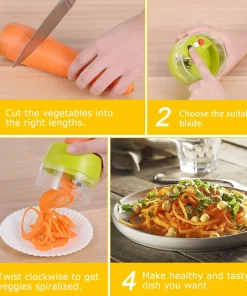 High-quality Materials:The spiral blade is made of environmentally friendly ABS plastic (without BPA) and 304 high-quality and food-grade stainless steel. It can be safely used for making exquisite and delicious meals.