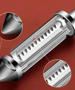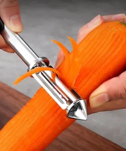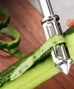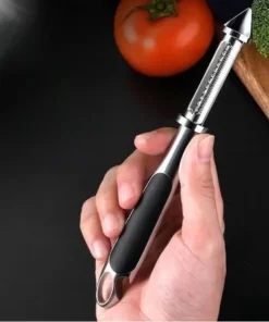 About this itemdown arrowIt is a fashionable and beautiful peeler, which integrates peeling, shredding, and Dig a hole Good tools for life.Peeling is more efficient, which helps eliminate the hassle of peeling vegetables and saves a lot of time for meal preparation.Holds firmly even if your hands are wet or oily.Made of the highest quality material, it will not rust and will last for years to come.Comes with a hook for easy storage with other kitchen utensils.