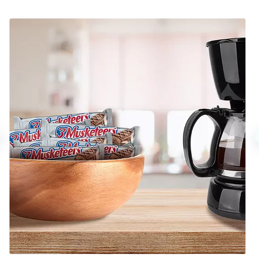 This bulk chocolate candy box includes 36 individually wrapped Full Size 3 MUSKETEERS chocolate candy bars. For a satisfyingly uplifting whipped up, fluffy chocolate treat, look no further than 3 MUSKETEERS candy bars. Each individually wrapped chocolate bar has a light, fluffy, whipped chocolate nougat center covered in rich milk chocolate. This box of bulk chocolate candy bars is a must for your pantry list. Individually wrapped bulk Full Size candy bars are ideal for keeping the pantry stocked for movie night with the family and small celebrations with friends. These whipped chocolate-filled candy bars make great to-go treats, pack them in lunches or take them along on family road trips to enjoy fluffy chocolate candy on the road. #ThrowShine and spread positivity when you share a bar with one of 24 different uplifting messages. These 3 MUSKETEERS bulk Full Size candy bars are a tasty way to share your love of chocolate candy with friends and family. Buying candy bars in bulk ensures you have plenty of chocolate on hand for filling candy bag party favors or candy gift baskets. Be the best house on the block this Halloween when you hand out Full Size 3 MUSKETEERS candy to Trick-or-Treaters. This 36-count bulk candy package is great for stocking vending machines, concession stands, and even the office pantry. 3 MUSKETEERS candy bars are a delicious chocolate treat you can enjoy anywhere, anytime.