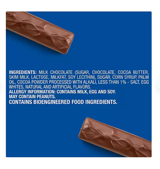 - Individually wrapped full size chocolate candy bars