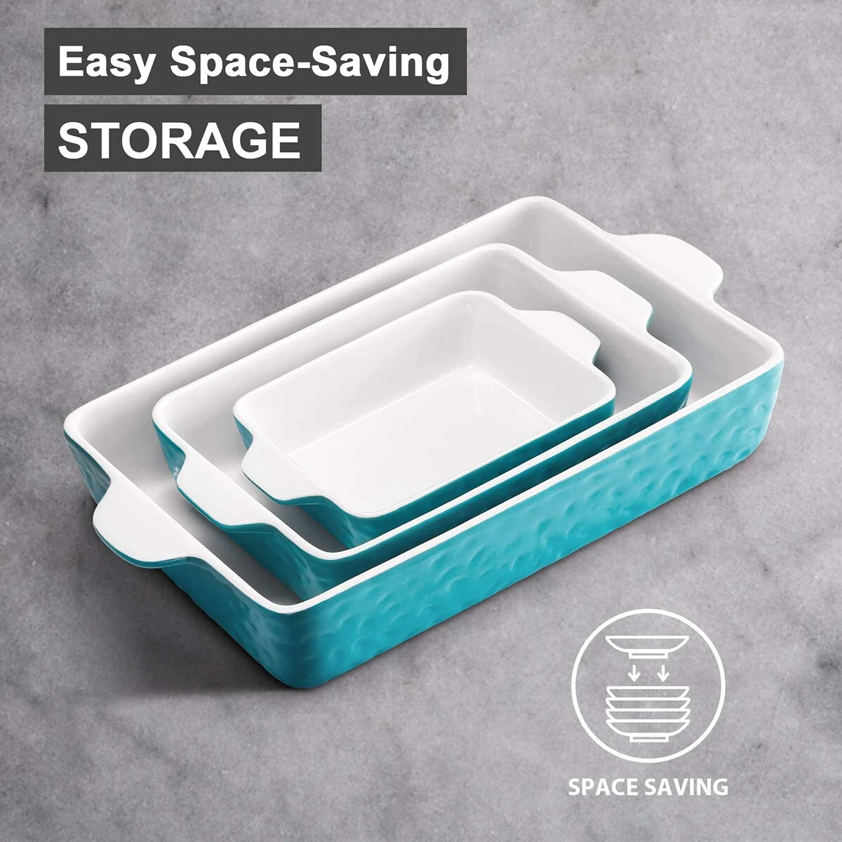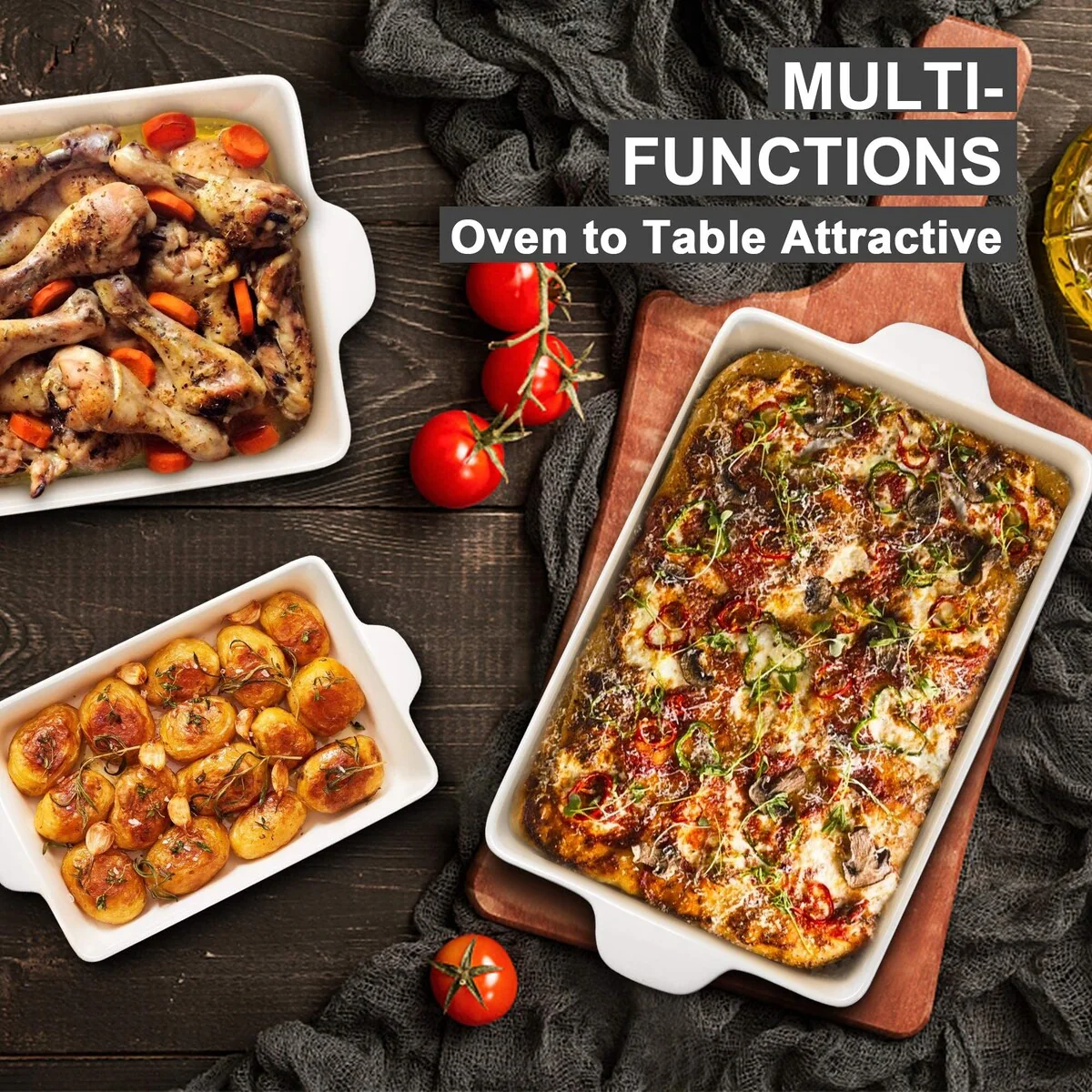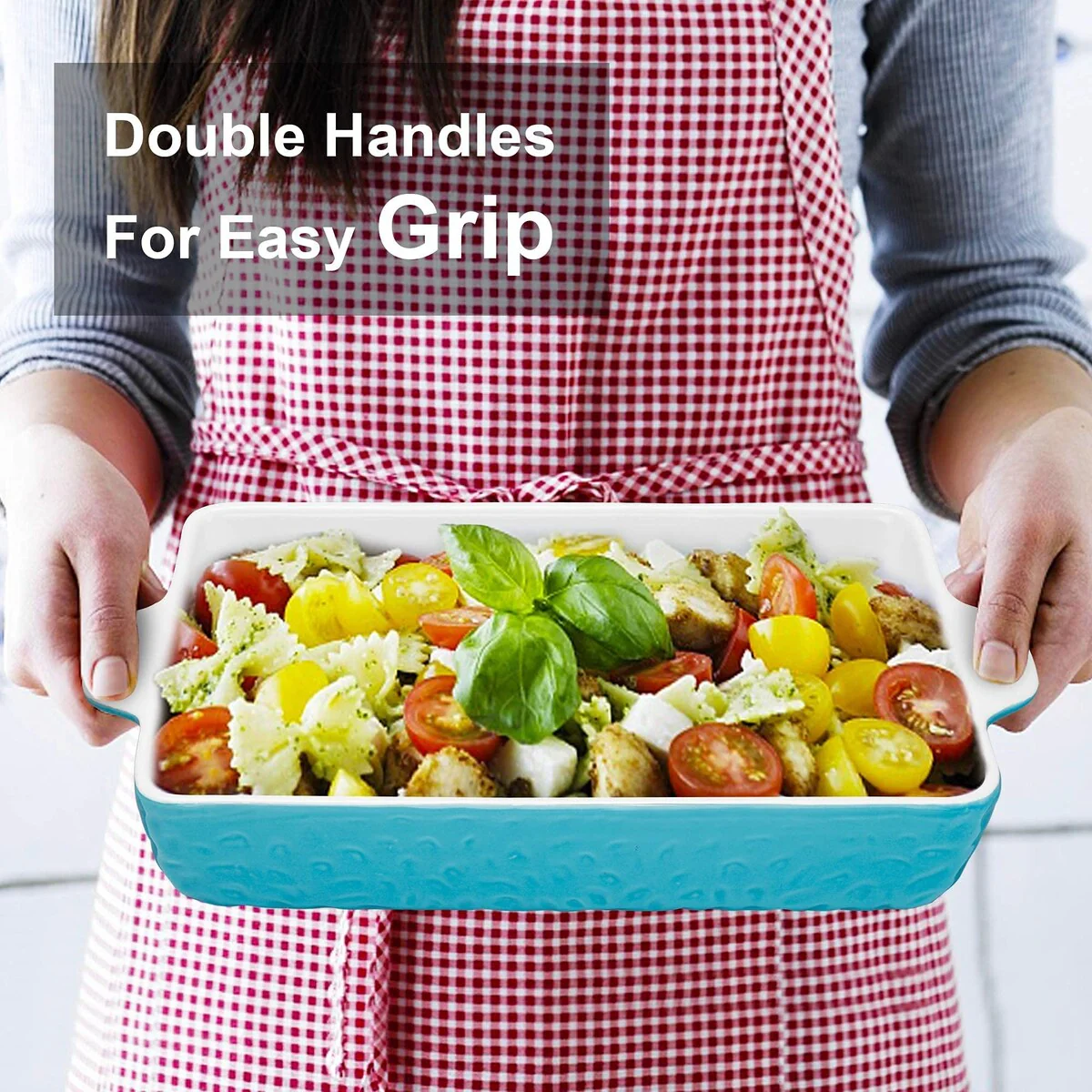 Oven To Table Attractive, Daily Use Or Great Gift Idea – Thick porcelain, special glaze, beautiful color, all of these make this baking dish set attractive from oven to table. Classic design suits any king of table setting or occasion from casual everyday dinners to cater dinner parties and catered events. Get it for your daily baking or table use, or as a gift for a house warming, or for a wedding shower.