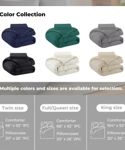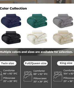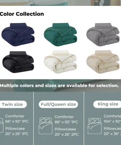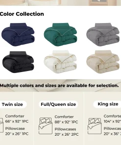 - Full/Queen: 1 comforter – 88" x 92" and 2 pillow shams – 20" x 26"