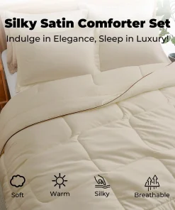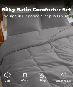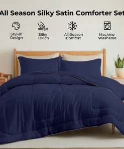 Experience the ultimate luxury and modernity with this special 3 Piece Silky Satin Comforter Set. The silky soft satin fabric features extraordinary texture that is ultra-soft against your skin. This cozy and soft satin comforter set brings an elegant and stylish look to your home decor. The premium polyester fill offers year-round warmth and comfort, making you refreshed when you wake up. Complete with matching pillow sham and charming satin piping, this set is perfect for all-season use.