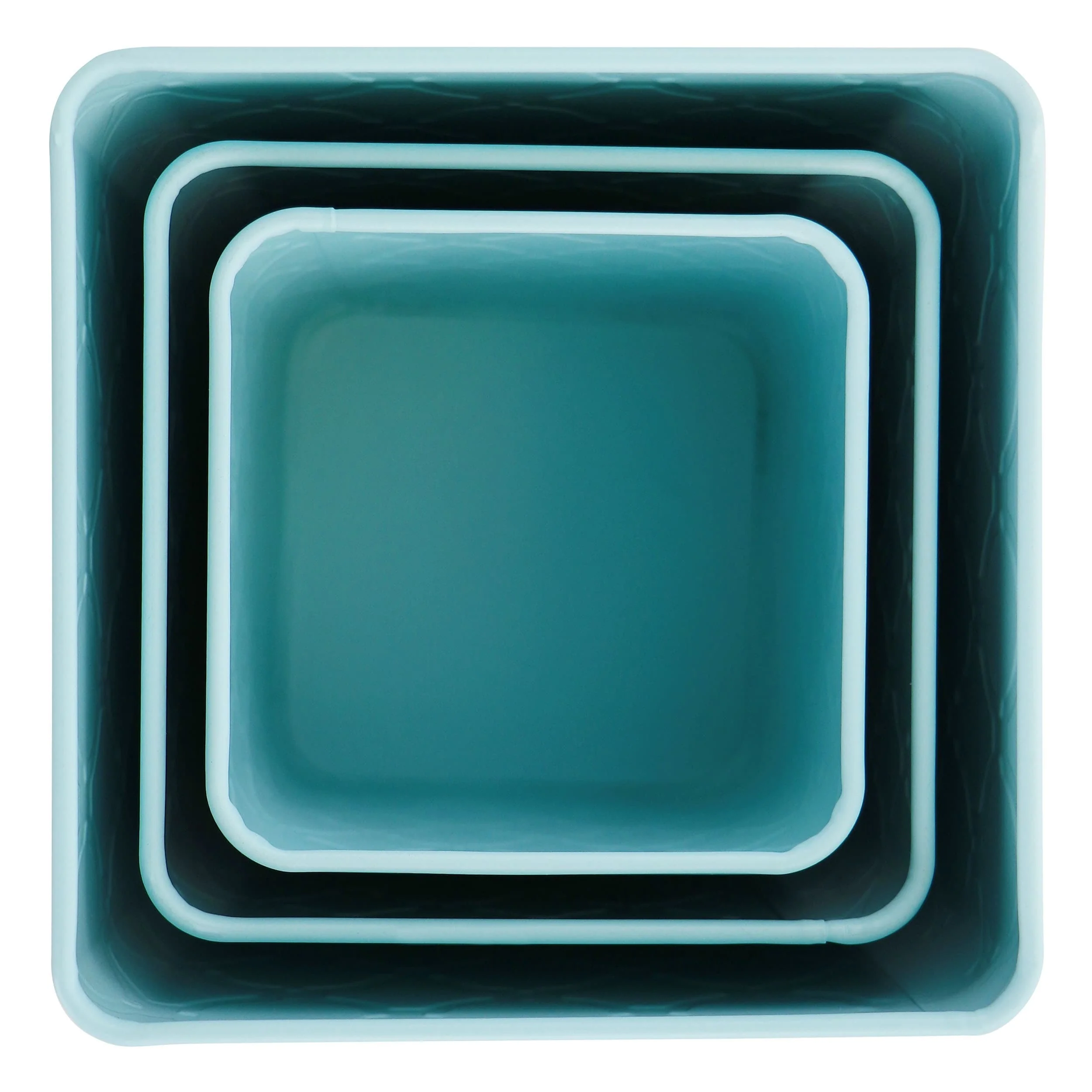 3 Piece Bamboo Lid Square Iron Canister Set in Matte Teal
