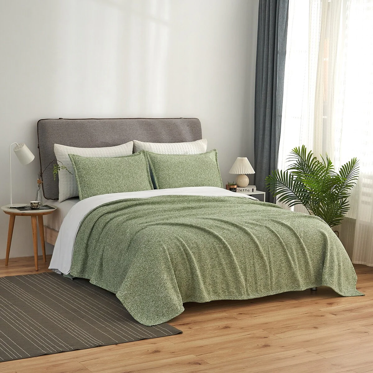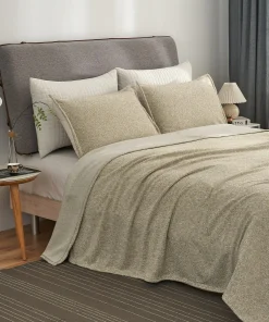 Wrap yourself in the cozy comfort of our 3 Piece Blanket Set with Pillow Sham. Made from premium polyester microfiber, our blankets are designed to provide maximum softness and warmth while offering a simple yet classy appearance, perfect for any decor. Densely knitted to portrait the natural look of flax fabric, the fade-resistant outer layer is complemented by an inner layer uniquely processed to achieve the comfort of wool texture. Our hypoallergenic blanket set is available in three sizes: twin, queen, and king, and comes with one or two matching pillow shams depending on the size.