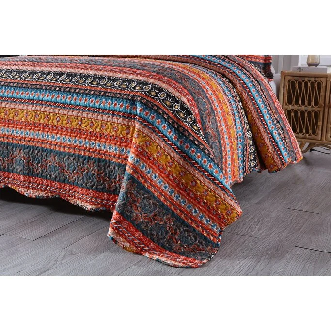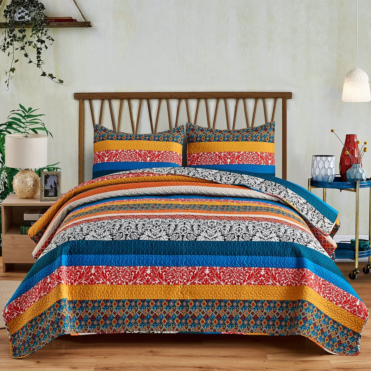 Add a touch of elegance to your bedroom decor with this luxurious Bohemian quilted bedspread set. The exquisite patterns and high-quality material make it a perfect addition to your bedding collection. The set includes a quilt and two pillow shams, providing a complete bedding solution.