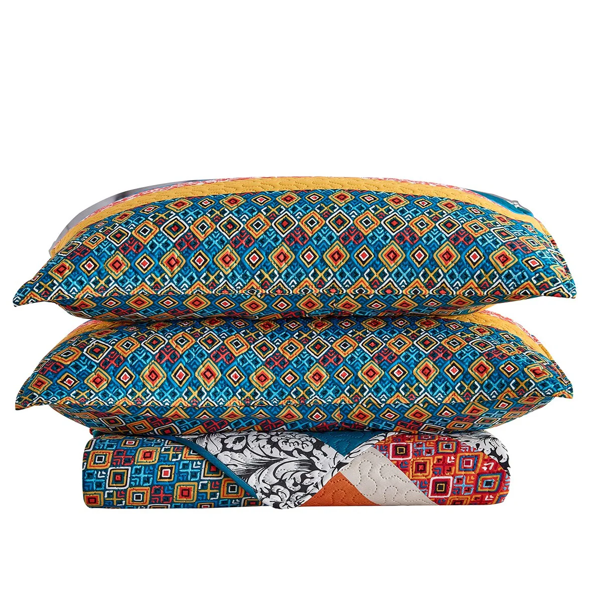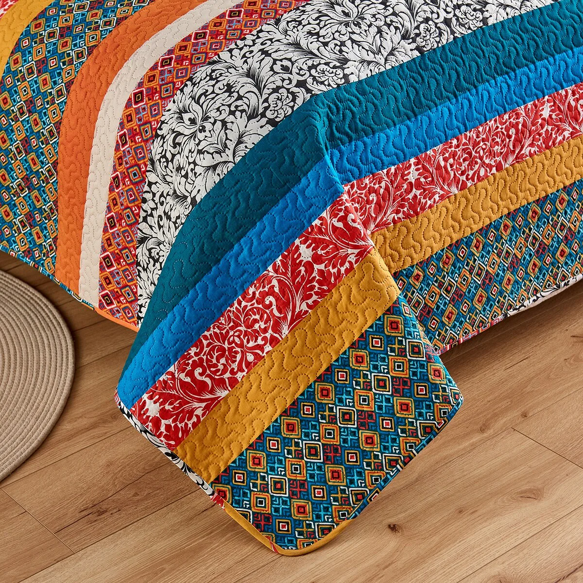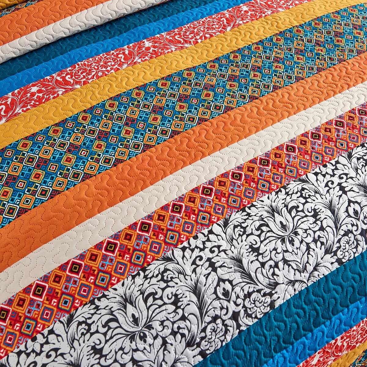 Experience comfort and luxury with our 3 Piece Bohemian Striped Quilt Set. Made from 100% brushed microfiber fabric, this OEKO-TEX certified quilt set contains no harmful chemicals, ensuring quality comfort and wellness. Our soft and lightweight quilt comes with unique ultrasonic technology and a beautiful printed pattern that adds a touch of style to your bedroom or guest room décor. It can be used alone or layered for added warmth and texture during colder months. Available in Queen and King sizes, this versatile quilt set is perfect for your bedroom, guest room, vacation home or anywhere else.
