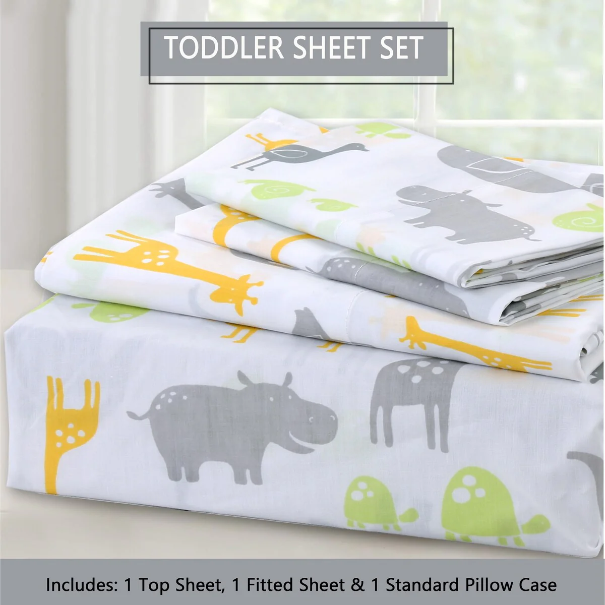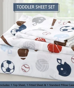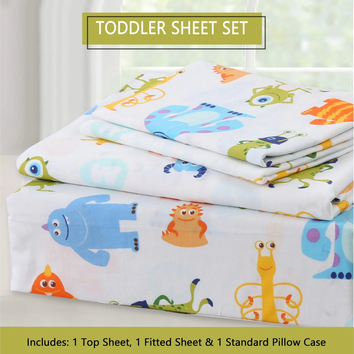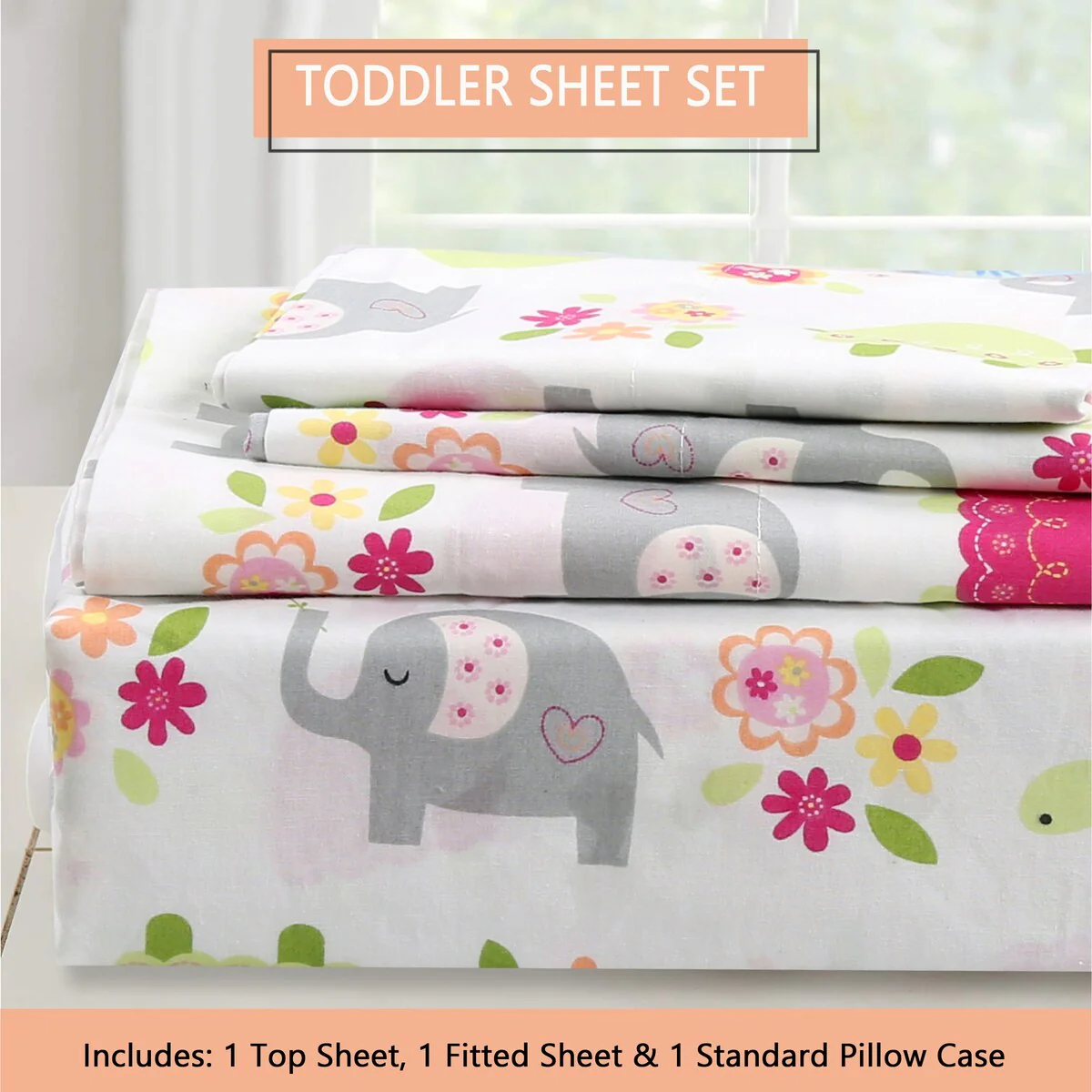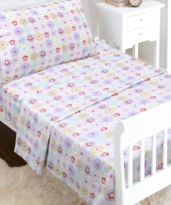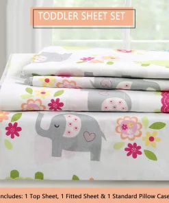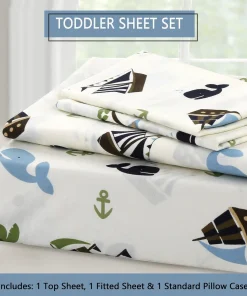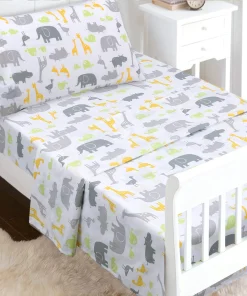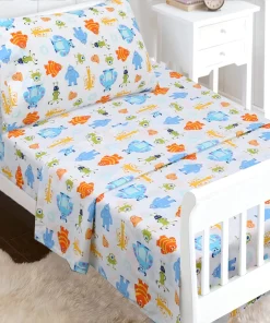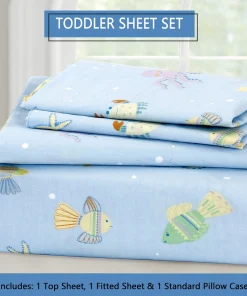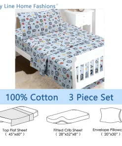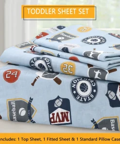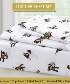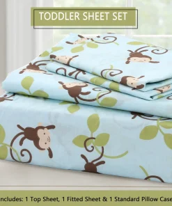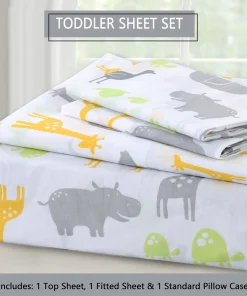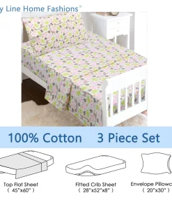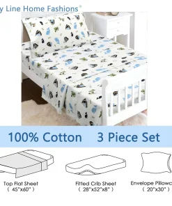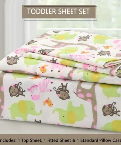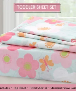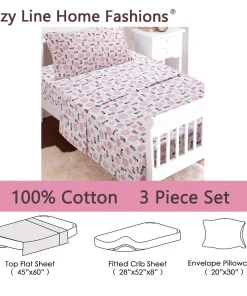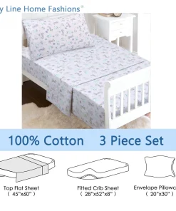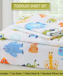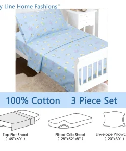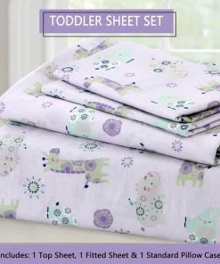 - Toddler sheet set includes 3 Pieces – Flat Sheet, Fitted Sheet, and Pillow Case