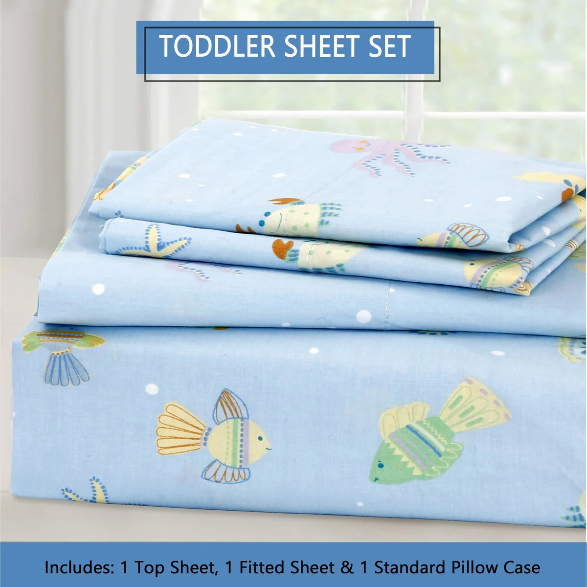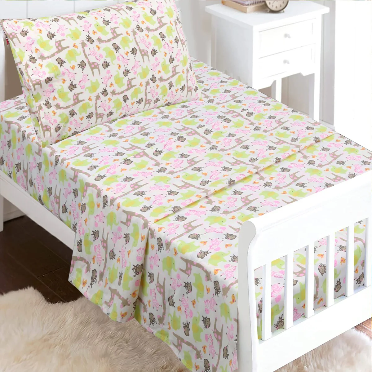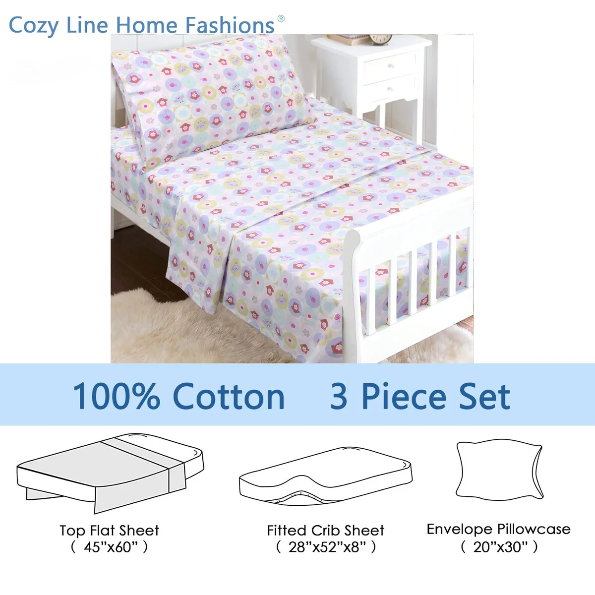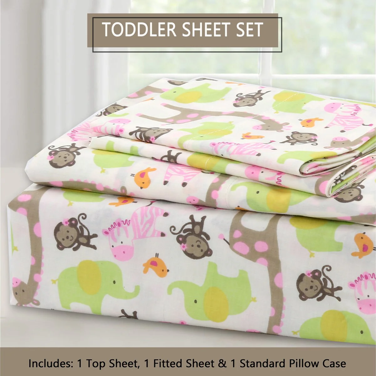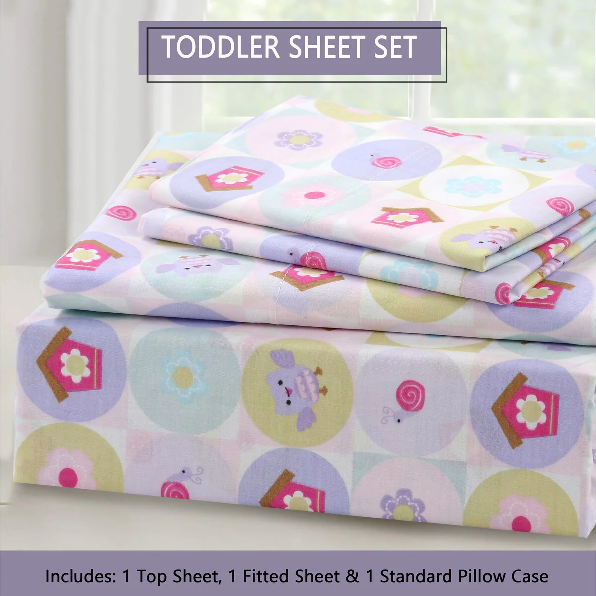 - Toddler sheet set includes 3 Pieces – Flat Sheet, Fitted Sheet, and Pillow Case