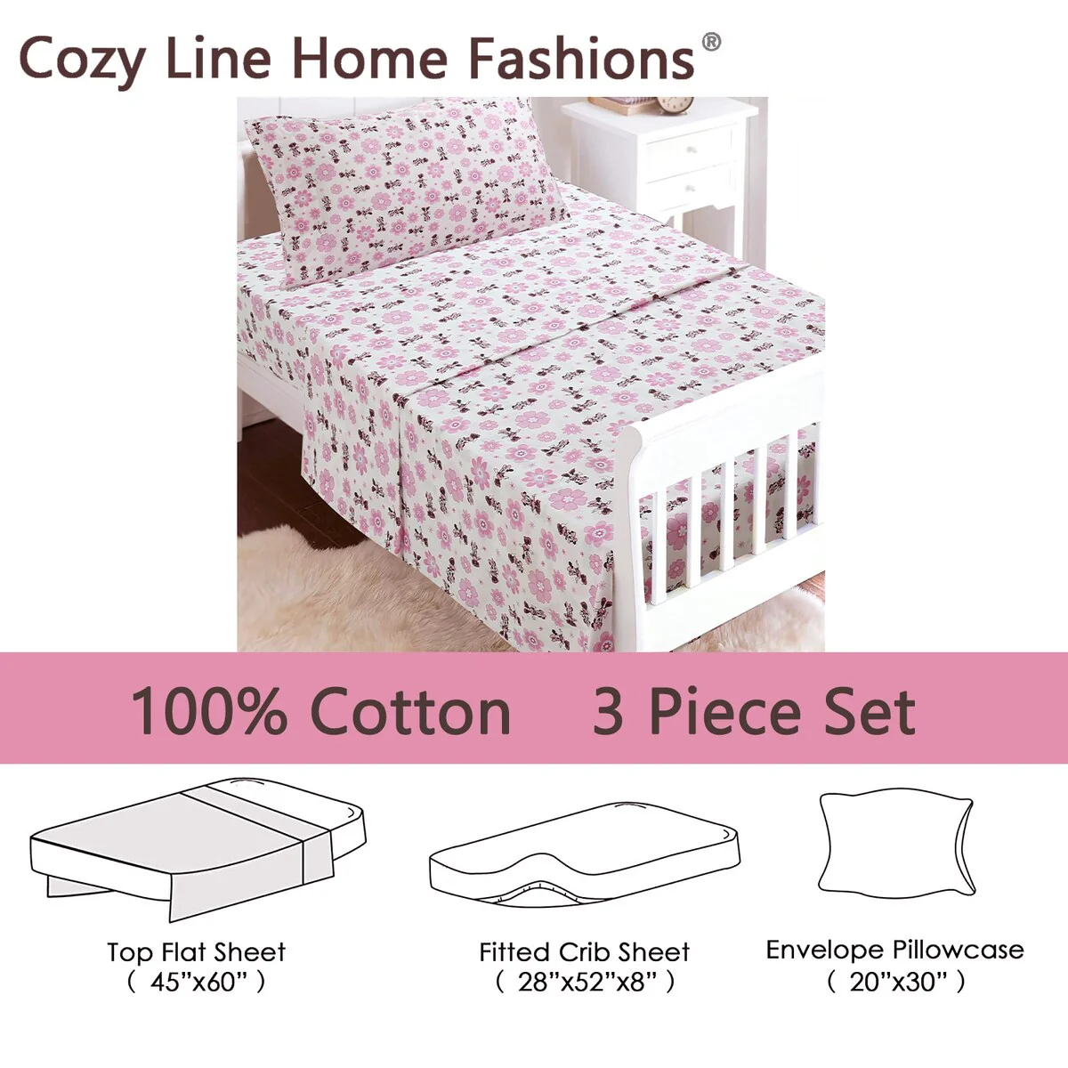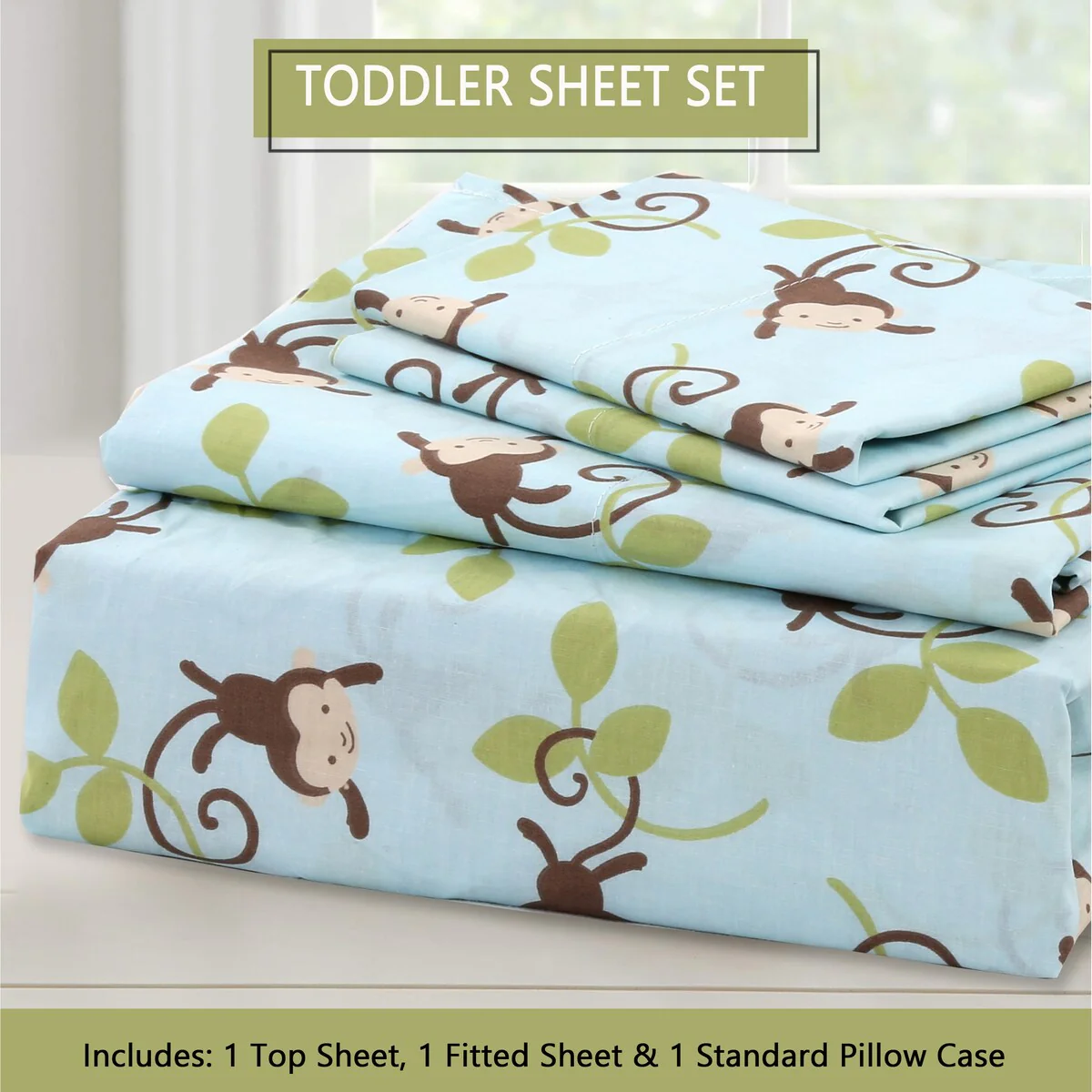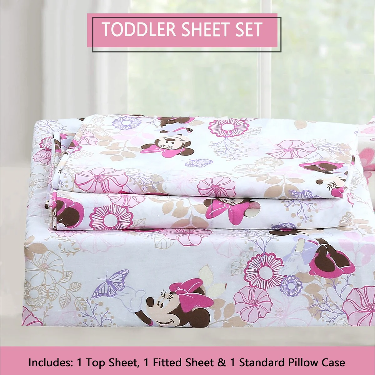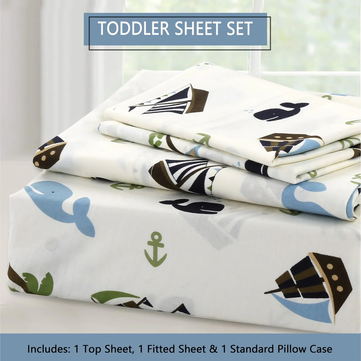 - Toddler sheet set includes 3 Pieces – Flat Sheet, Fitted Sheet, and Pillow Case