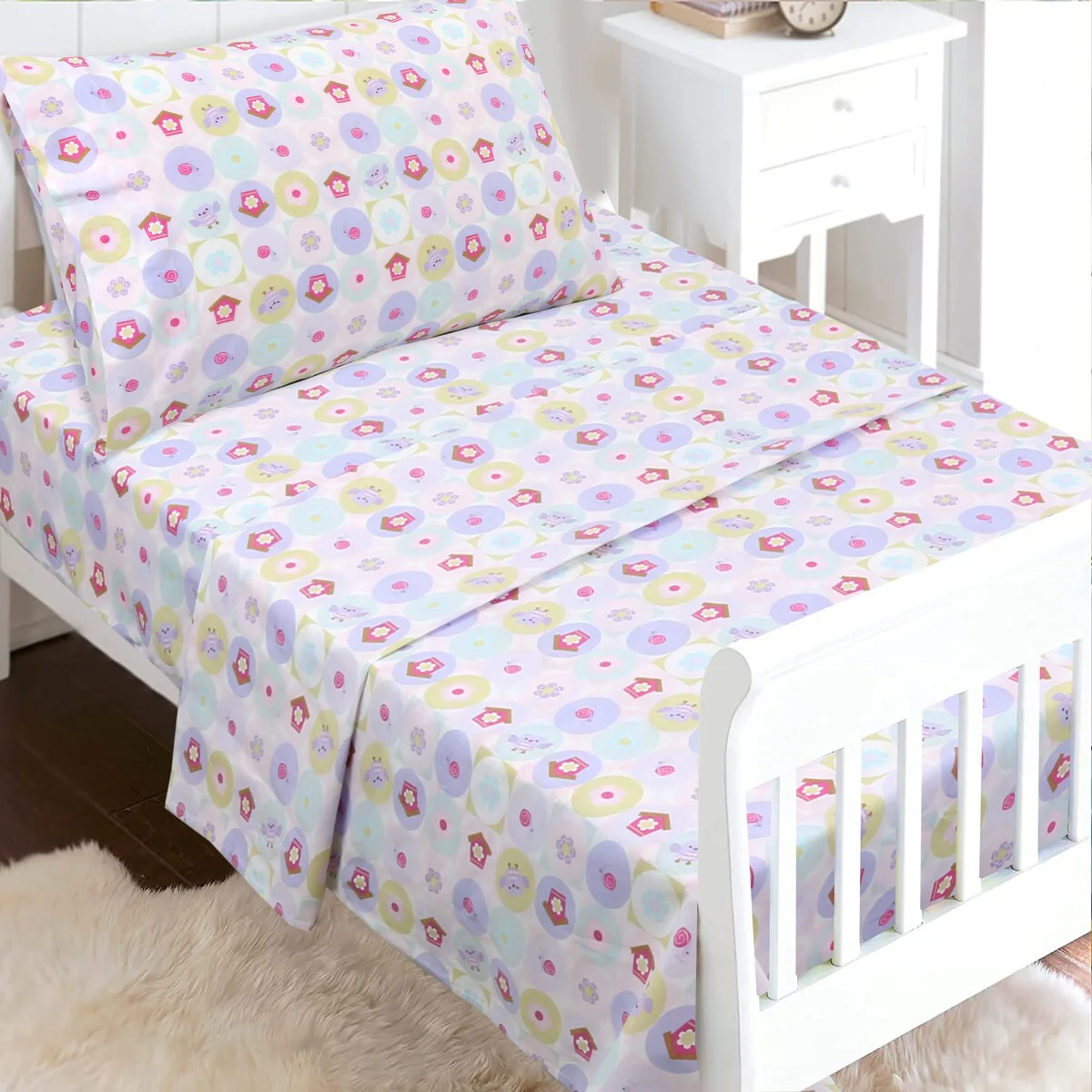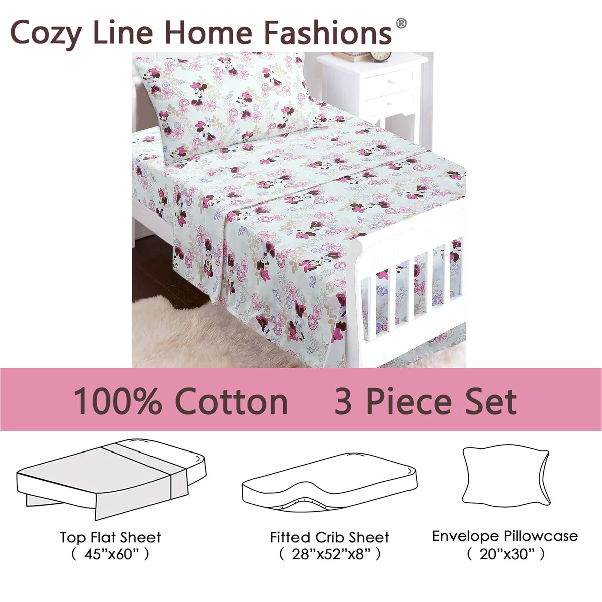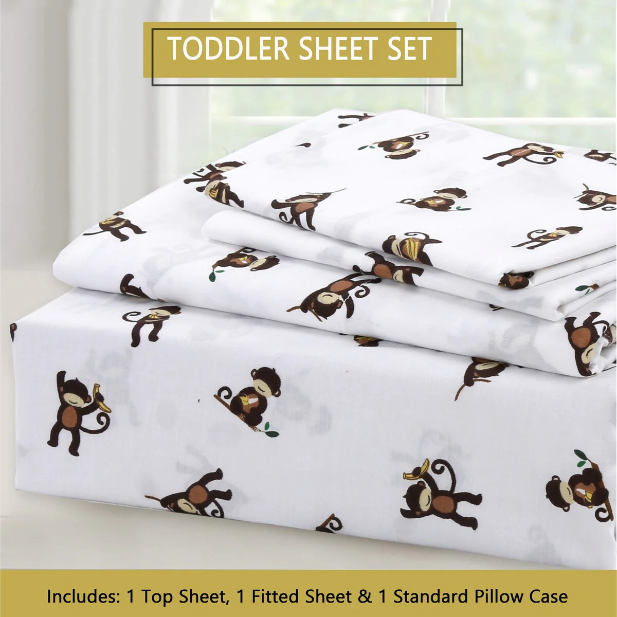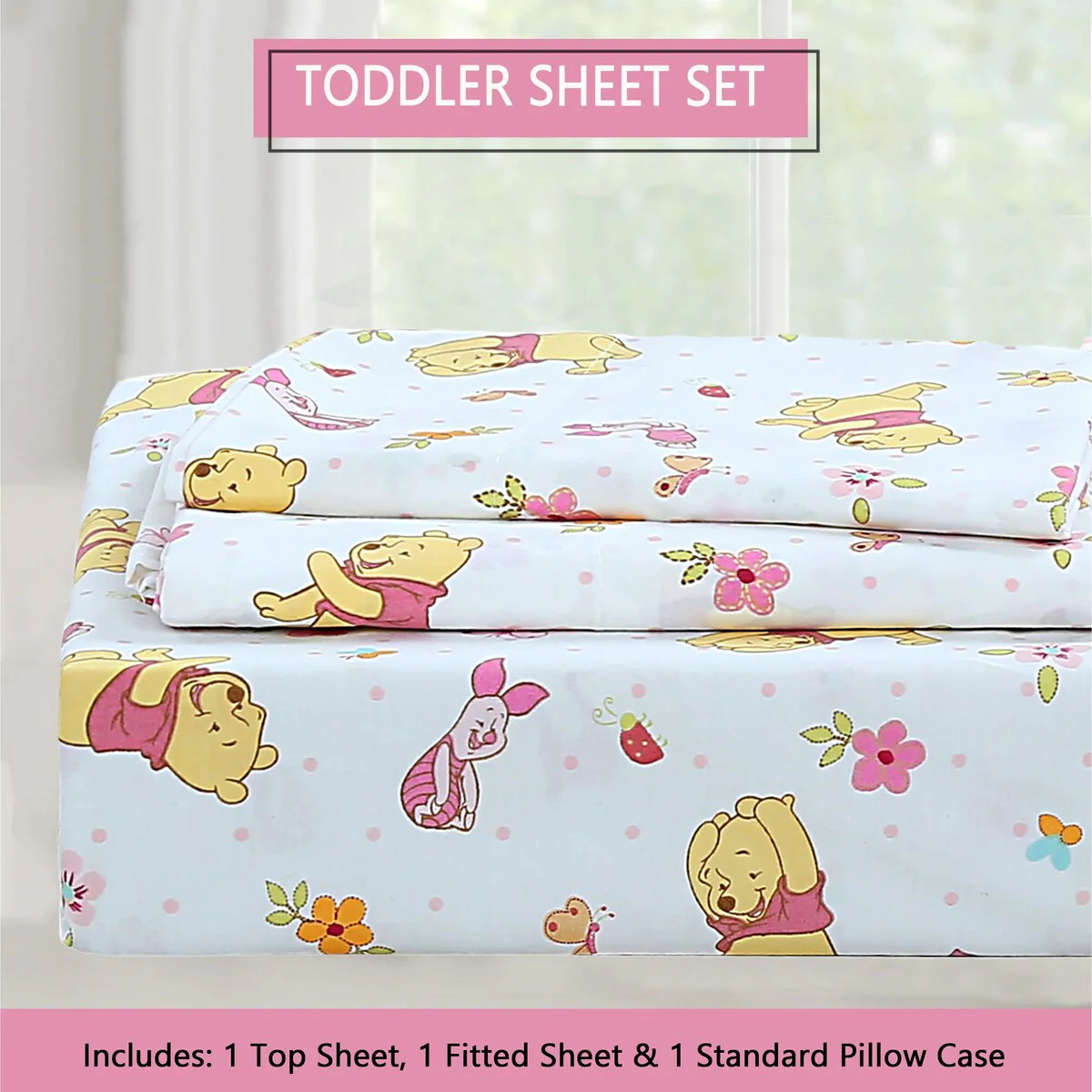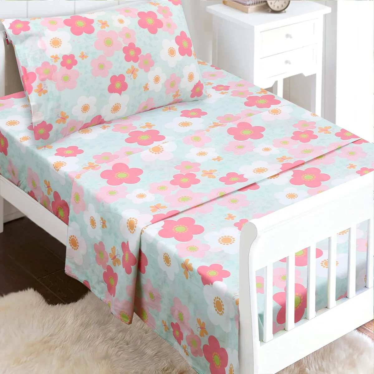- Toddler sheet set includes 3 Pieces – Flat Sheet, Fitted Sheet, and Pillow Case