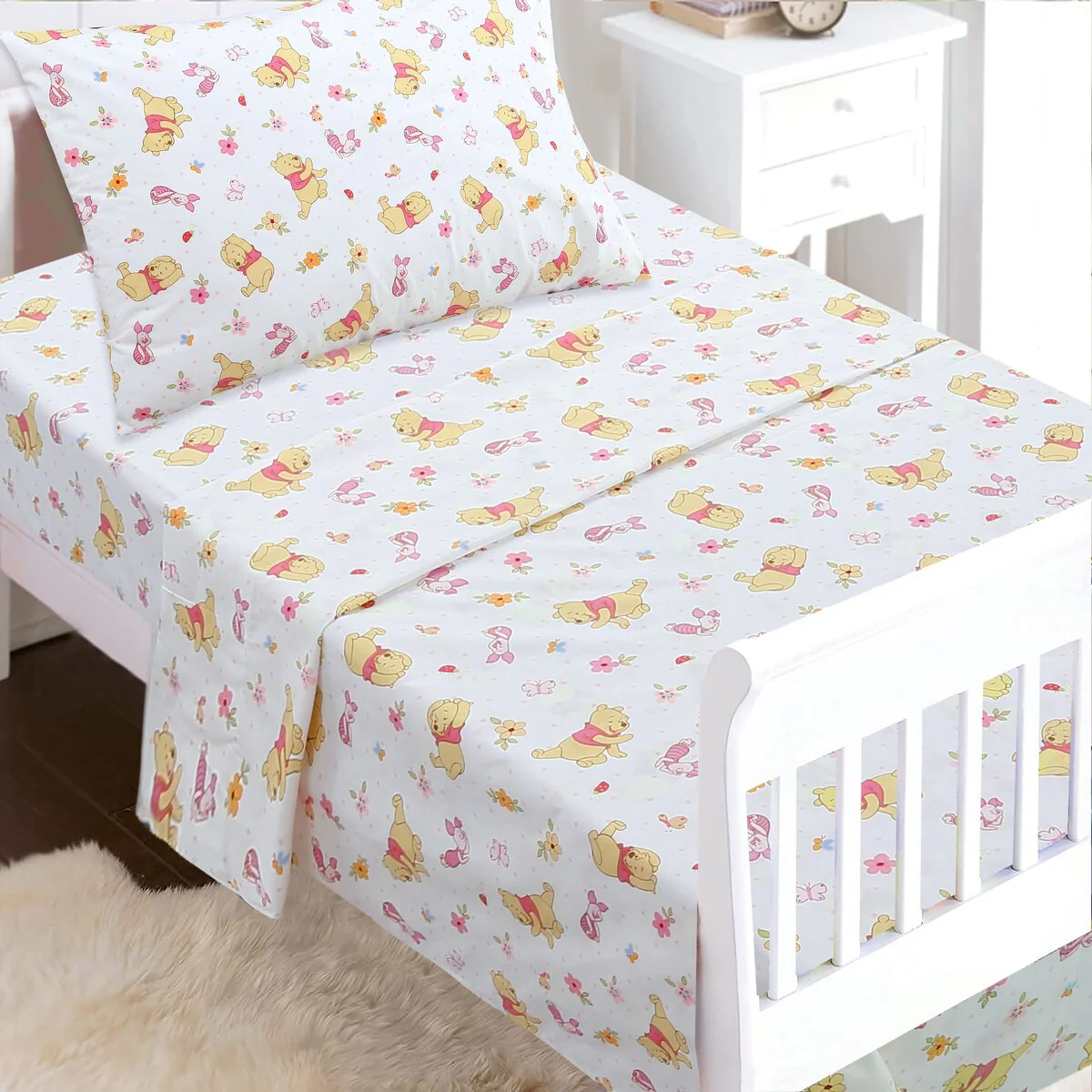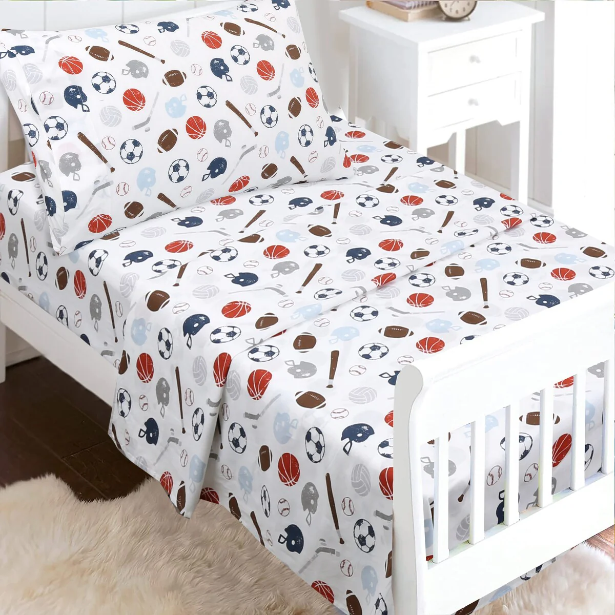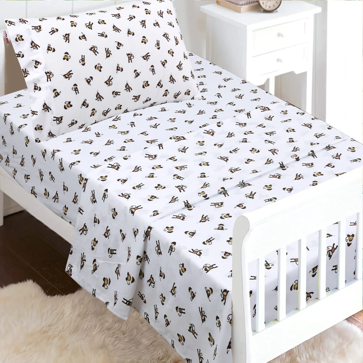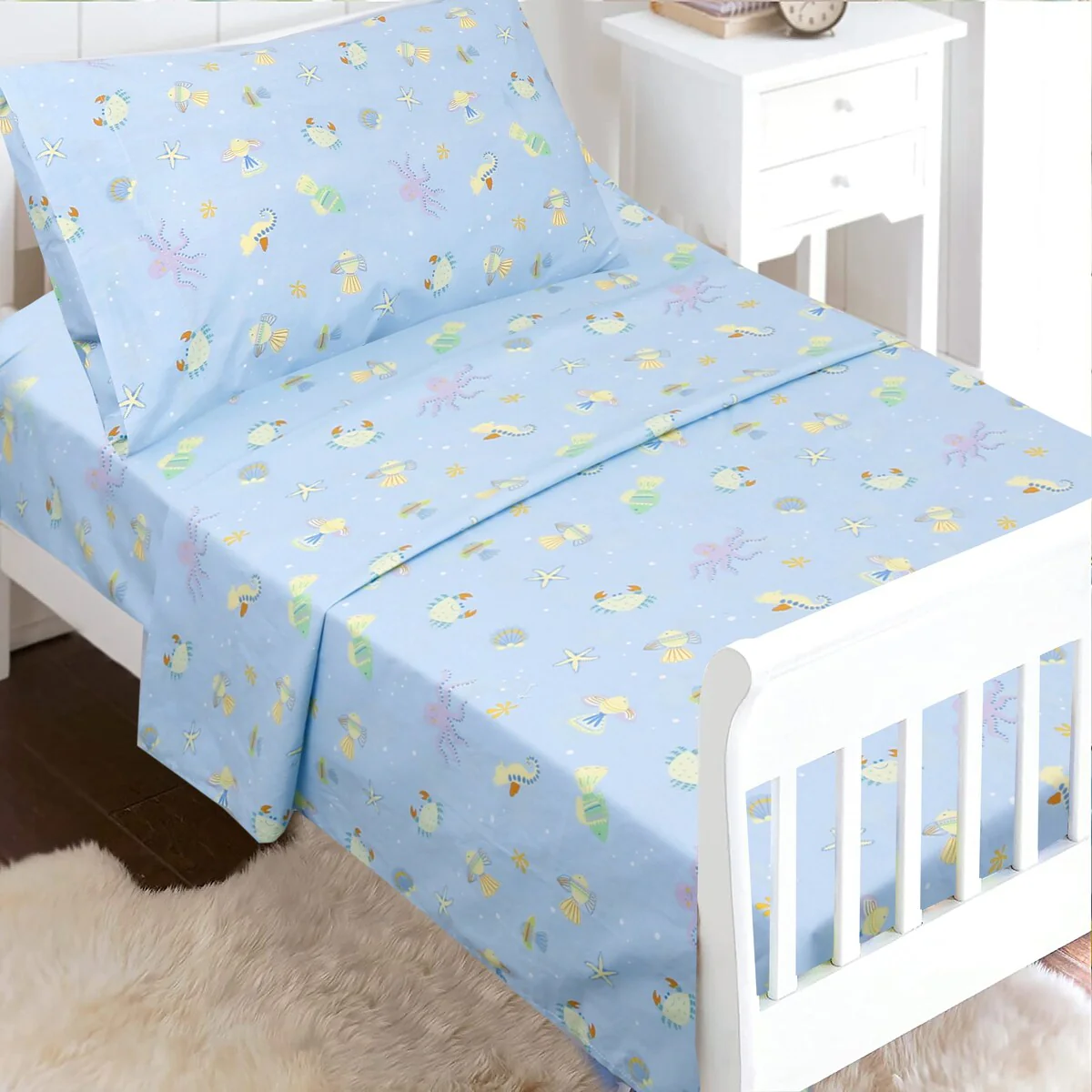 - Toddler sheet set includes 3 Pieces – Flat Sheet, Fitted Sheet, and Pillow Case