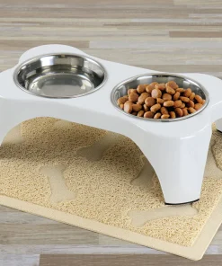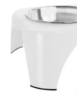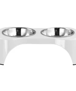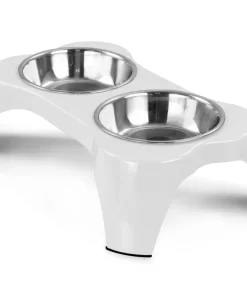 The three piece pet bowl set is the perfect simple and space saving design for feeding small to medium pets. This set comes with two removable 13oz stainless steel bowls, making it easy to wash and fill, and one 4in tall melamine stand. Each bowl fits snugly into the sturdy base, featuring a non slip base to keep this set from sliding during feeding time. Cute bone shaped stand is constructed of durable and long lasting melamine. Both stand and bowls are dishwasher safe. Item Dimensions: 13.50" x 7.50" x 4.00"