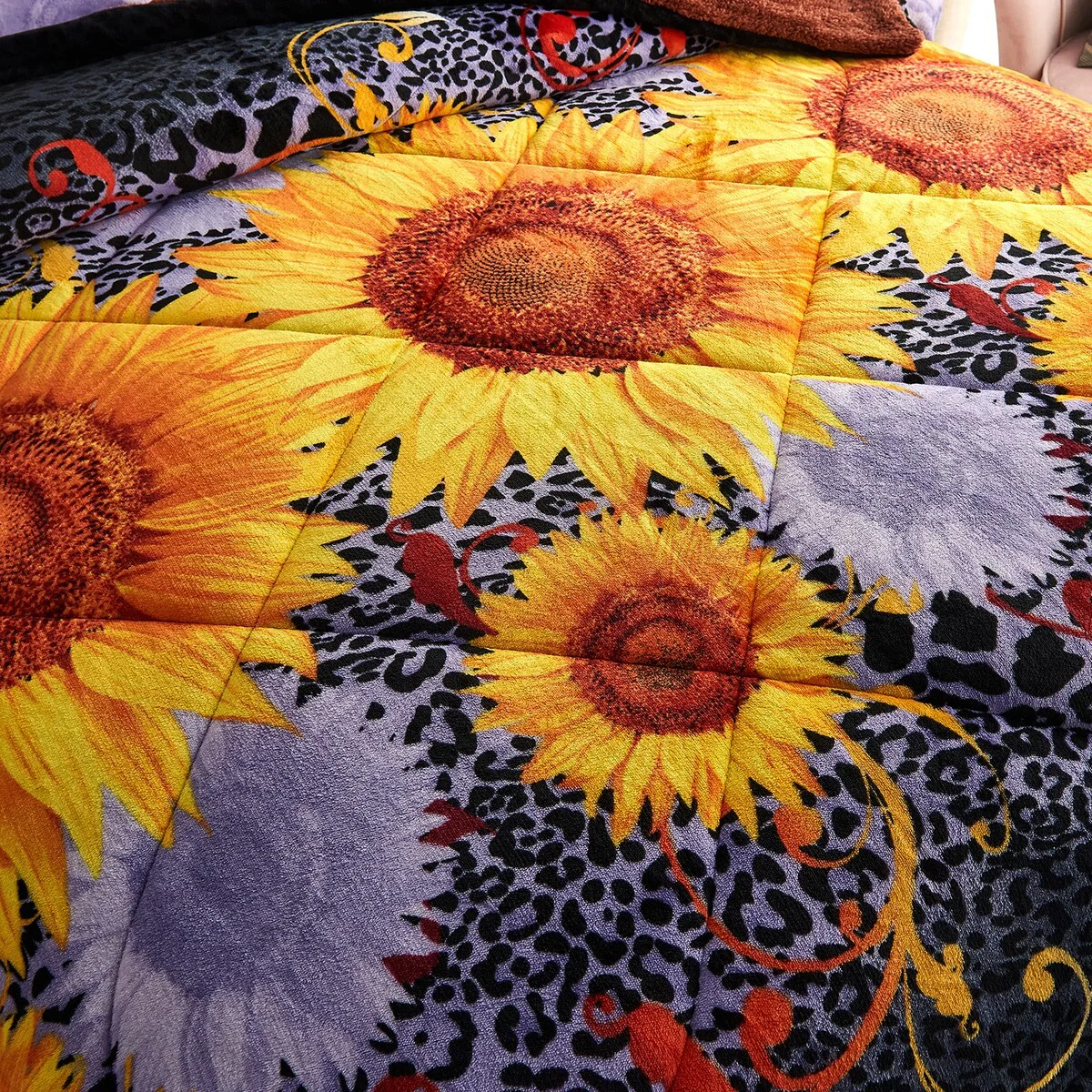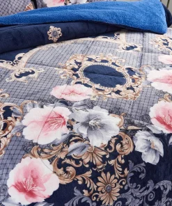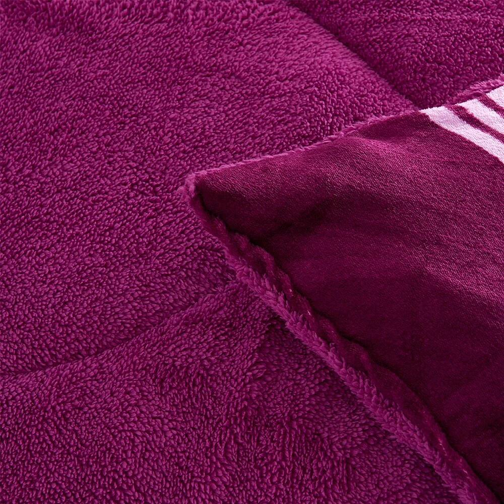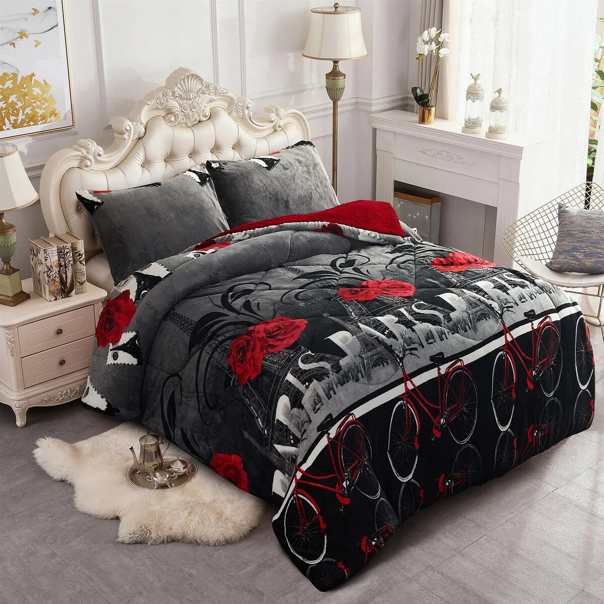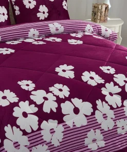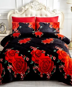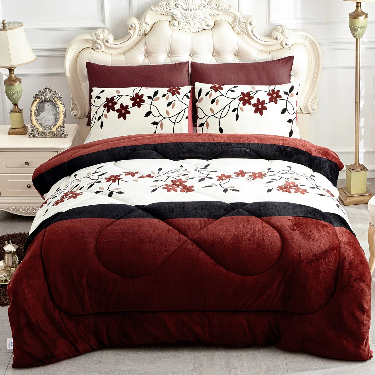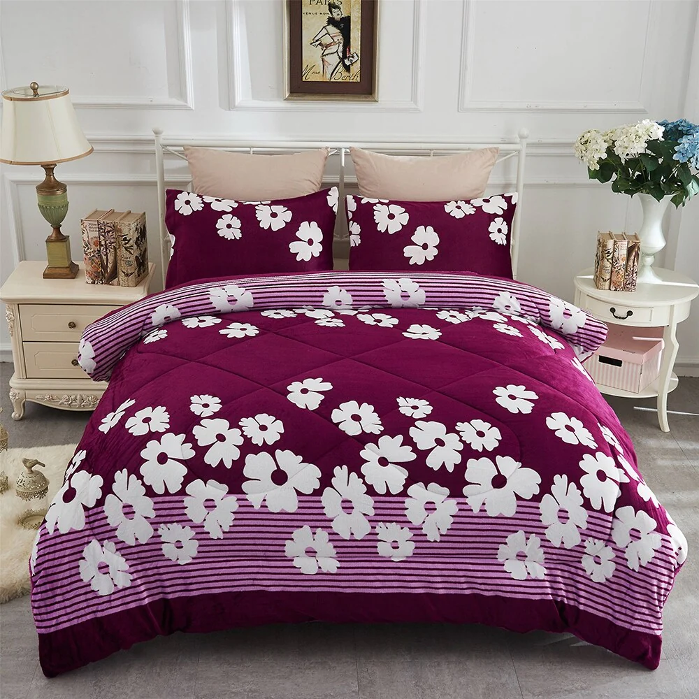 Update your bedroom decor with this cozy and stylish 3-piece floral printed sherpa-backing reversible comforter set. Available in three different patterns and sizes, this set includes a plush sherpa blanket and two pillow covers, providing the perfect combination of comfort and style. The reversible design allows you to switch up your bedroom look effortlessly. Whether you need to stay warm on a chilly spring morning or cozy up on a frosty winter night, this comforter set has got you covered.