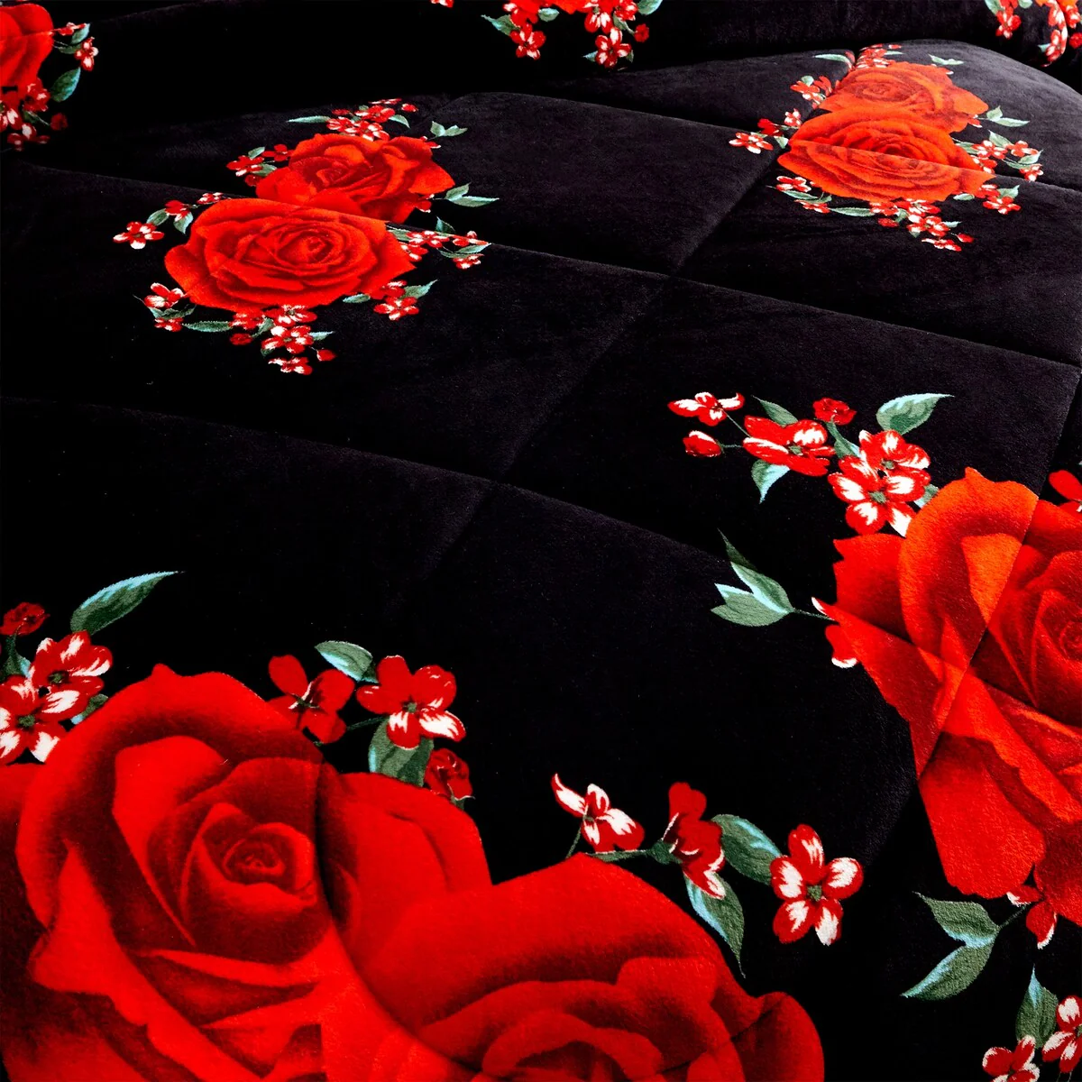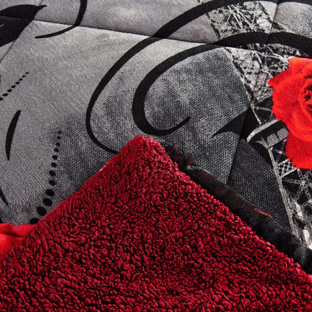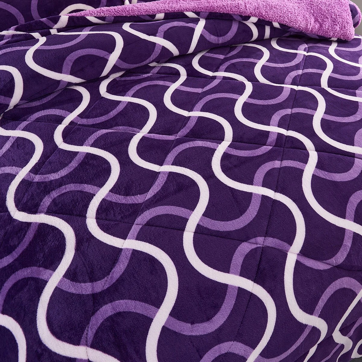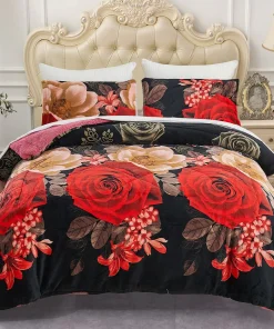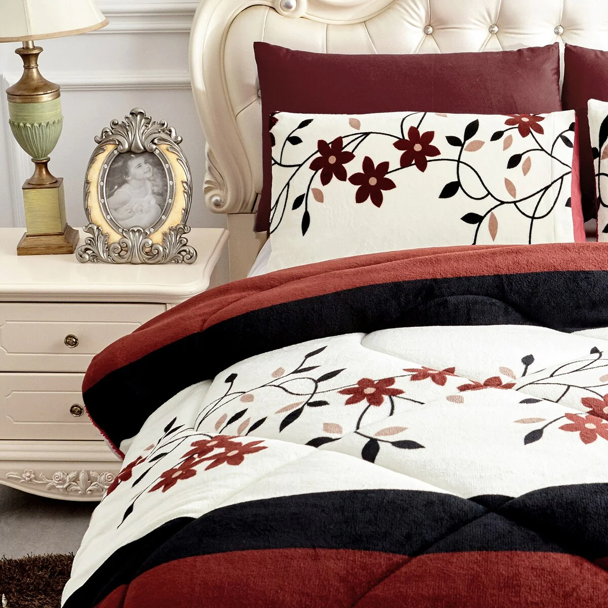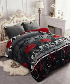 Update your bedroom decor with this cozy and stylish 3-piece floral printed sherpa-backing reversible comforter set. Available in three different patterns and sizes, this set includes a plush sherpa blanket and two pillow covers, providing the perfect combination of comfort and style. The reversible design allows you to switch up your bedroom look effortlessly. Whether you need to stay warm on a chilly spring morning or cozy up on a frosty winter night, this comforter set has got you covered.