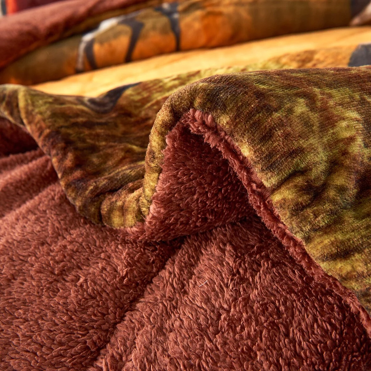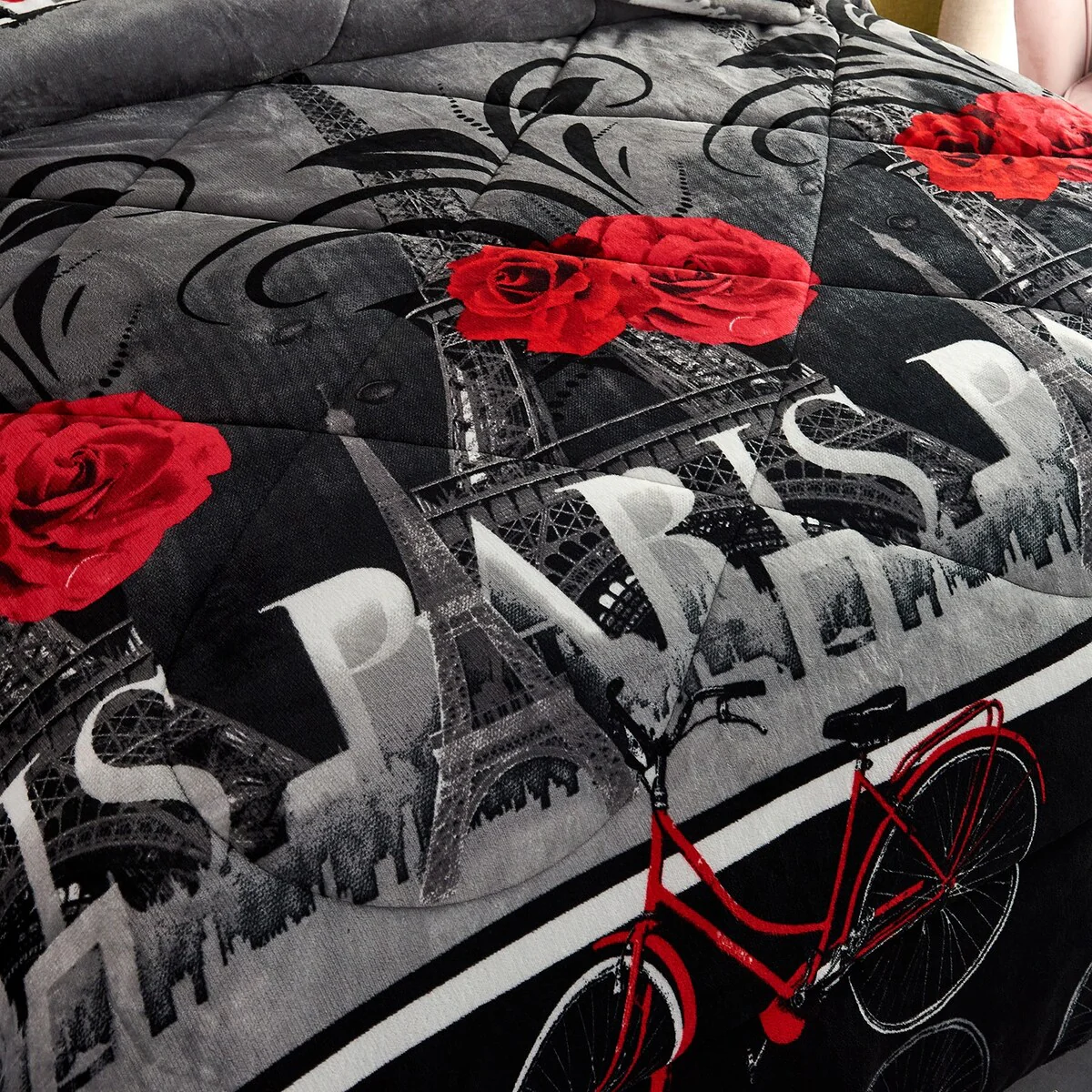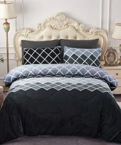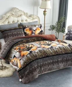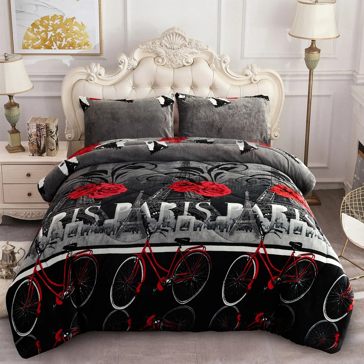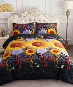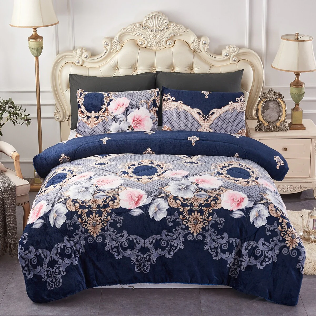 Update your bedroom decor with this cozy and stylish 3-piece floral printed sherpa-backing reversible comforter set. Available in three different patterns and sizes, this set includes a plush sherpa blanket and two pillow covers, providing the perfect combination of comfort and style. The reversible design allows you to switch up your bedroom look effortlessly. Whether you need to stay warm on a chilly spring morning or cozy up on a frosty winter night, this comforter set has got you covered.