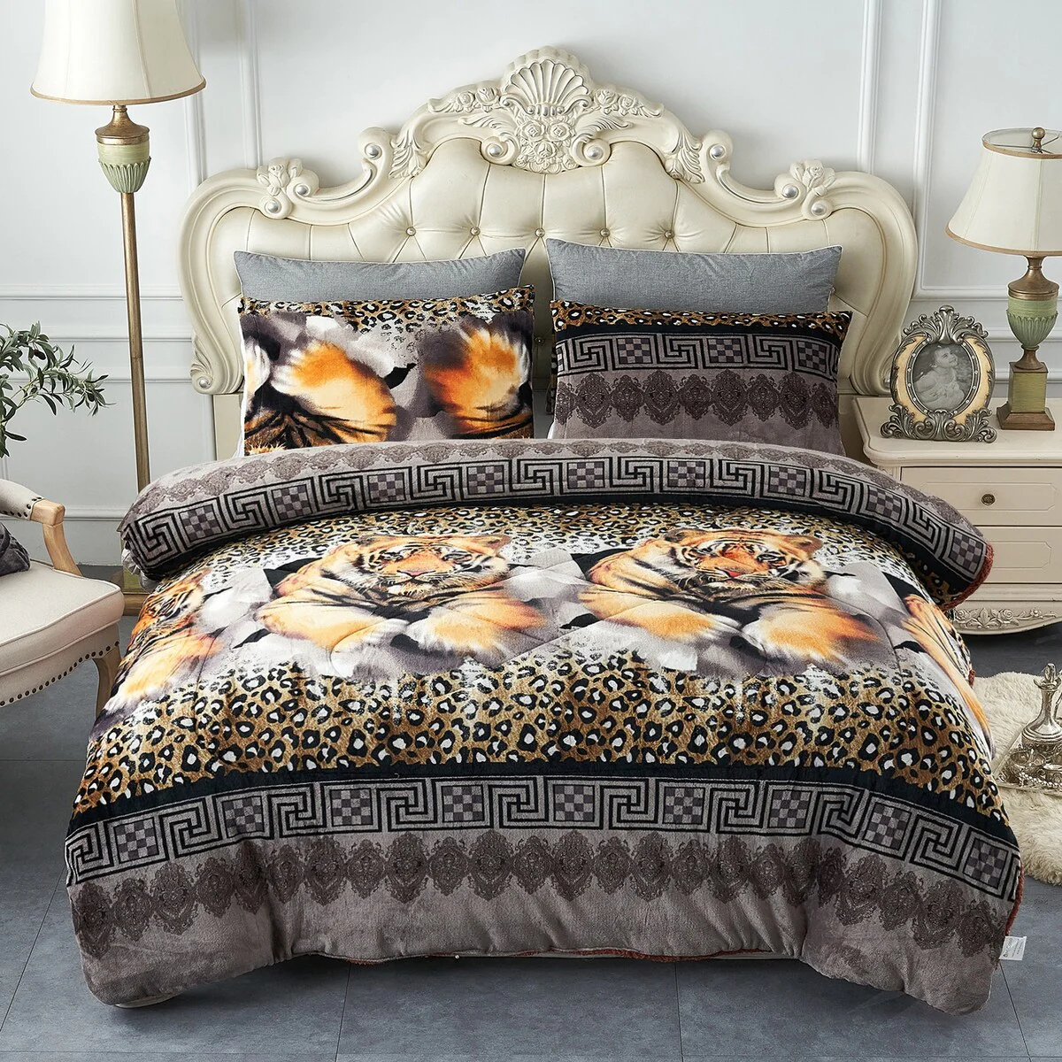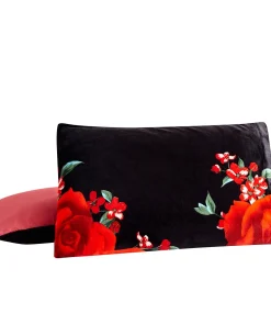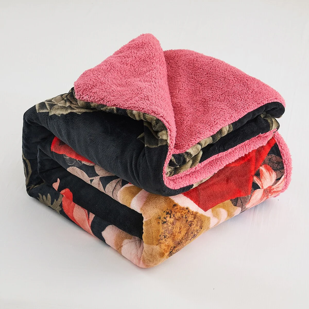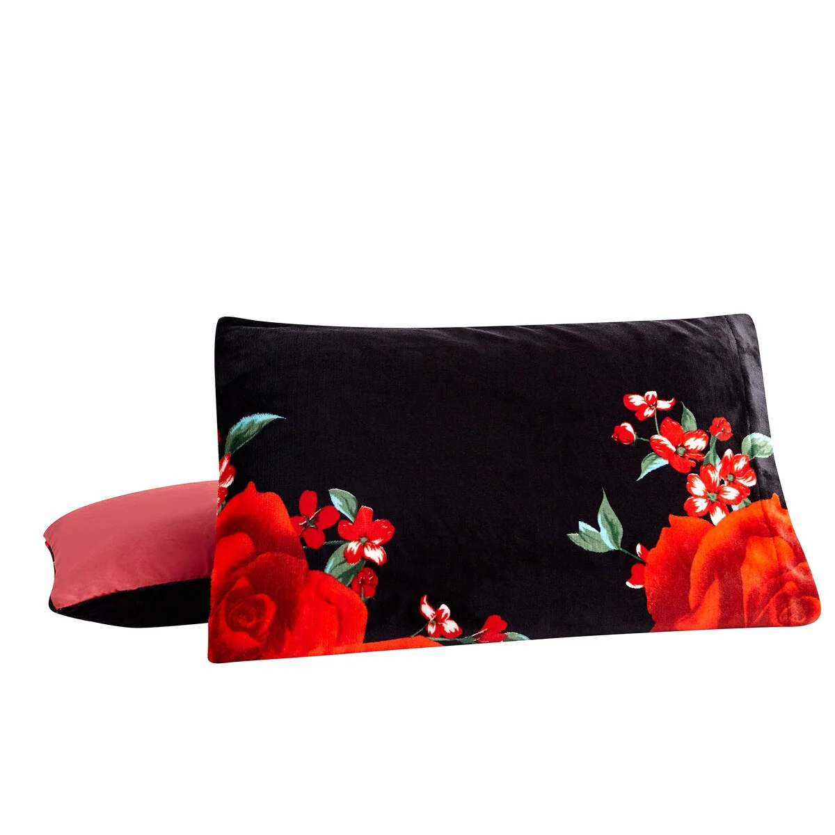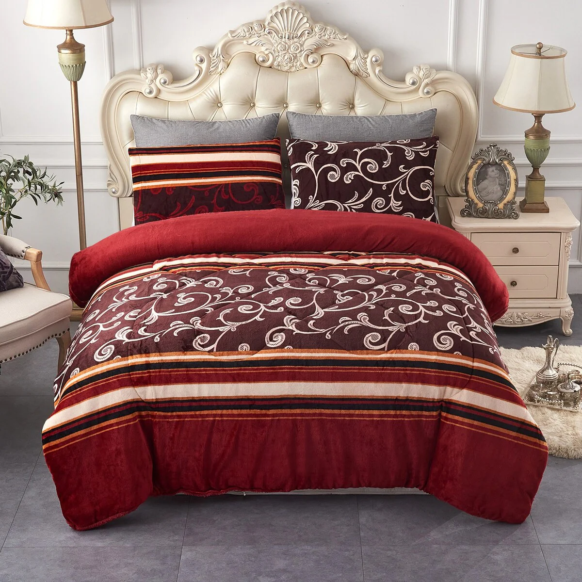 Update your bedroom decor with this cozy and stylish 3-piece floral printed sherpa-backing reversible comforter set. Available in three different patterns and sizes, this set includes a plush sherpa blanket and two pillow covers, providing the perfect combination of comfort and style. The reversible design allows you to switch up your bedroom look effortlessly. Whether you need to stay warm on a chilly spring morning or cozy up on a frosty winter night, this comforter set has got you covered.
