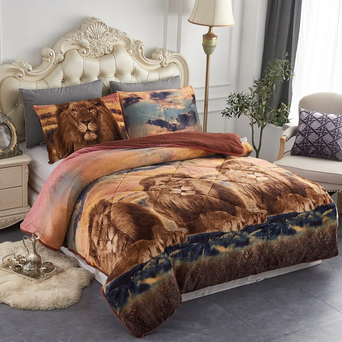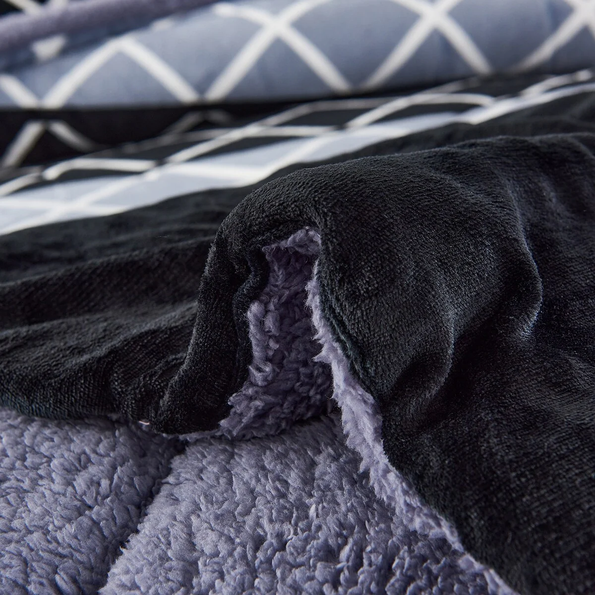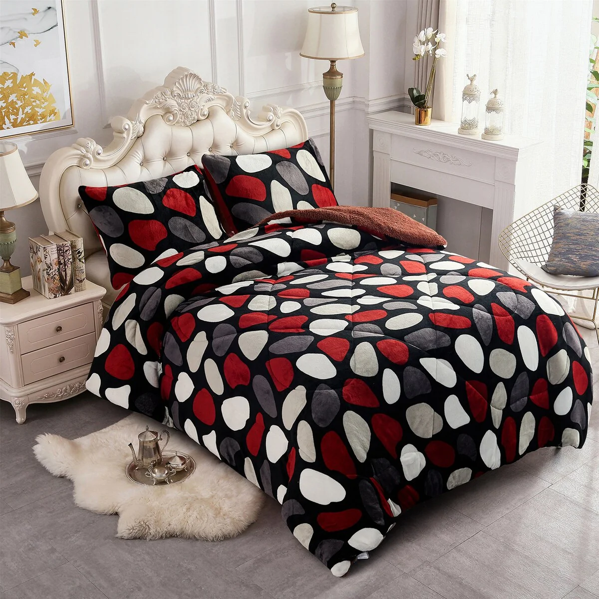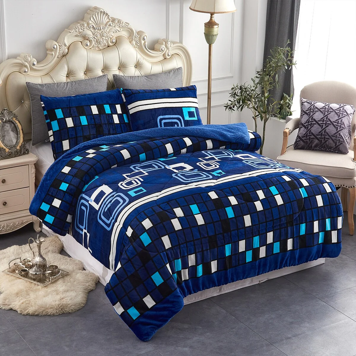 - 3-piece comforter set includes 1 plush sherpa blanket and 2 pillow covers
