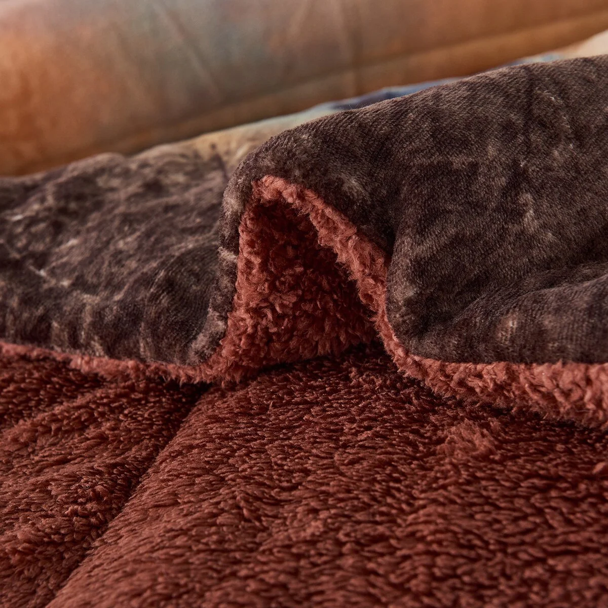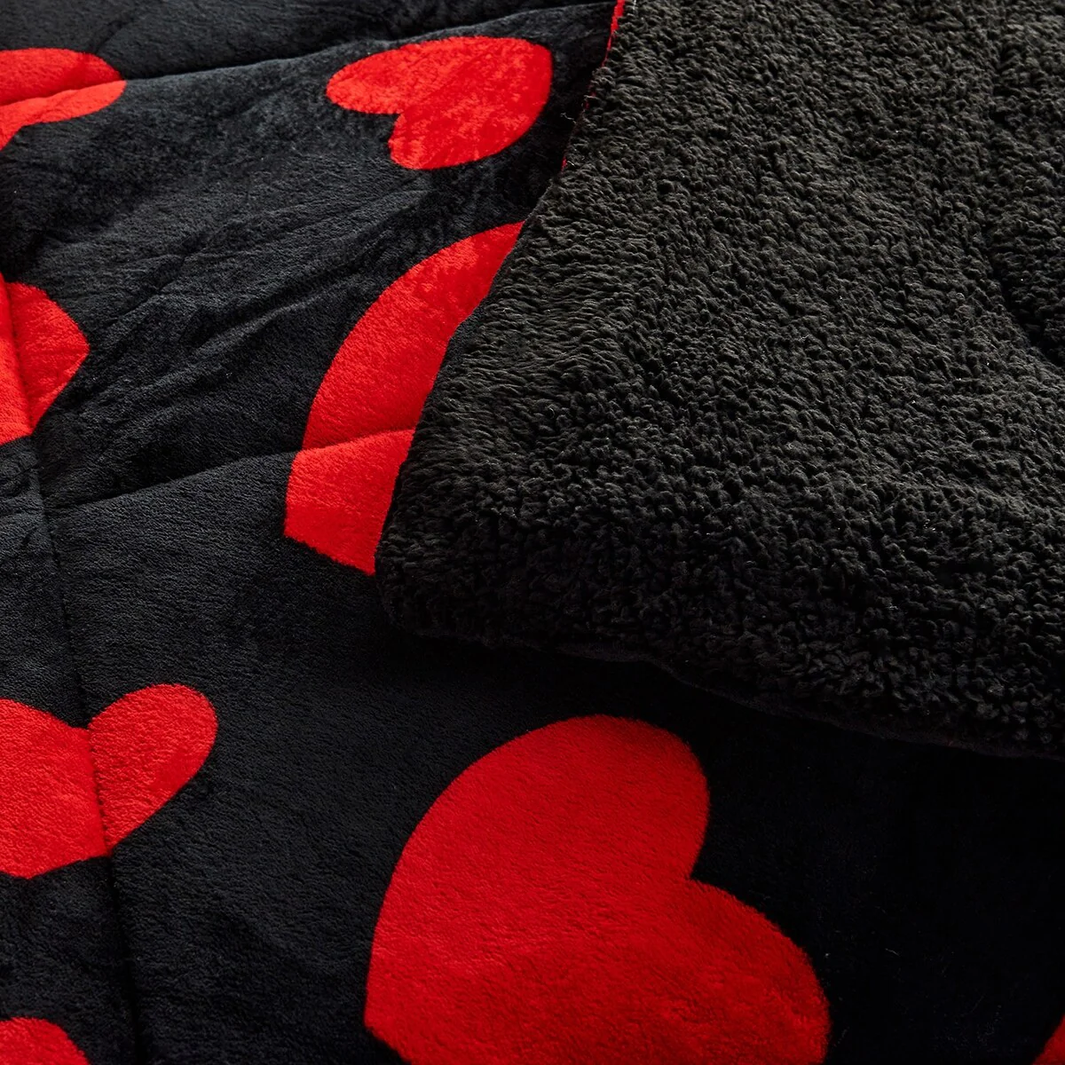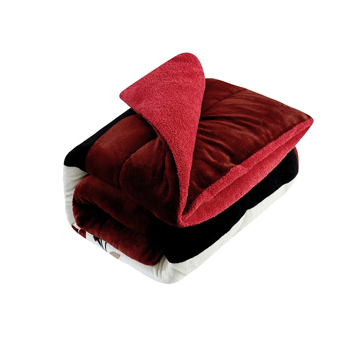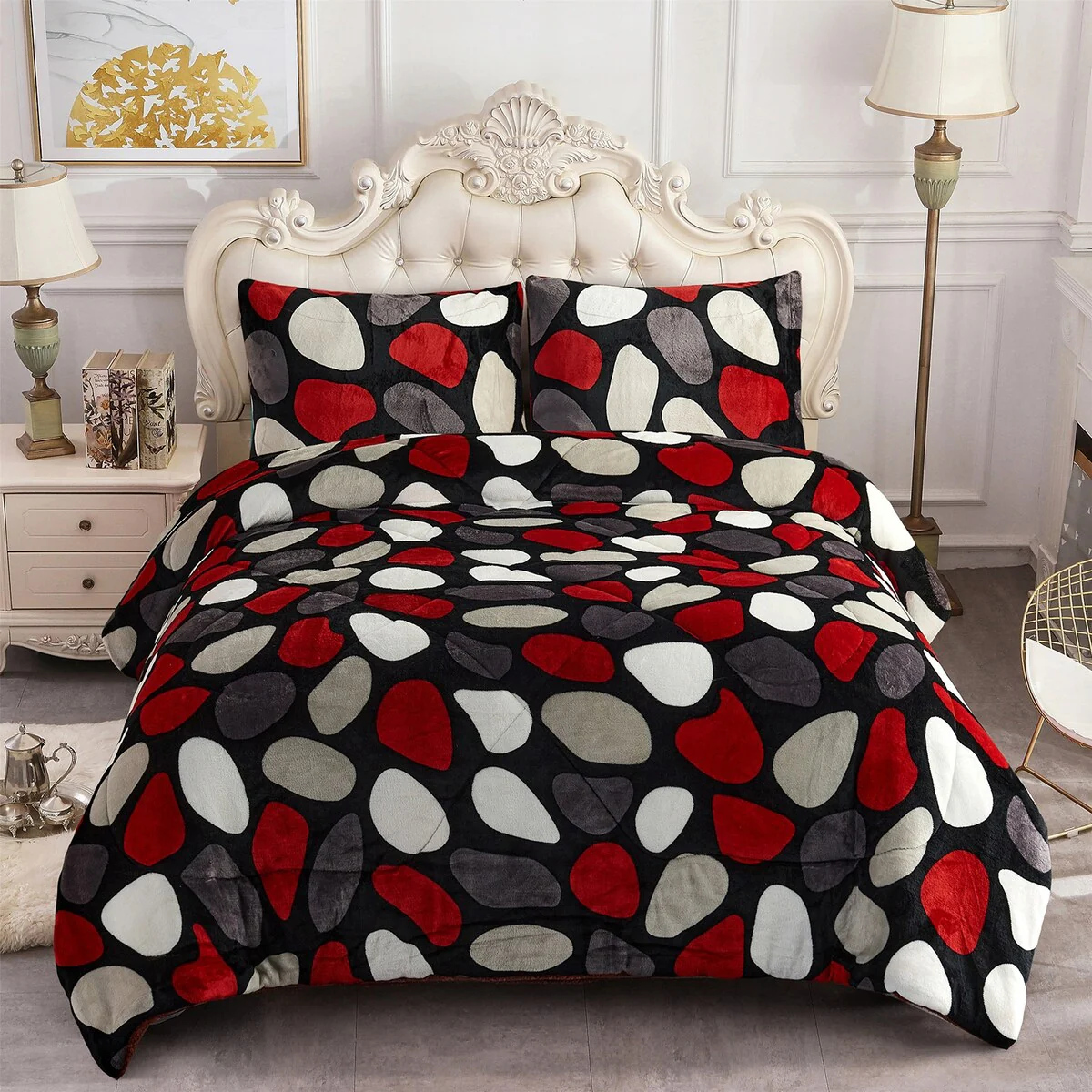 - 3-piece comforter set includes 1 plush sherpa blanket and 2 pillow covers