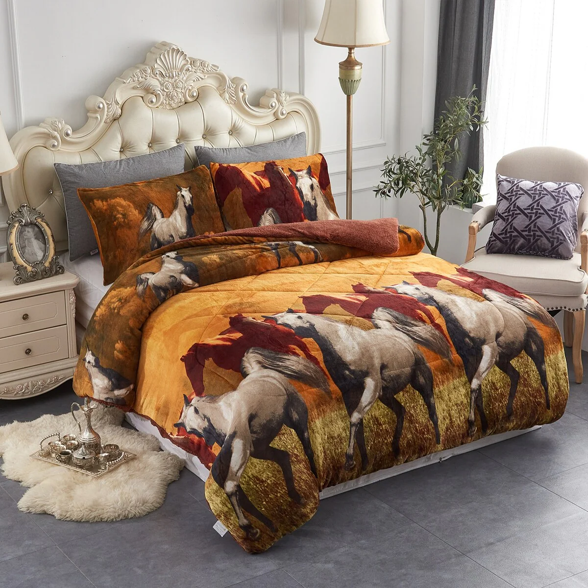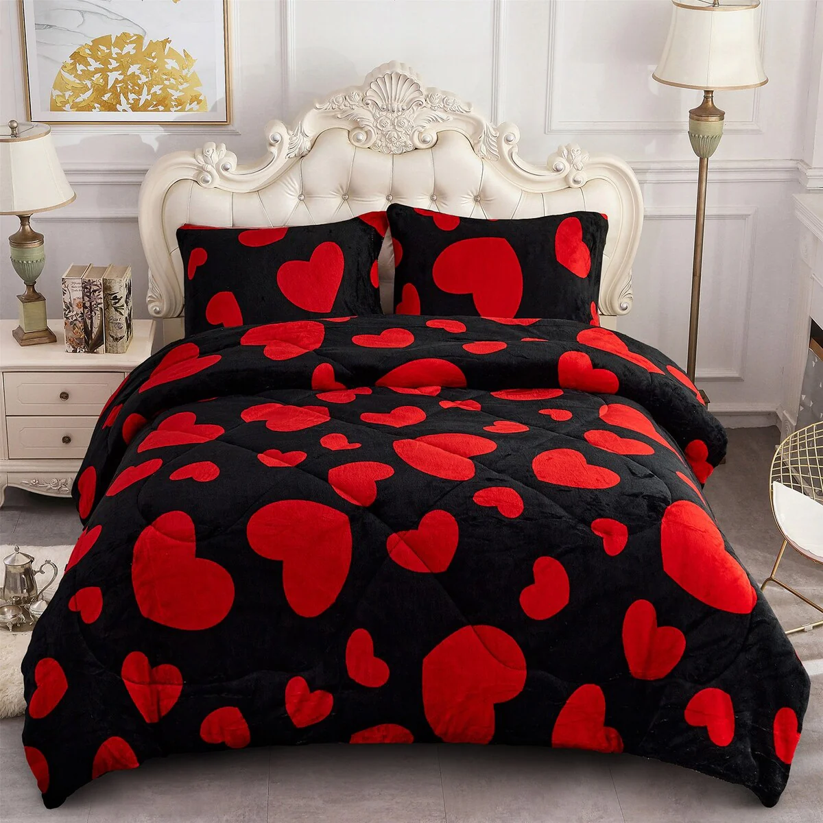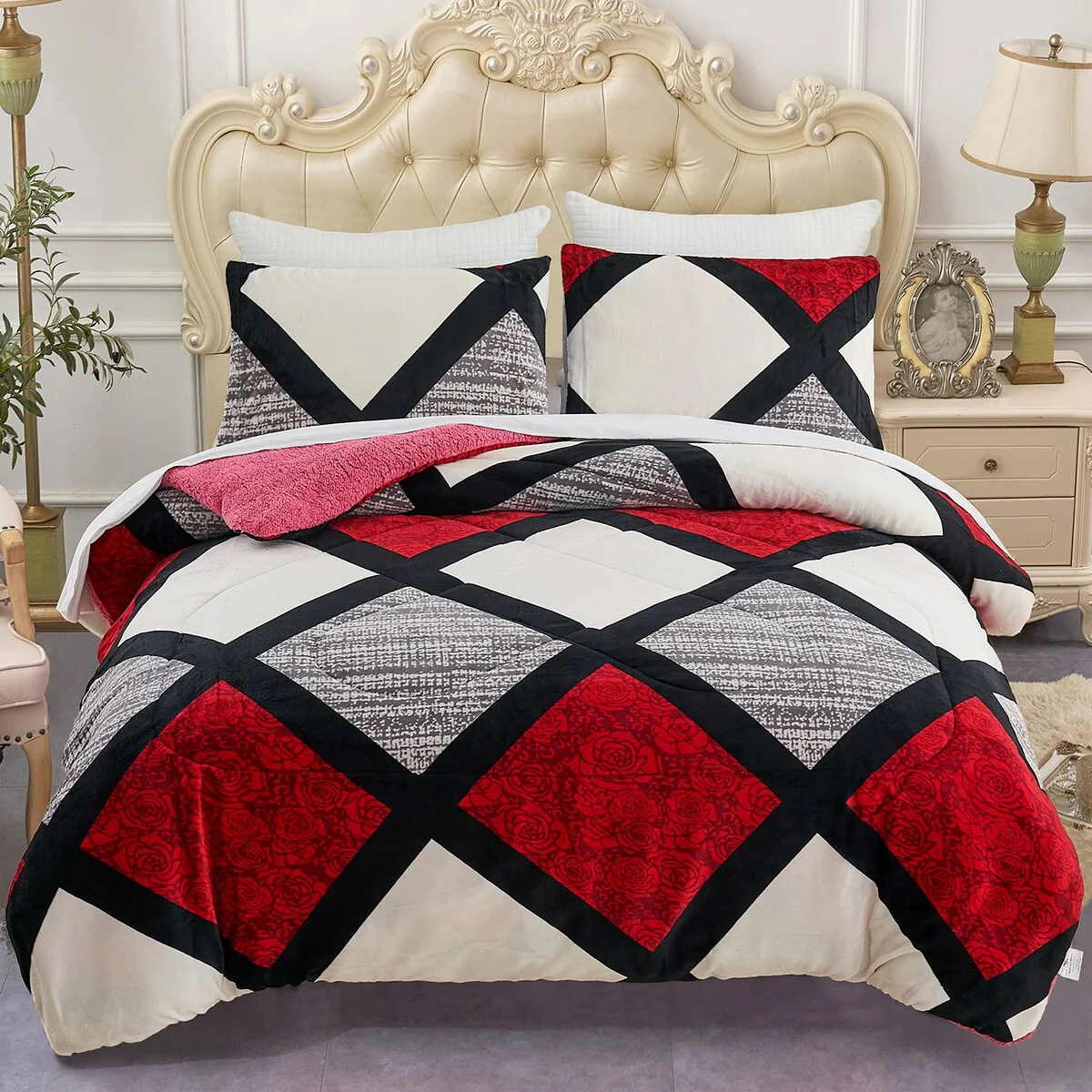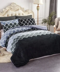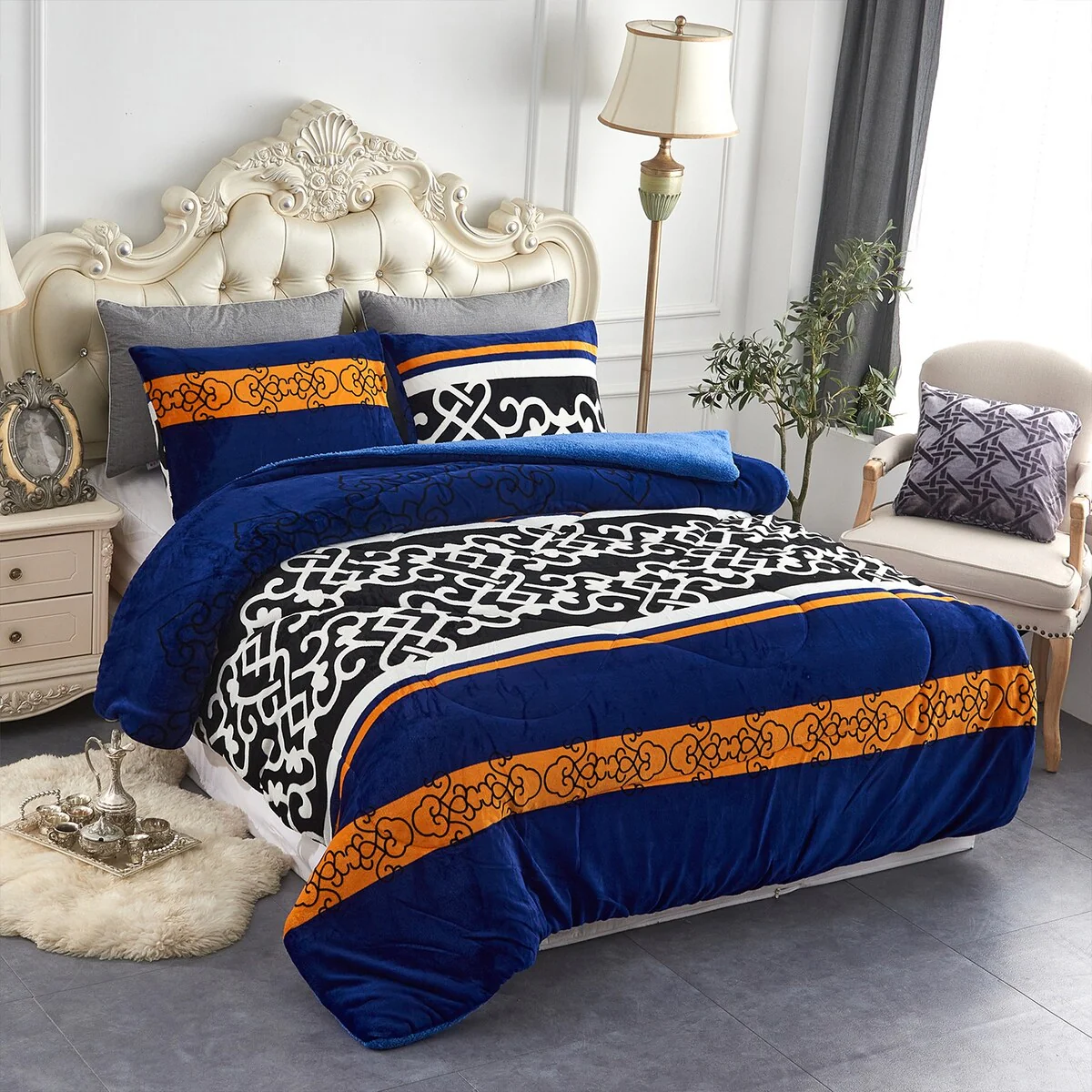 - 3-piece comforter set includes 1 plush sherpa blanket and 2 pillow covers