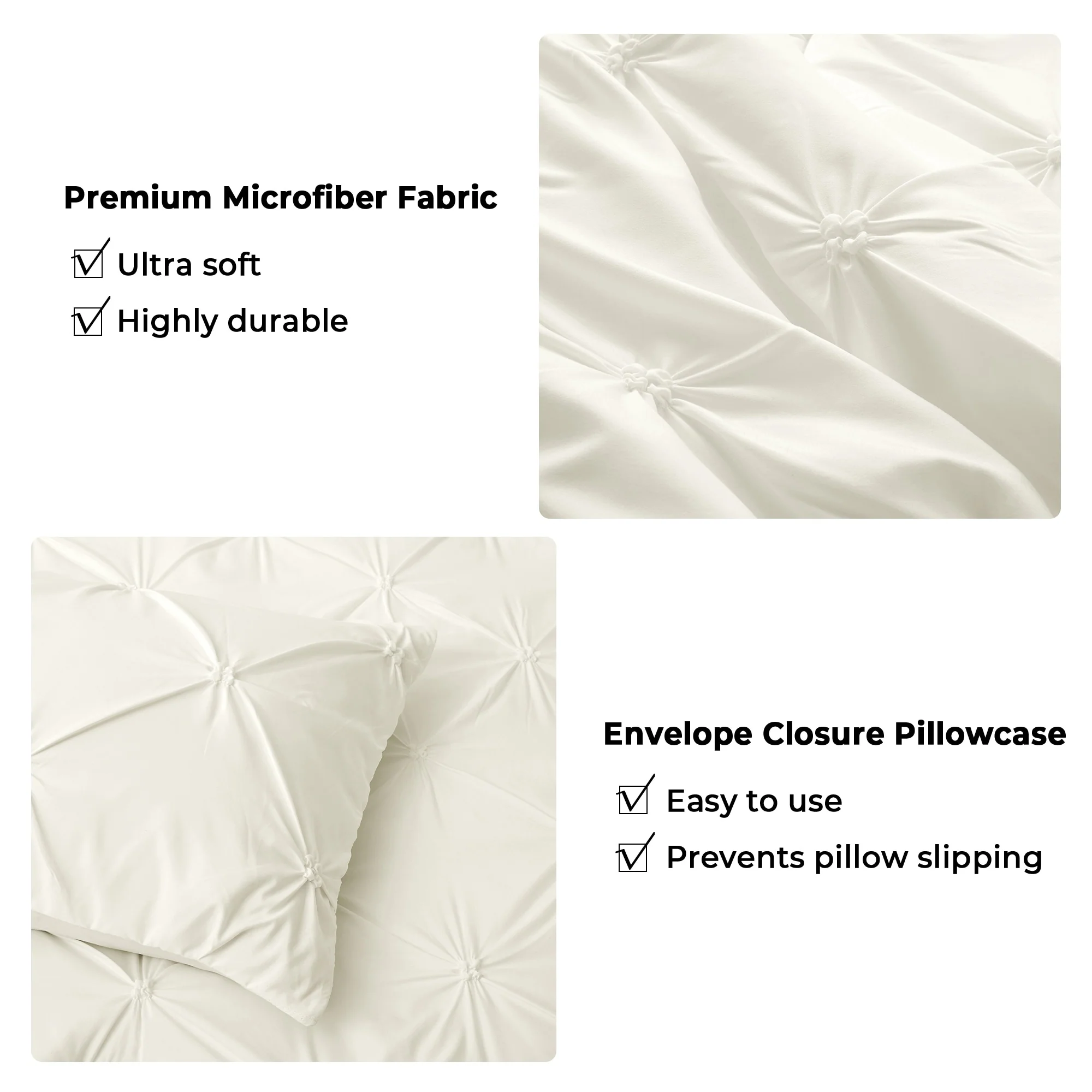 Transform your sleep space with this 3 Piece Soft Reversible Pintuck Pinch Pleat and Clipped Comforter Set, available in a variety of colors to complement your decor. Featuring a stunning pintuck and clipped geometric design, this comforter set includes a cozy comforter and matching pillow cases. Crafted from 100% soft polyester material, this comforter set provides warmth and comfort throughout the night, making it perfect for year-round use.