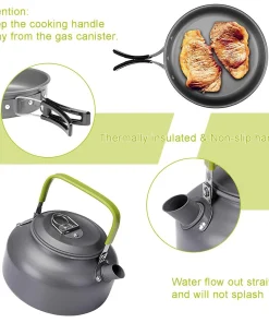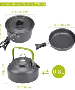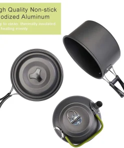 Our cookware sets are light, compact and mobile. All the items in the cookware can be stored together in a net bag to save space and facilitate carrying. The product is made of high-quality aluminum alloy, which is durable, non-toxic and tasteless. It can be used for a long time.