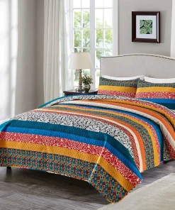 Get cozy and stylish with our 3-Piece Printed Reversible Bedding Quilt Set. Our durable quilt construction consists of three separate layers carefully embossed together, providing long-lasting warm comfort. The solid colors with embossed pattern add a touch of elegance to your bedroom decor, while the ultra-soft, wrinkle-free, hypoallergenic, and fade-resistant fabric ensures restful nights. Machine washable cold and tumble dry on low heat for easy care.