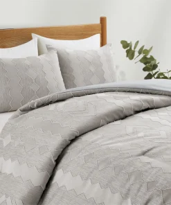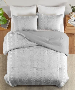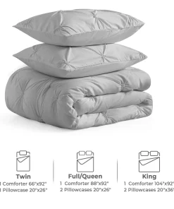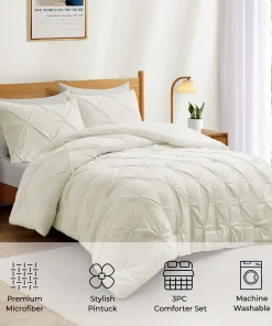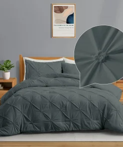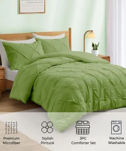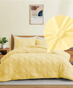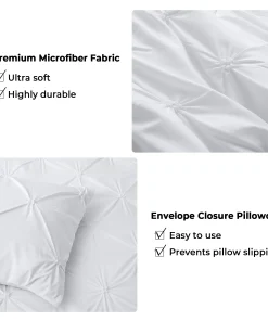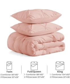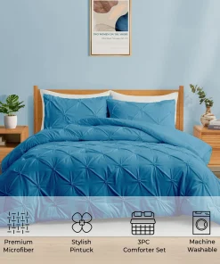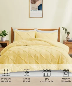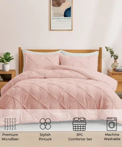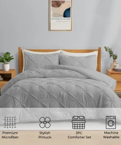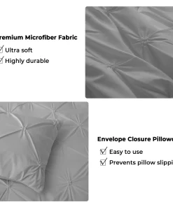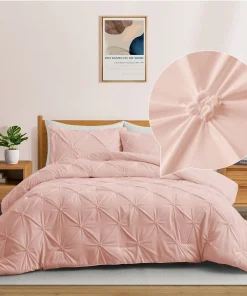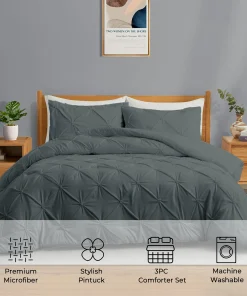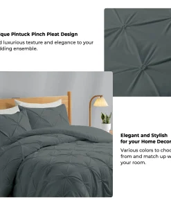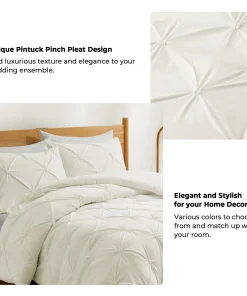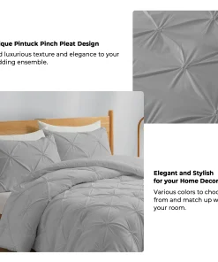 Transform your sleep space with this 3 Piece Soft Reversible Pintuck Pinch Pleat and Clipped Comforter Set, available in a variety of colors to complement your decor. Featuring a stunning pintuck and clipped geometric design, this comforter set includes a cozy comforter and matching pillow cases. Crafted from 100% soft polyester material, this comforter set provides warmth and comfort throughout the night, making it perfect for year-round use.