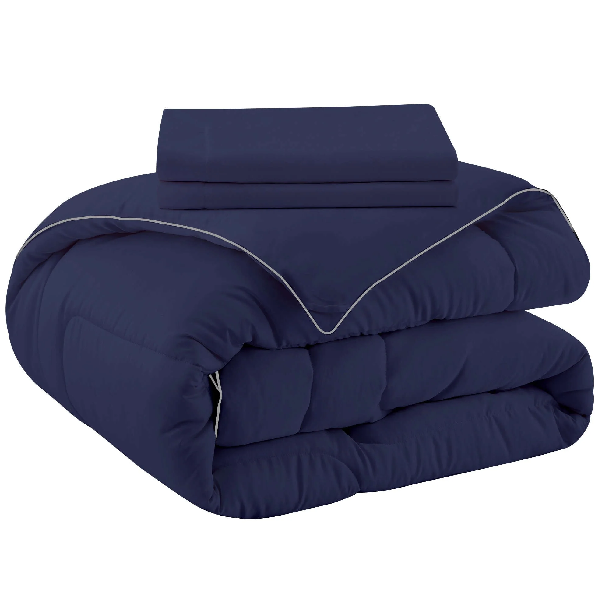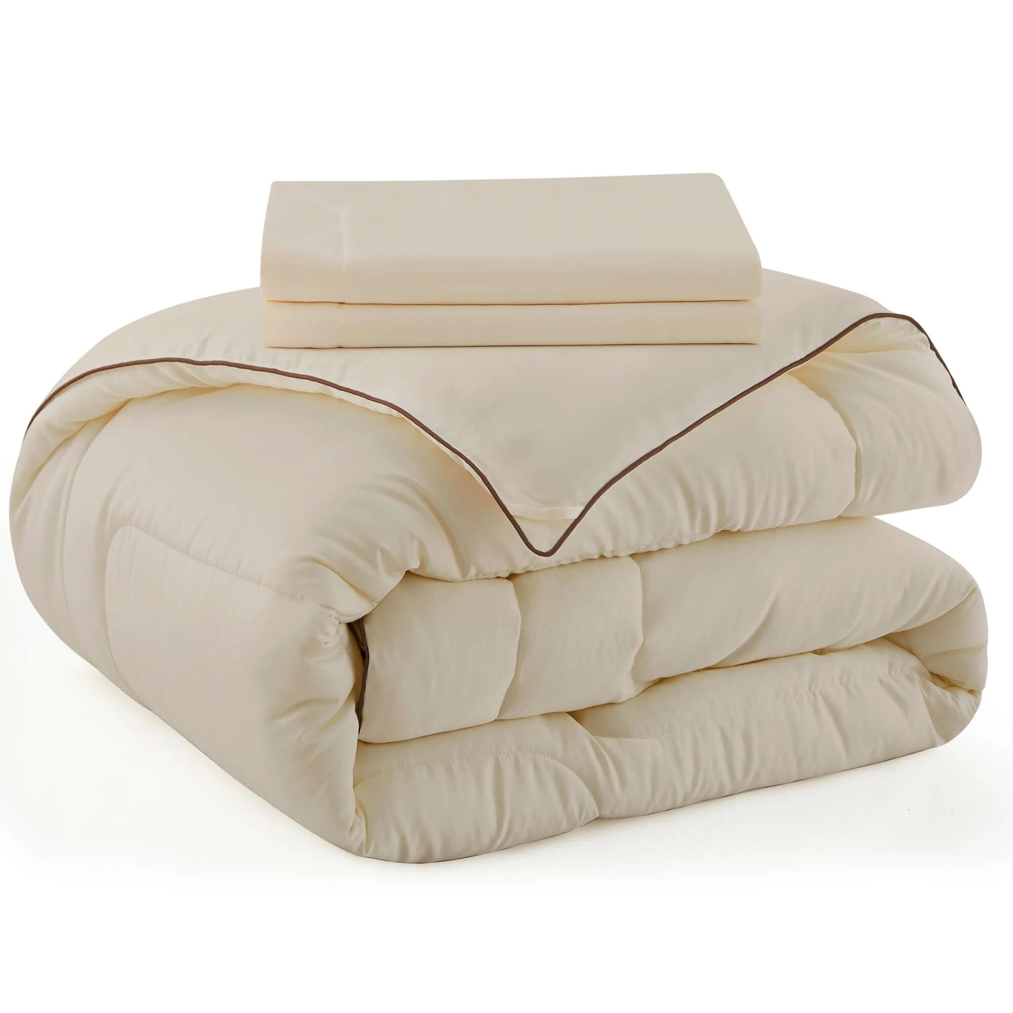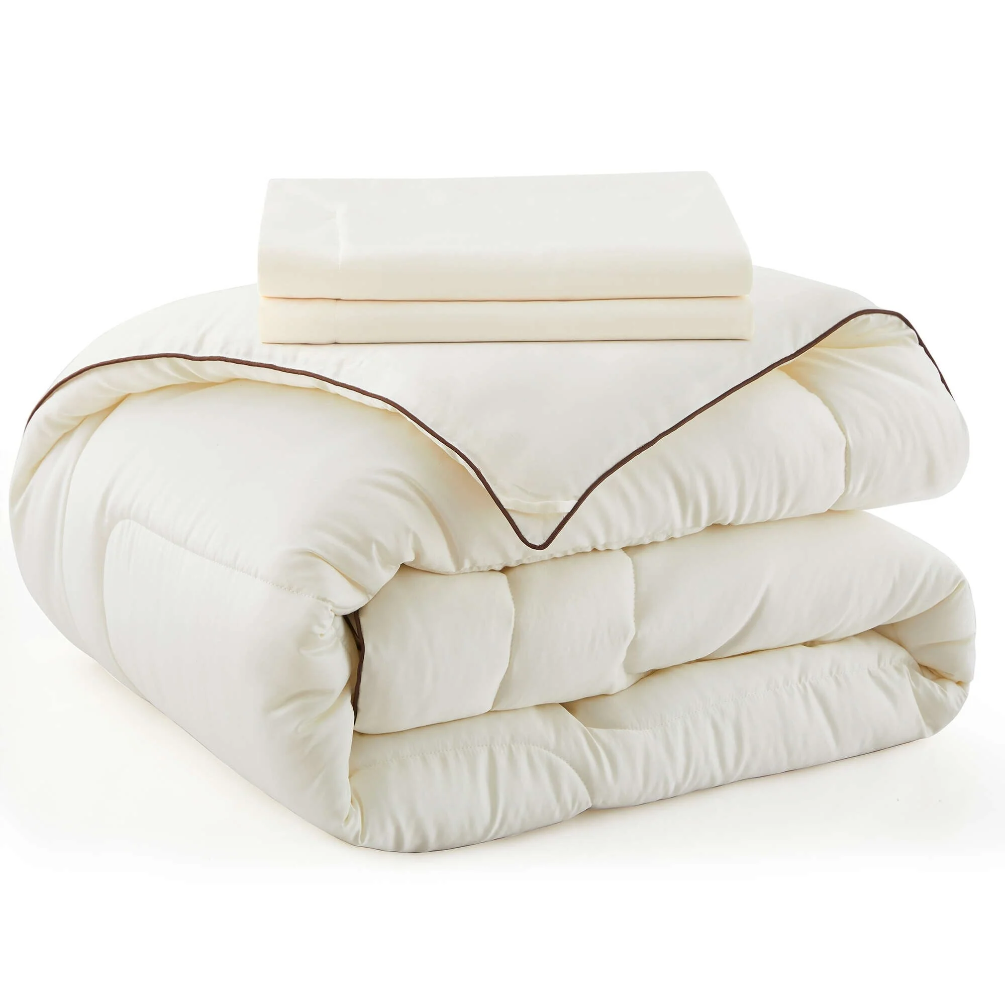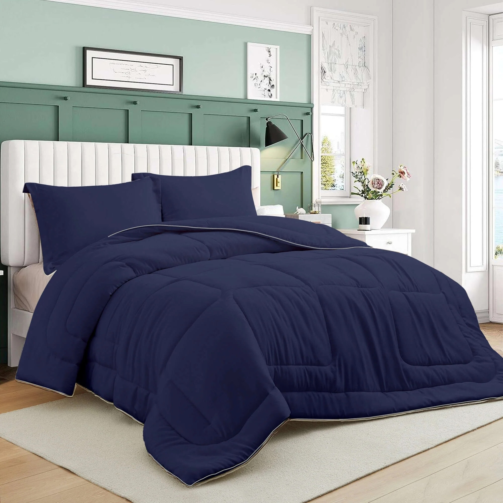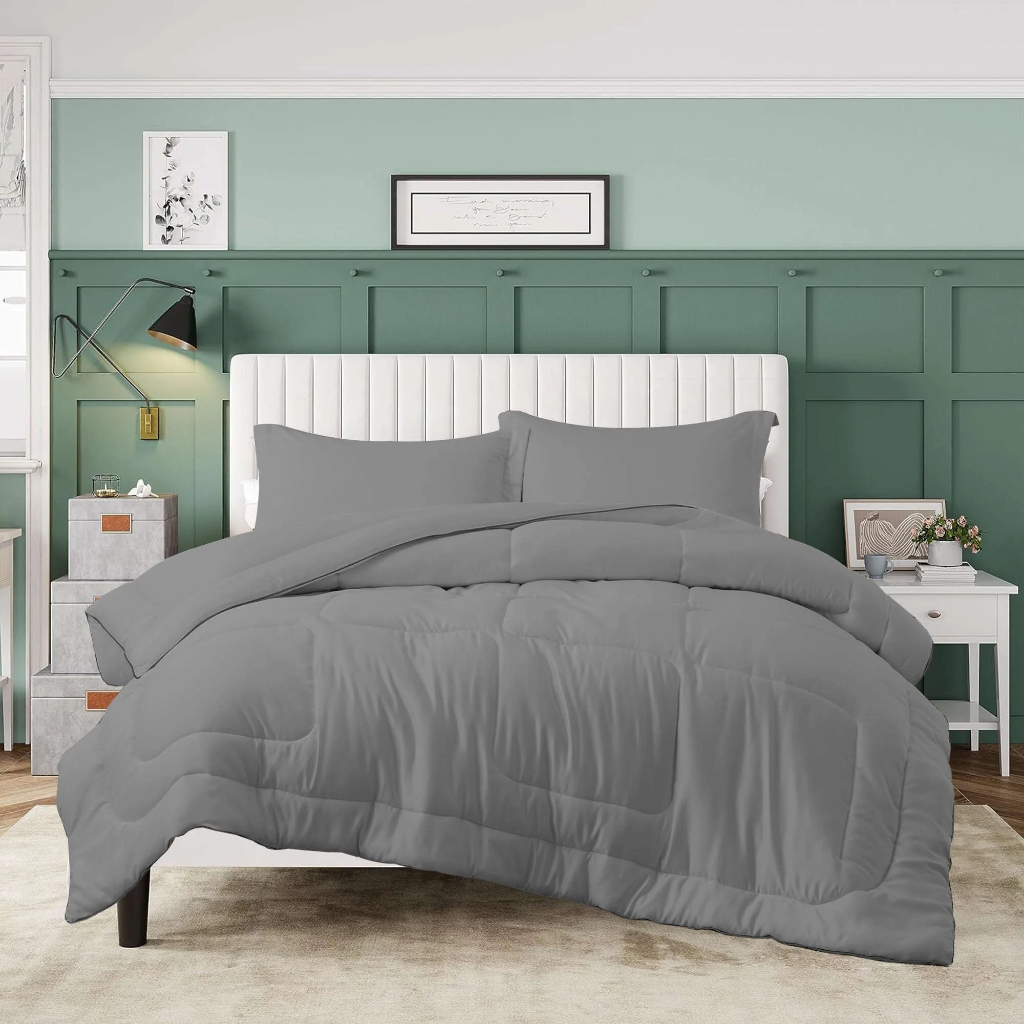 - [Premium Filling] Whole piece microfiber Filling with tight stylish stitching prevents fill from clumping or shifting. The comforter is fluffy and cozy. It will not put downward pressure on your body. This soft and breathable fabric is good for a comfortable night sleep.