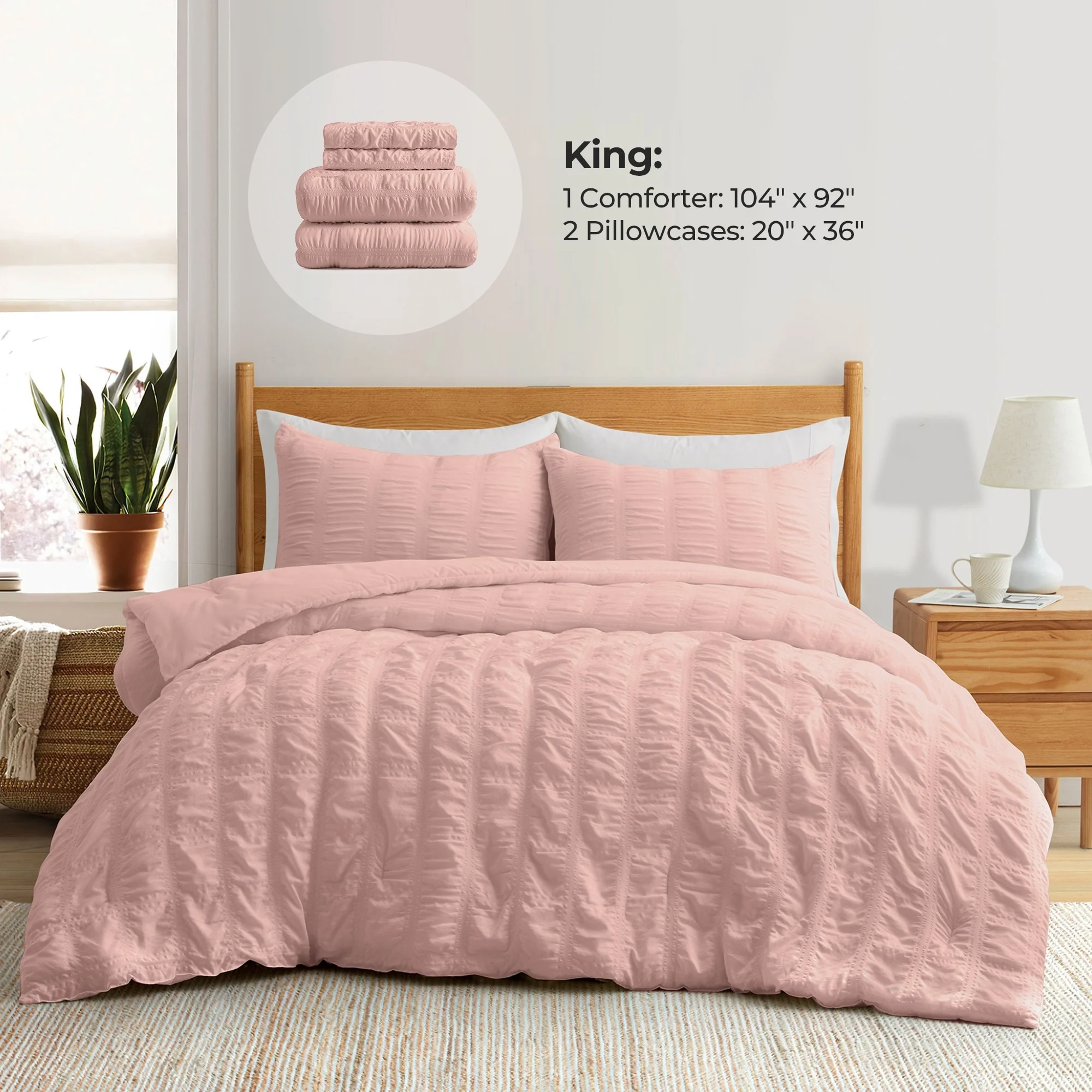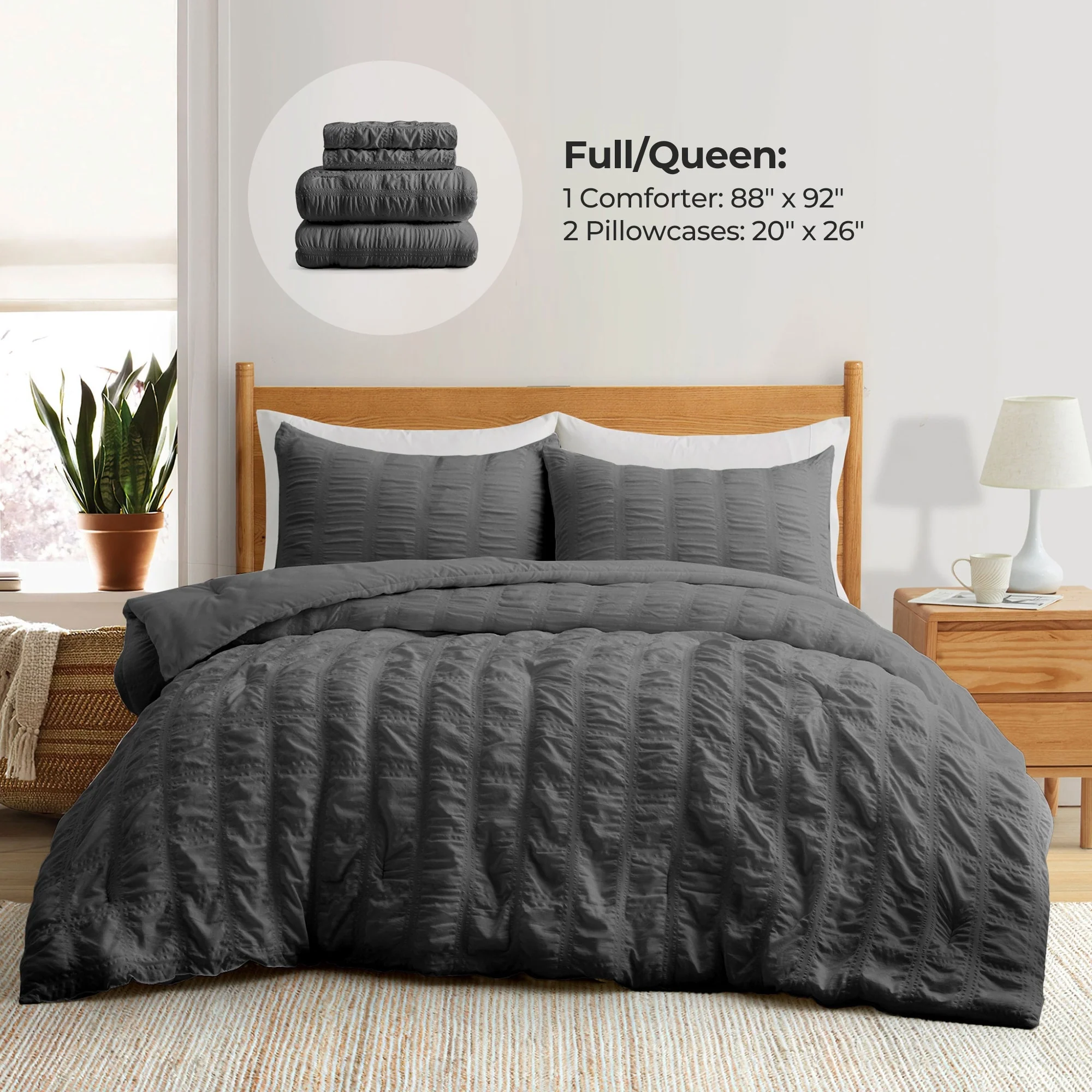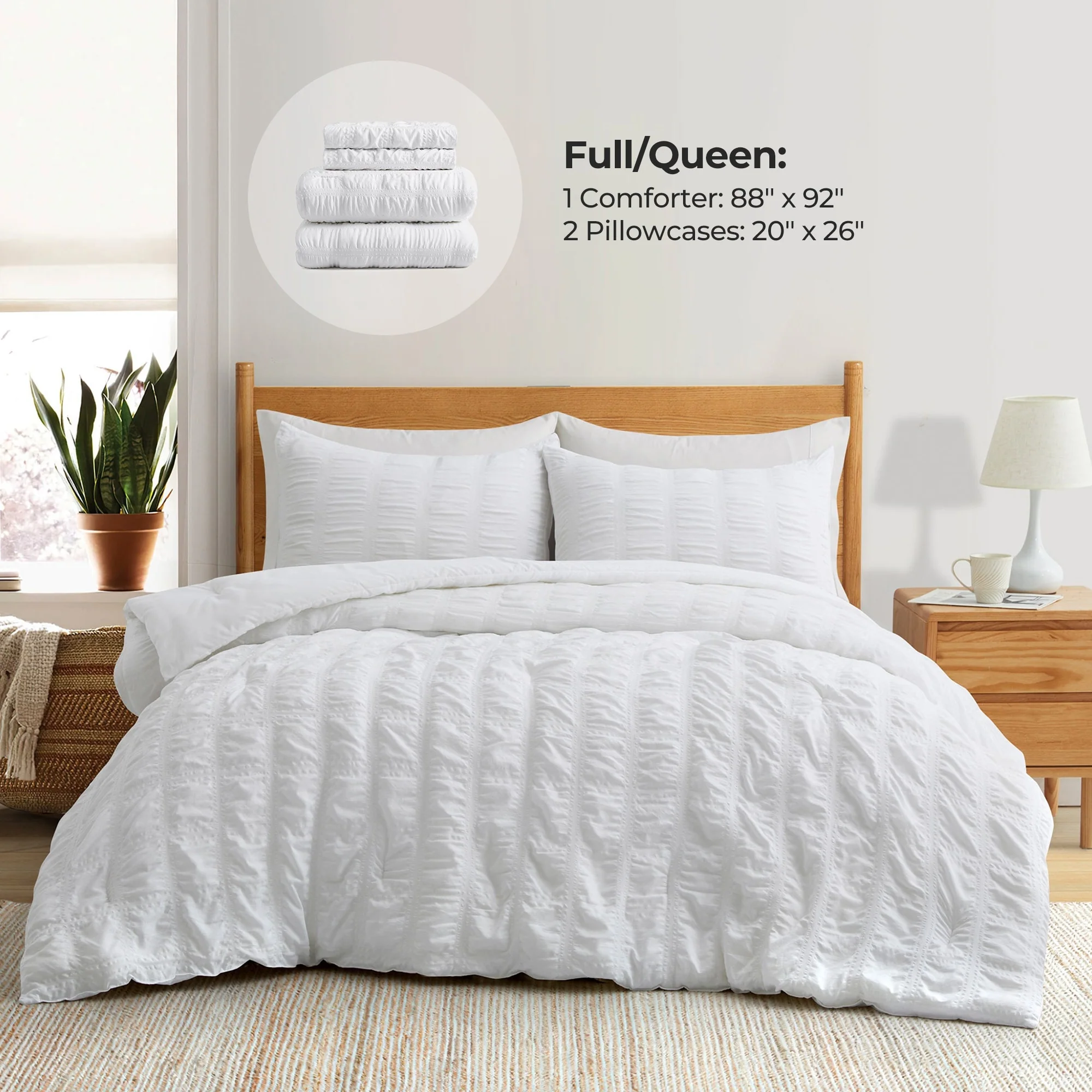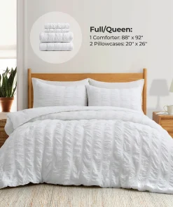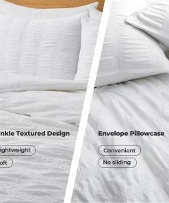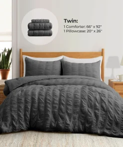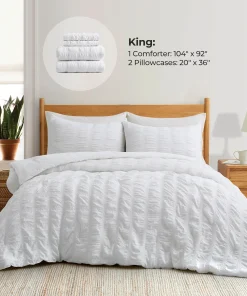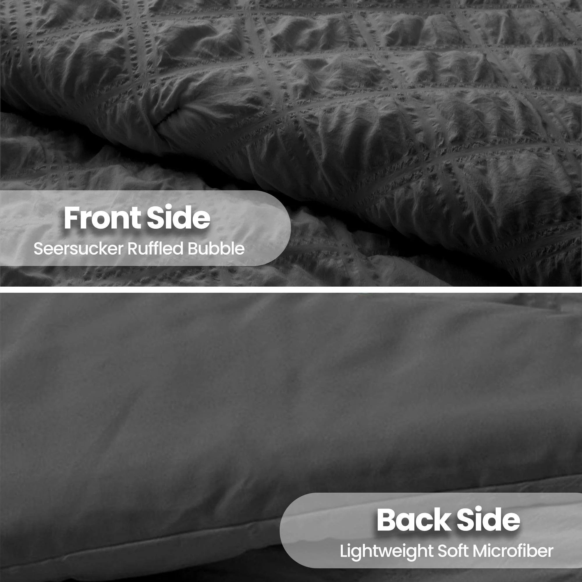 - [Complete Comfort Set with Easy Maintenance] Stylish Seersucker 3PC comforter set contains 1 comforter and 2 pillow cases (Twin size has only one pillow case), machine washable