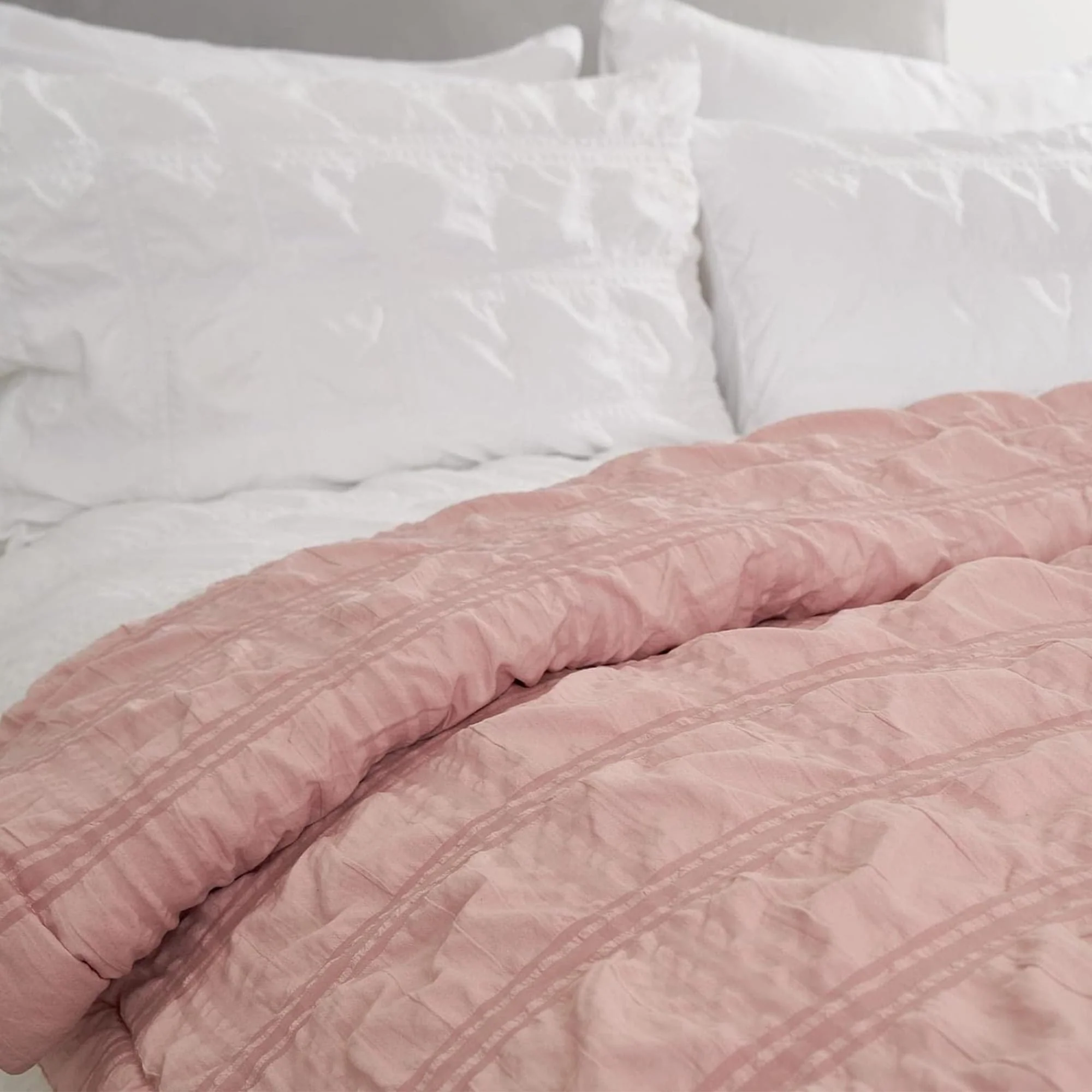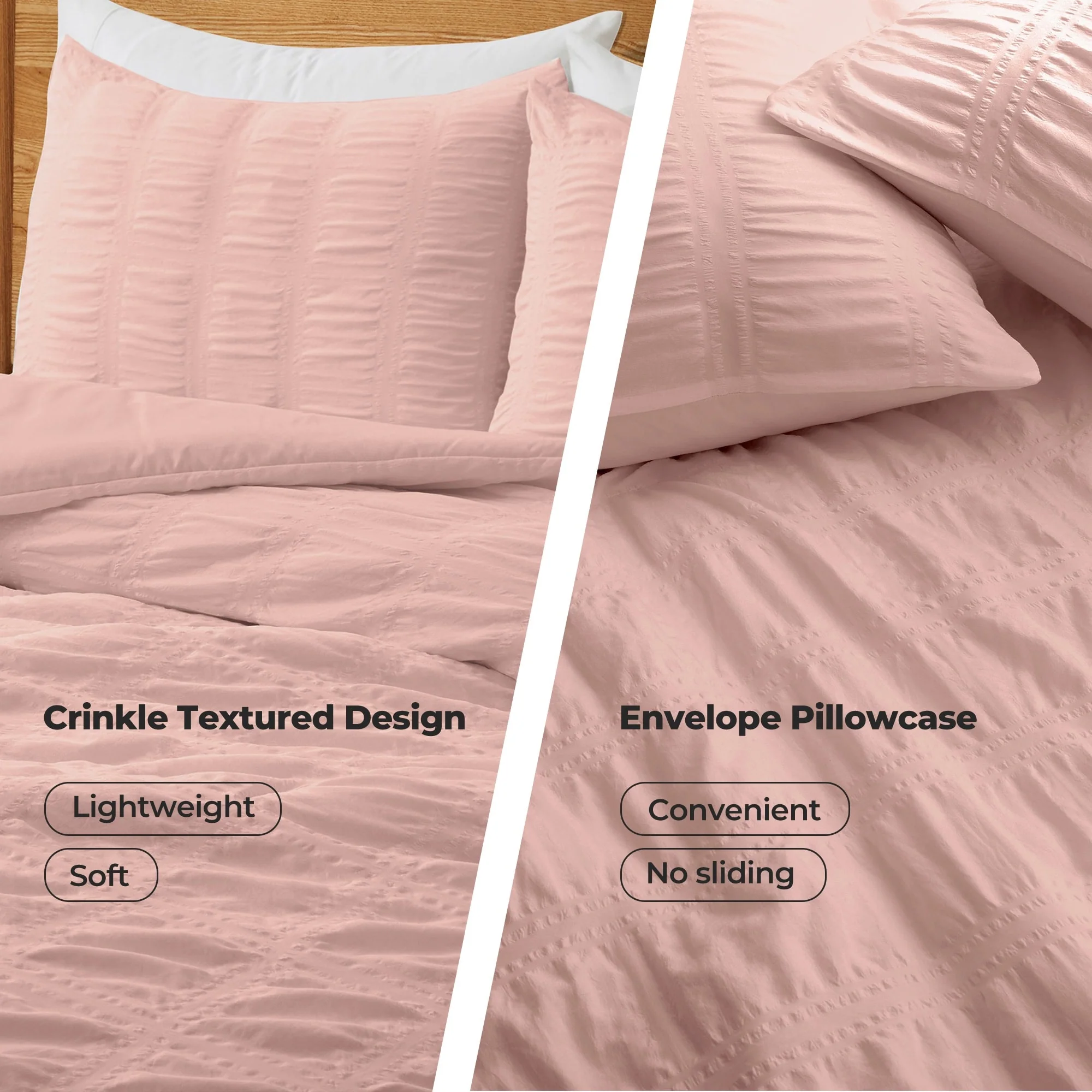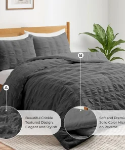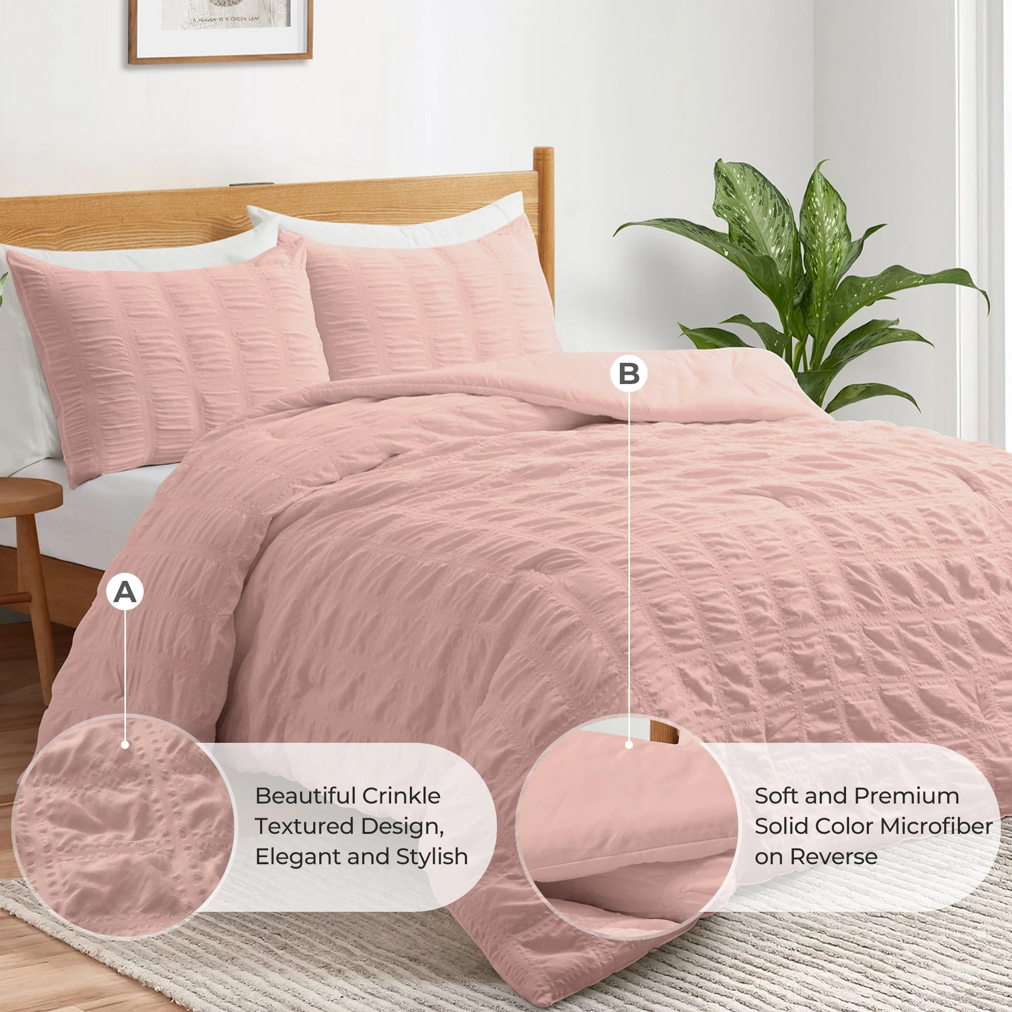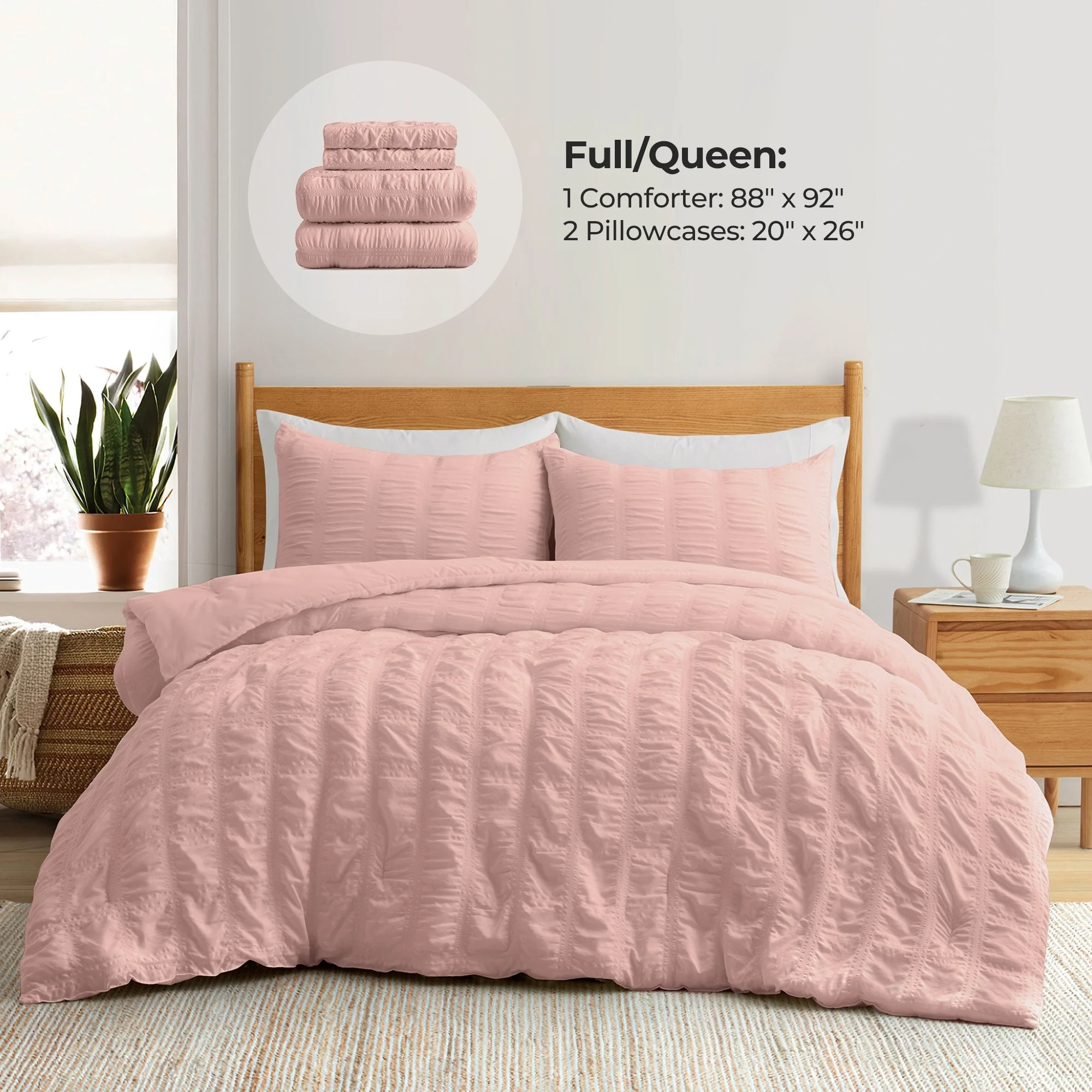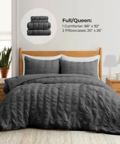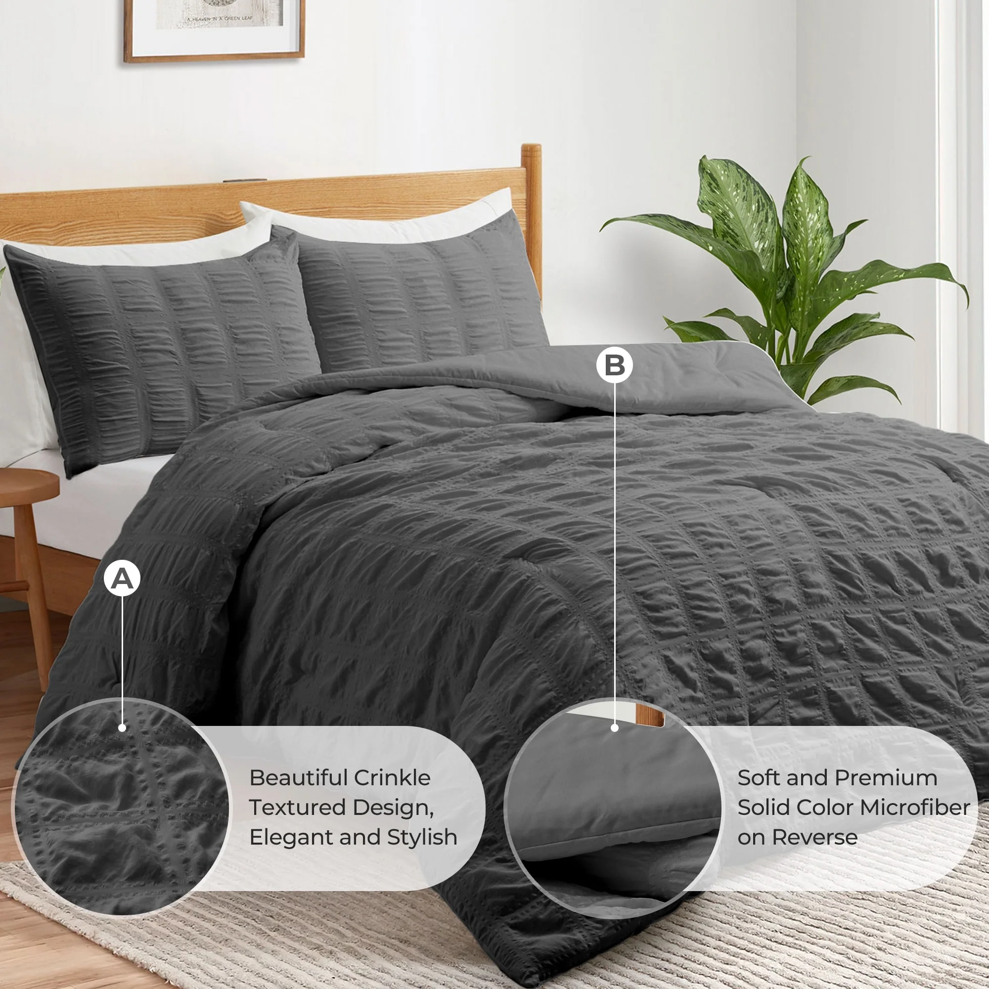 - [Complete Comfort Set with Easy Maintenance] Stylish Seersucker 3PC comforter set contains 1 comforter and 2 pillow cases (Twin size has only one pillow case), machine washable