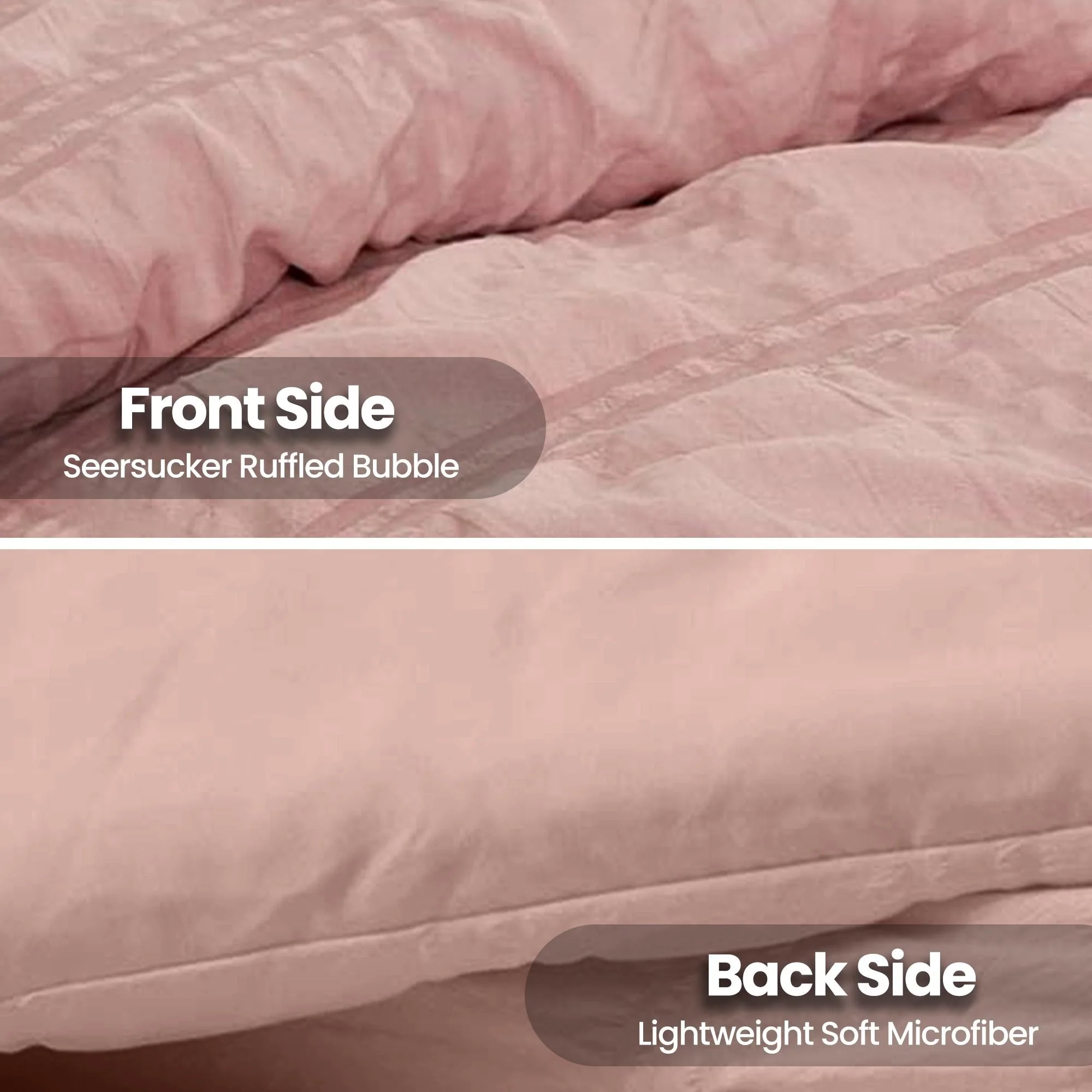 - [Luxurious Texture and Elegant Design] Beautiful unique Pintuck Pinch Pleat and Seersucker Bubble Ruffled chic aesign add luxurious texture and elegance to your bedding ensemble. Lightweight soft and premium solid color microfiber on reverse. Elegant and stylish for your home decor, various colors to choose from and match up with your room.