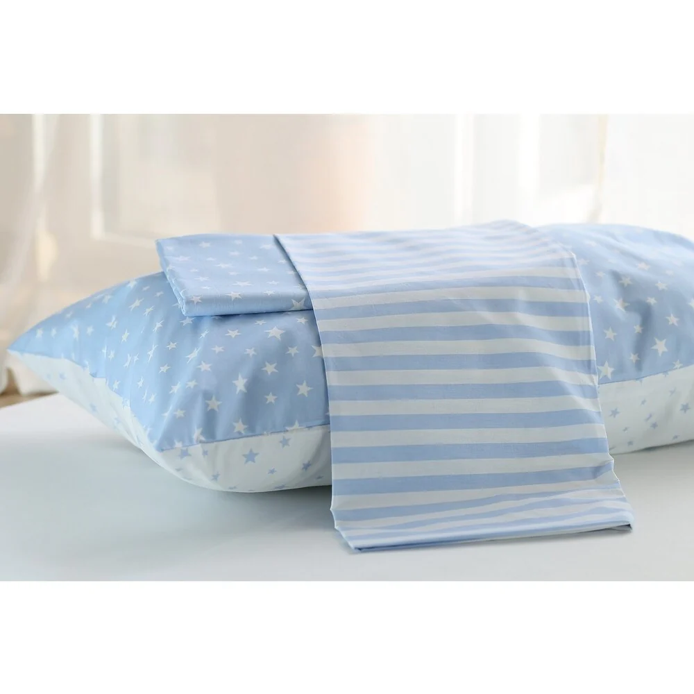 Top Sheet has white stars on colored surface design. Cotton provides body temperature control for human and it’s essential for your toddler’s good sleep. Quilt/Comforter is not included.