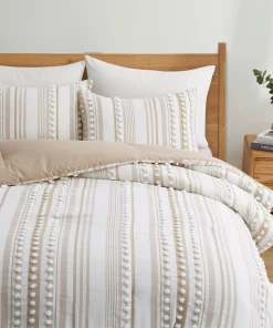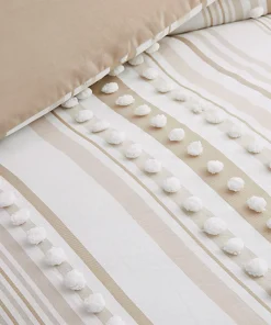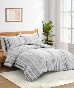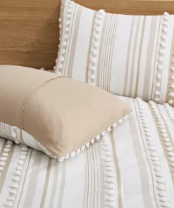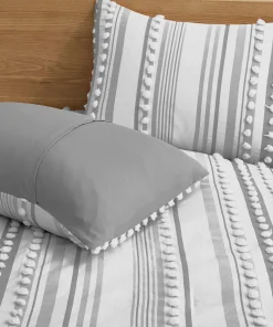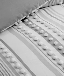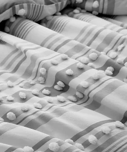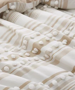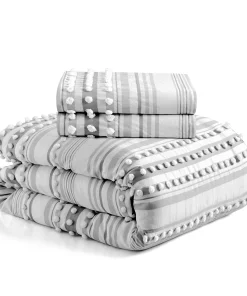 - Stylish Design: Elevate your bedroom decor with our Striped Ball Pom Jacquard Comforter Set.Â