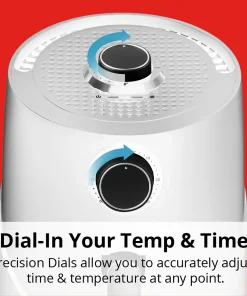 - 3 QT CAPACITY: Featuring two precision dials that allow you to conveniently adjust your cooking time and temperature, the air fryer has a slim 3 quart design so it can easily fit on your countertop