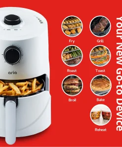 Bake, fry, grill, reheat, roast, and toast your favorite meats, breakfasts, desserts, vegetables, and more faster than ever with the Aria 3 Qt. Premium Ceramic Air Fryer! It reaches 400° in seconds using the most powerful air frying technology to cook faster than a traditional convection or microwave oven without the need for extra oil or grease, reducing the fat in your food by up to 80%! Roast mouth-watering chicken wings, sauté sizzling vegetables, grill tender salmon, or bake rich desserts instantly to enjoy and share anytime in this stylish lux black air fryer. The ceramic dishwasher safe basket and crisping rack are PTFE-free, PFOA-free, and BPA-free for extra safety and durability that is easier to clean. The non-toxic, Teflon-free air fryer construction provides excellent heat conduction for even results and won’t peel, flake, or release harmful fumes! Featuring two precision dials that allow you to conveniently adjust your cooking time and temperature at any point during the cooking process, it also has a slim design so it can easily fit in your cabinets and on your countertop! The extended full-color cookbook has exclusive mouth-watering recipes curated by the champions of ABC’s Family Food Fight so you can get started right away! It also features your favorite recipes including vegan and keto options from TV chef Mario Fabbri! Finally, enjoy all your meals in comfort knowing that Aria products have a lifetime warranty and friendly customer service. Endless culinary adventures await with the Aria 3 Qt. Air Fryer Oven!
